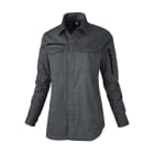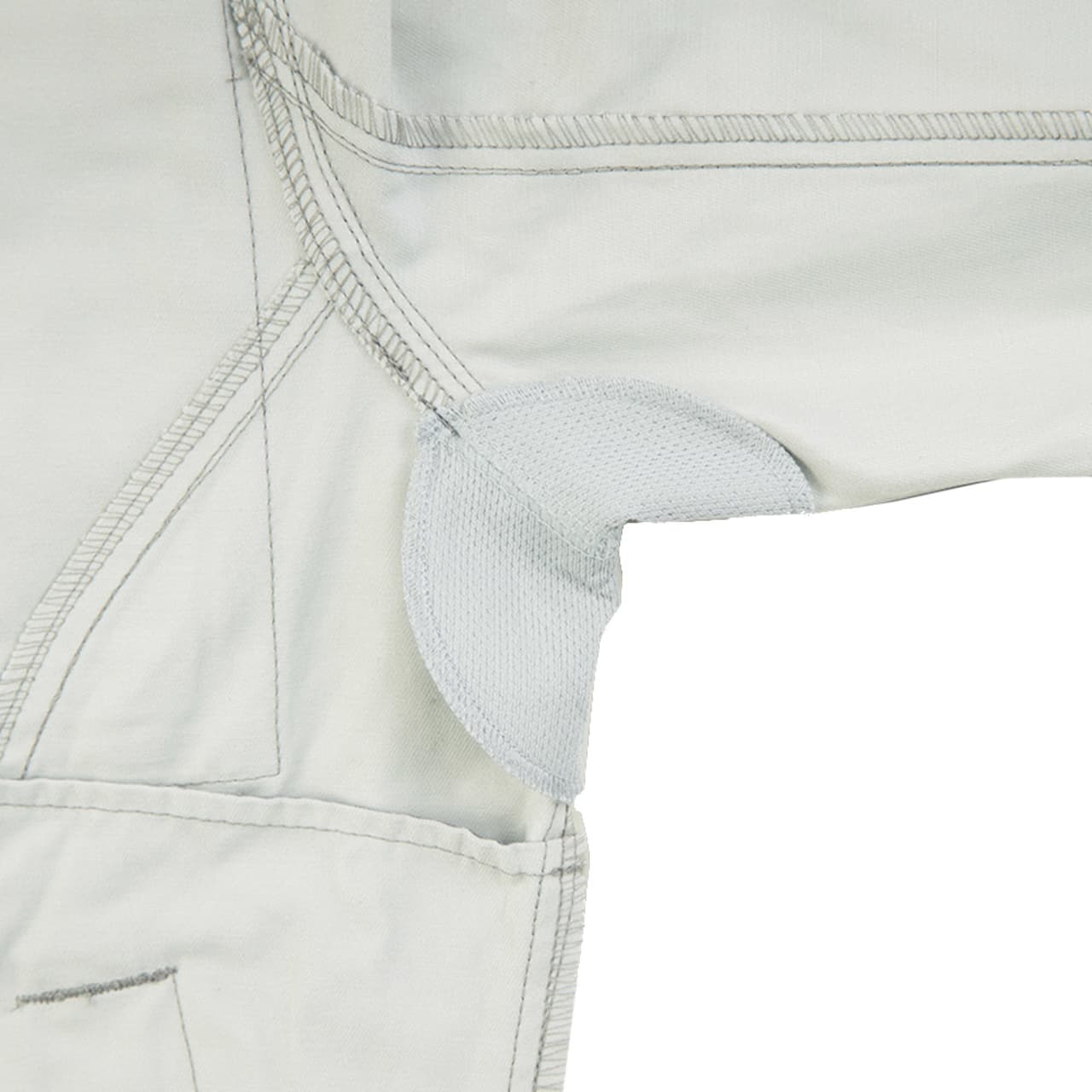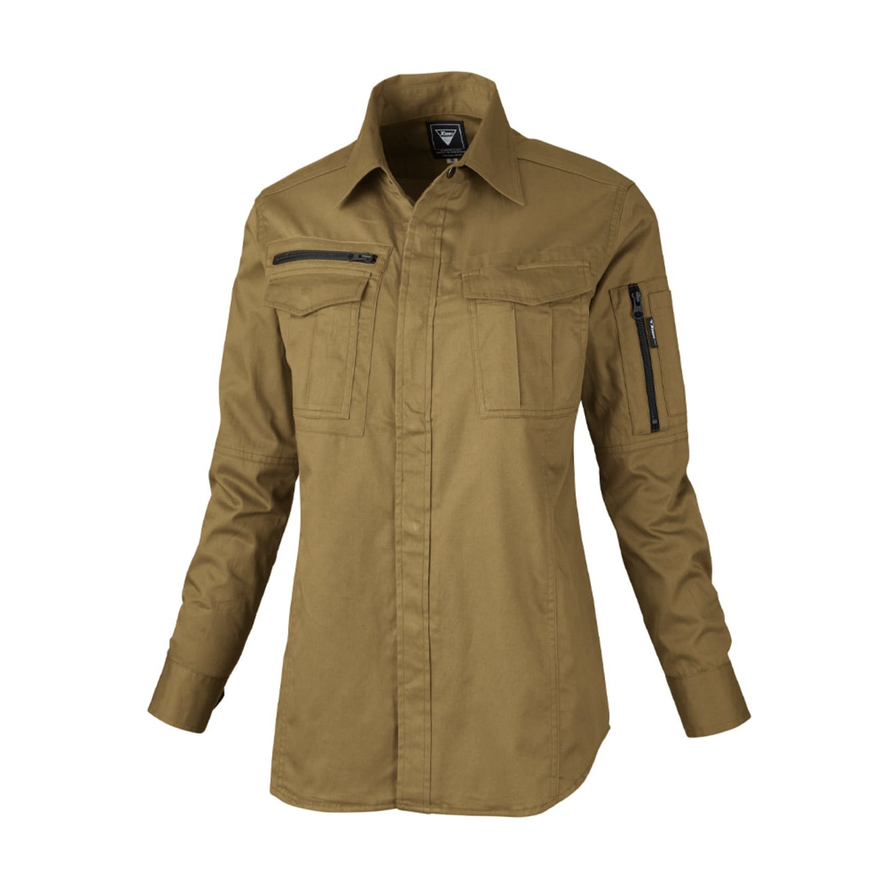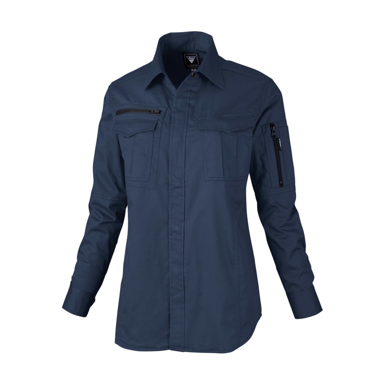 女性を美しく見せるシルエットもさることながら、ポケットまわりのデザインもとってもおしゃれなシャツです。ブラックのファスナーテープや、ポケットのプリーツ、ステッチなど細かなデザインが全体の印象をアップしてくれます。また機能面では脇に吸汗・消臭性能を備えたパッドが配置されているので、汗をかくお仕事も一日中快適に。薄手生地と相まって爽やかな着心地が続きます。毎日着る洋服として、心からおすすめできる優秀シャツです。
