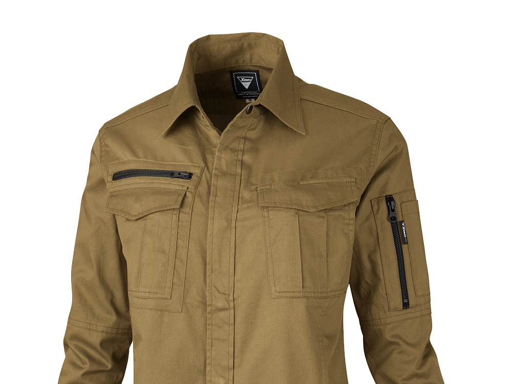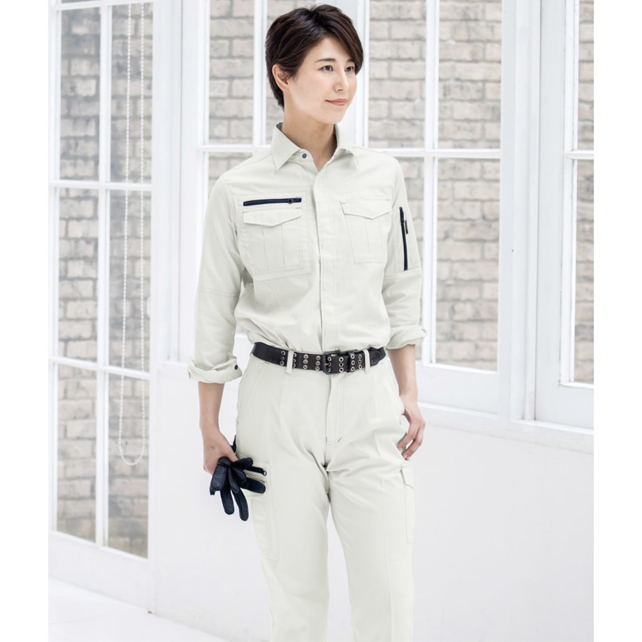 シャツに使用されているサマーツイル生地は綿100%の素材。やわらかく刺激の少ない肌触りで、毎日や長時間の着用もとても快適です。また、体にほどよくフィットする設計でお仕事姿を洗練された印象に。見た目の美しさだけでなく、自分の体に合う服で作業することは効率アップにもつながる大切なポイントです。布が余ることも逆につっぱることもないので、動きやすさも抜群の一着に仕上がっています。さらにサイズが幅広く用意されているので、一人ひとりの体型にぴったりの一着をお選びいただけます。