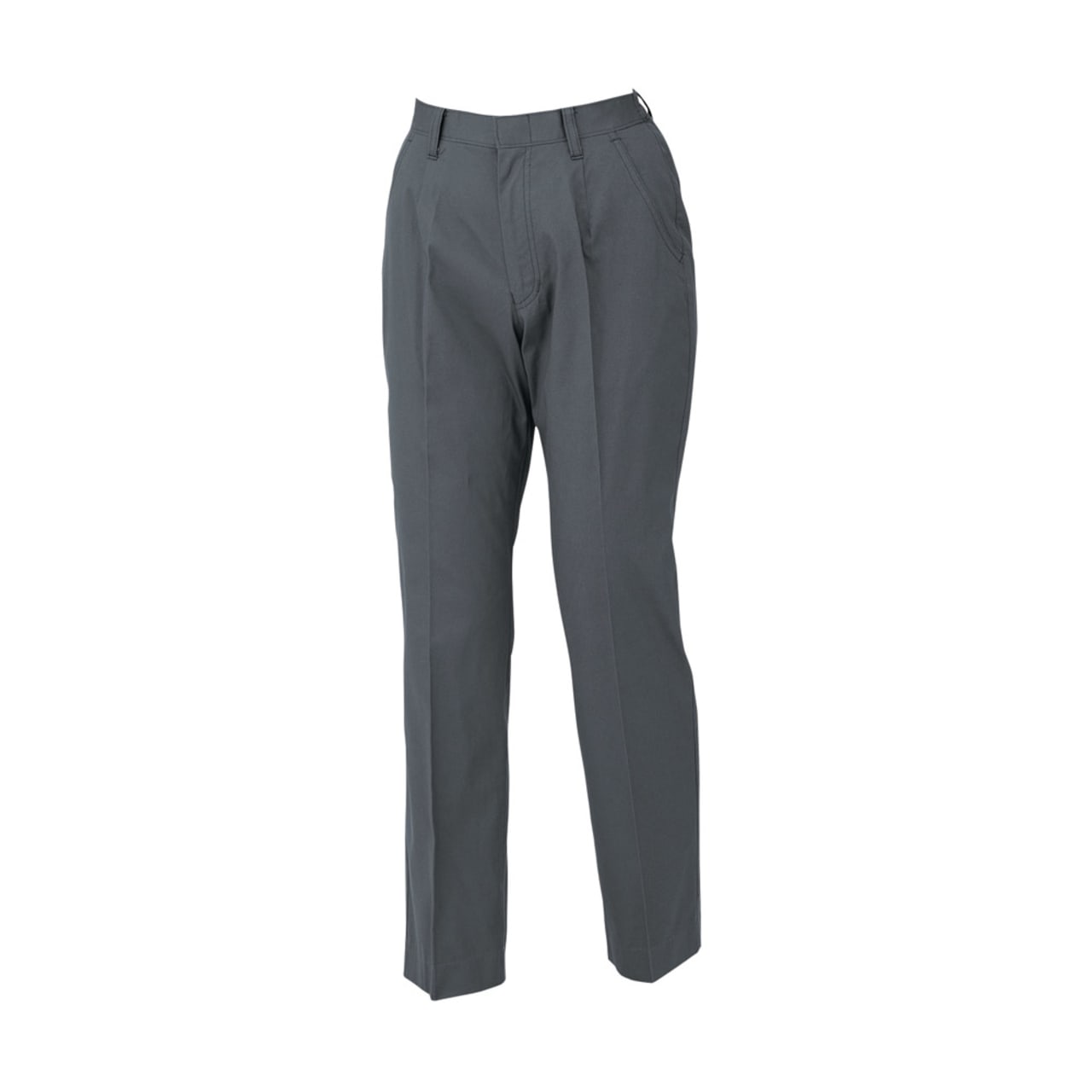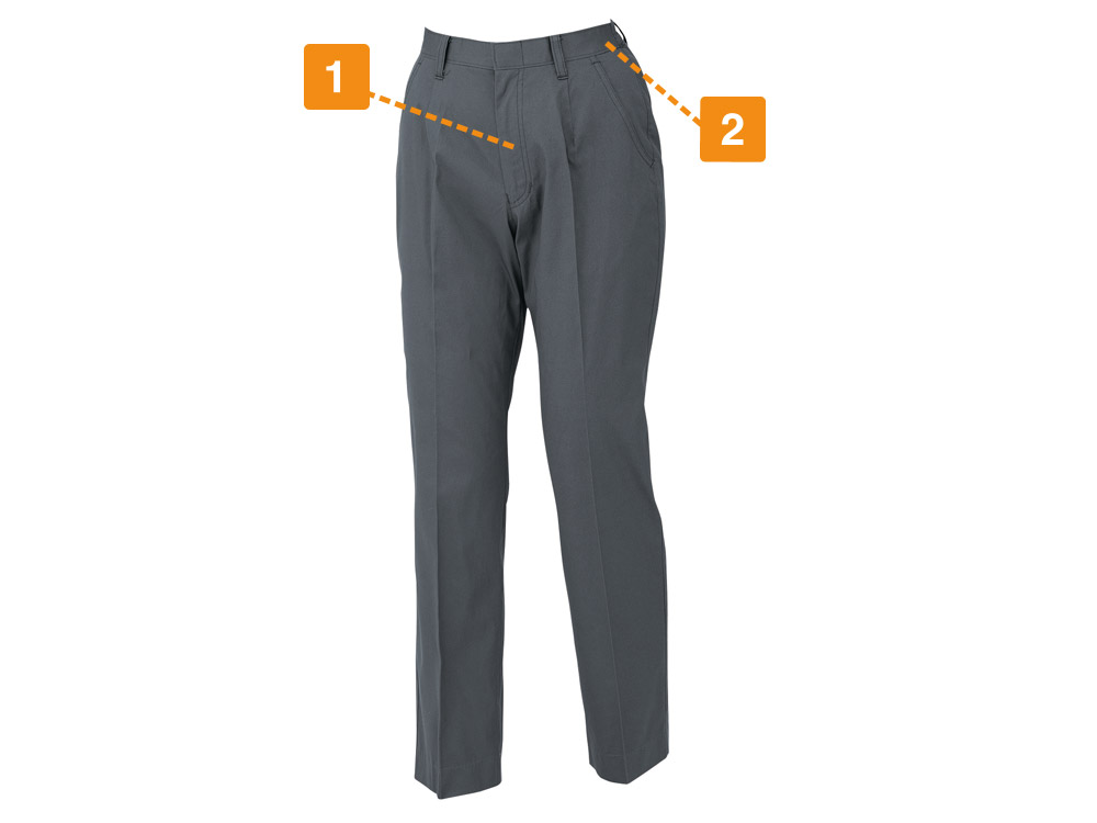 生地のやさしい質感と、かっちりとしたシルエットが魅力的なスラックス。ウエストはやさしくフィットしつつも、太ももまわりに適度なゆとりがあるデザインです。男女兼用品ではどちらかが犠牲になりがちだったウエストまたは太もものフィット感。その両方を叶えることで、動きやすく高い作業性を実現しています。またベーシックなデザインなので、どんなウエアとでも合わせやすいのが特長です。同シリーズのブルゾンやシャツはもちろんのこと、カッターシャツとも相性抜群。お仕事のシーンを選ばず着られるので、デスクワークから現場作業まで、幅広く着ていただけます。
