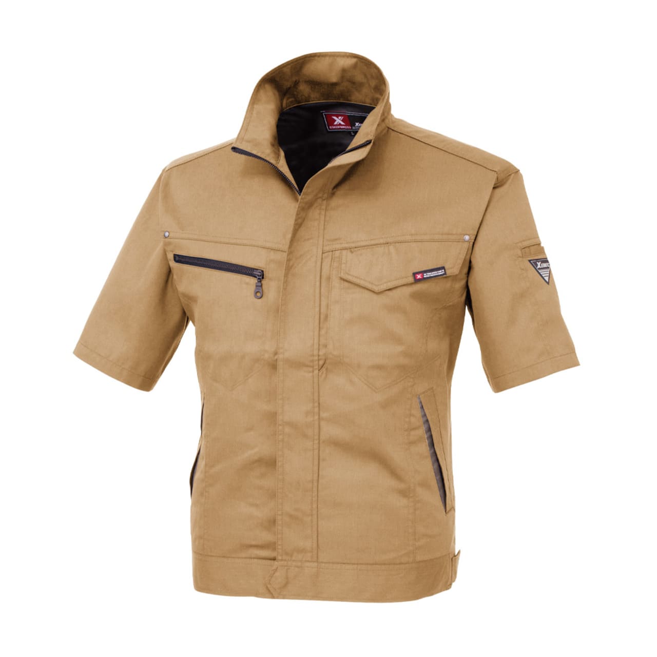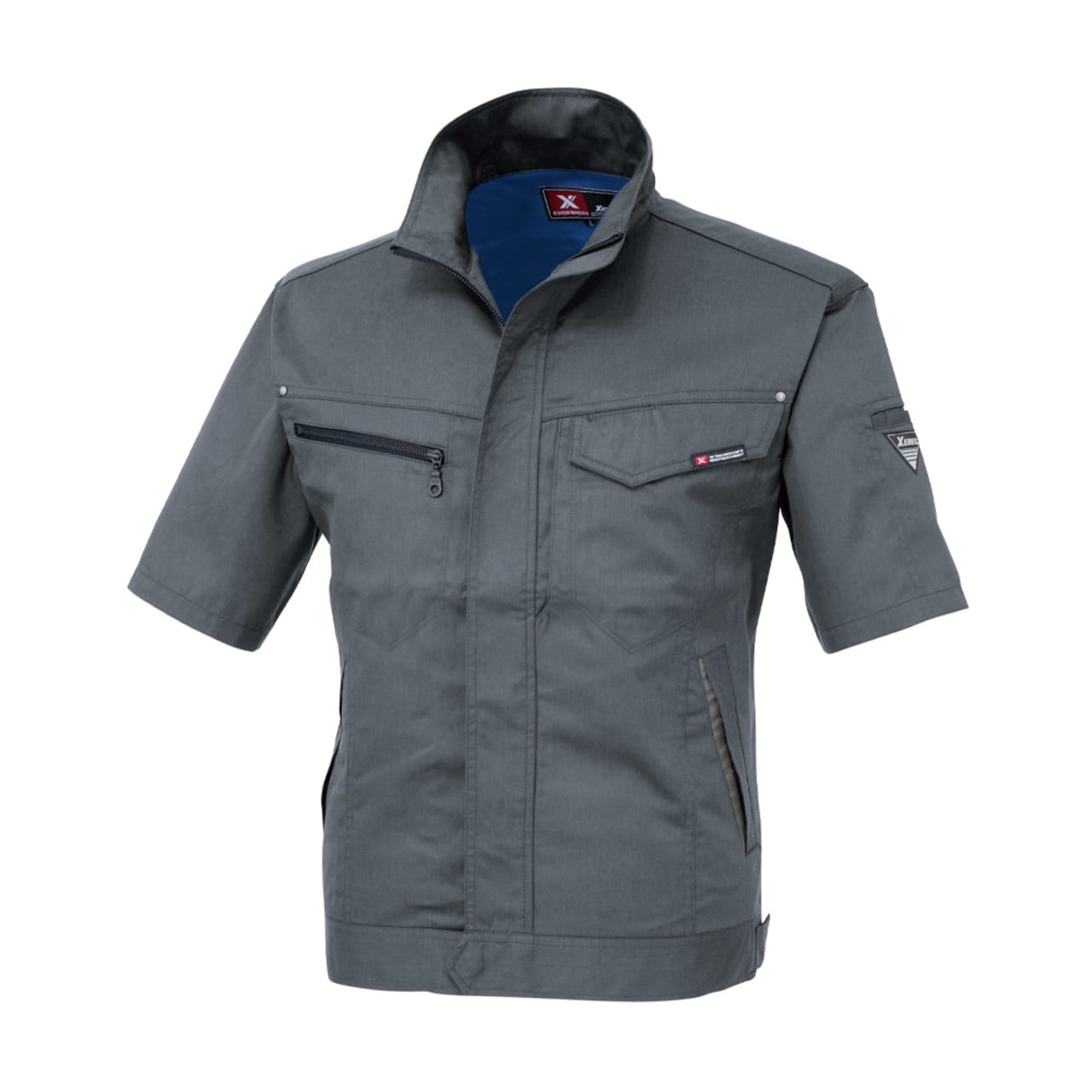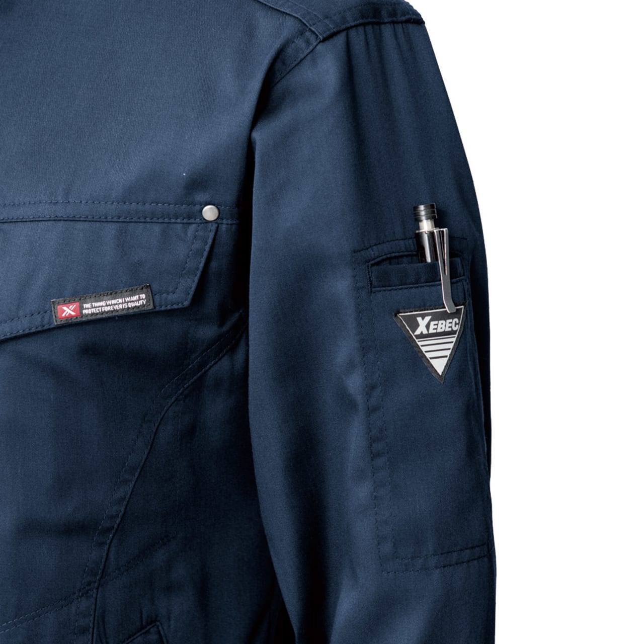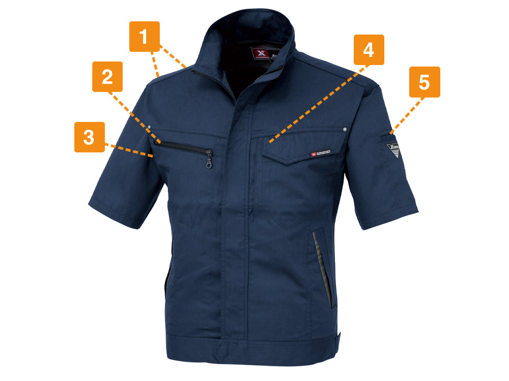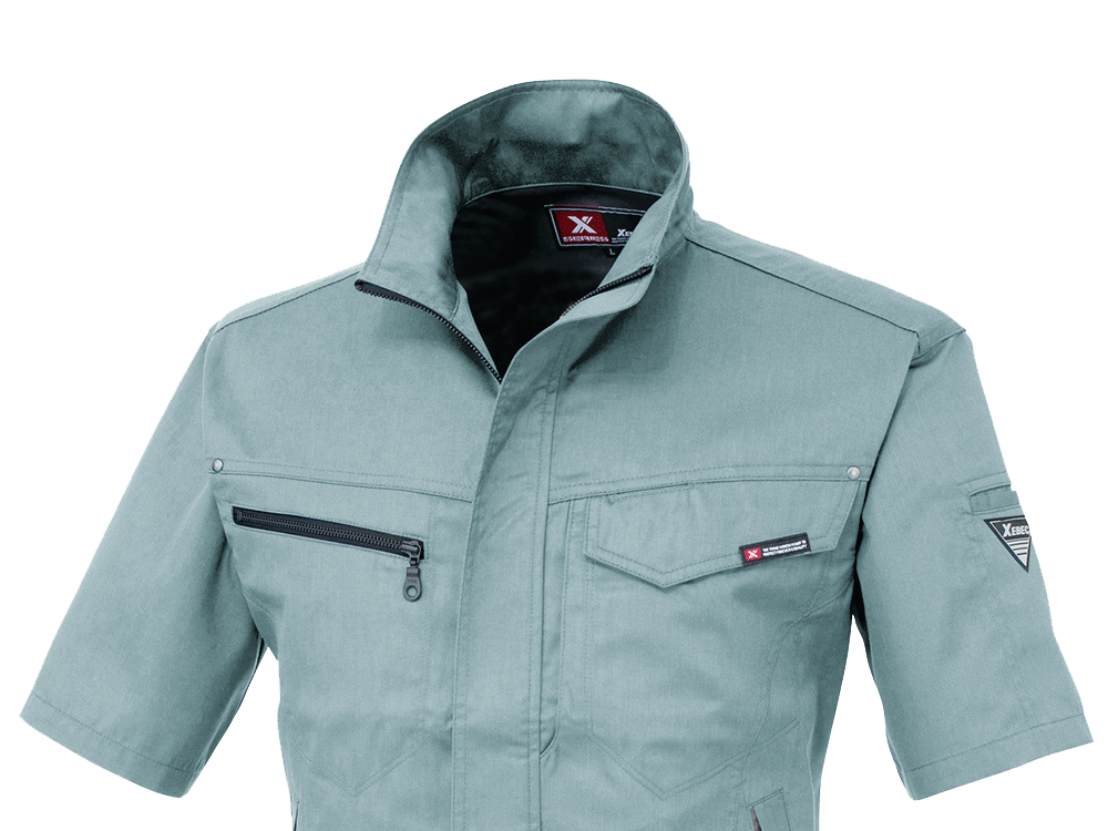 今回、スタッフが実際に着用してみました。薄手の爽やかな生地感が夏にぴったり。生地に含まれる綿のおかげで、肌触りがやさしく気持ちいいです。また、あちこちに散りばめられたアクセントが、全体をきりりと引き締めてよりかっこいい見た目に。ポケットや本体まわりのステッチに、リベット、ファスナーテープなど、単調な作業着としない工夫があふれています。豊富な本体カラーもどれもかっこよく、色によって印象が異なるので、お望みのイメージにぴったりの一着をお選びください。