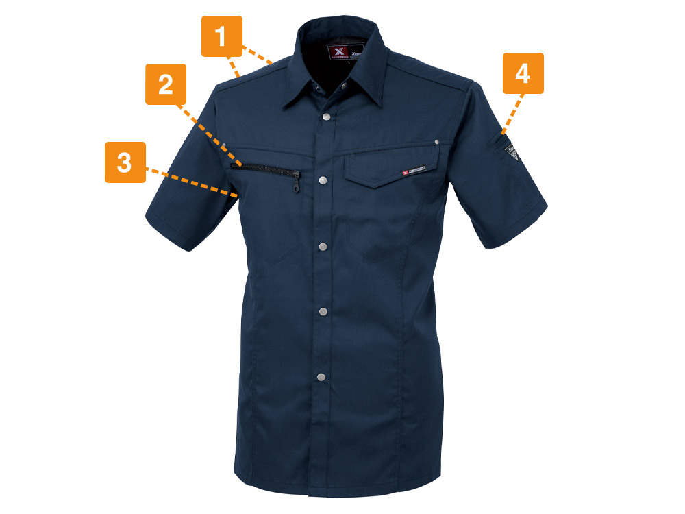 薄手の夏らしい生地感に、お仕事を支えるデザインが光る半袖シャツ。動きやすさの面では、背中にNEWプリーツロンが採用されています。5cmもの伸縮幅を持ち、上半身の動きやすさをアシスト。さらにプリーツにはメッシュ素材が使用されているので、通気性も抜群です。汗をかいても熱がこもらず、快適な着用感が続きます。さらに脇下には立体的なカッティングを施すことで、腕の上げ下げがスムーズに。毎日のお仕事をアクティブに行える工夫が随所に込められています。
