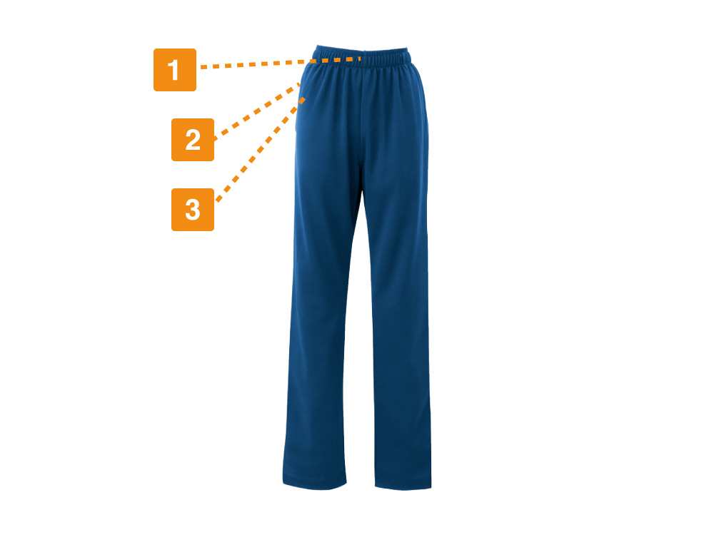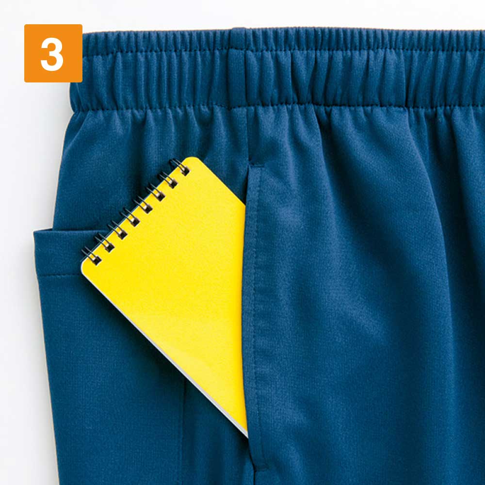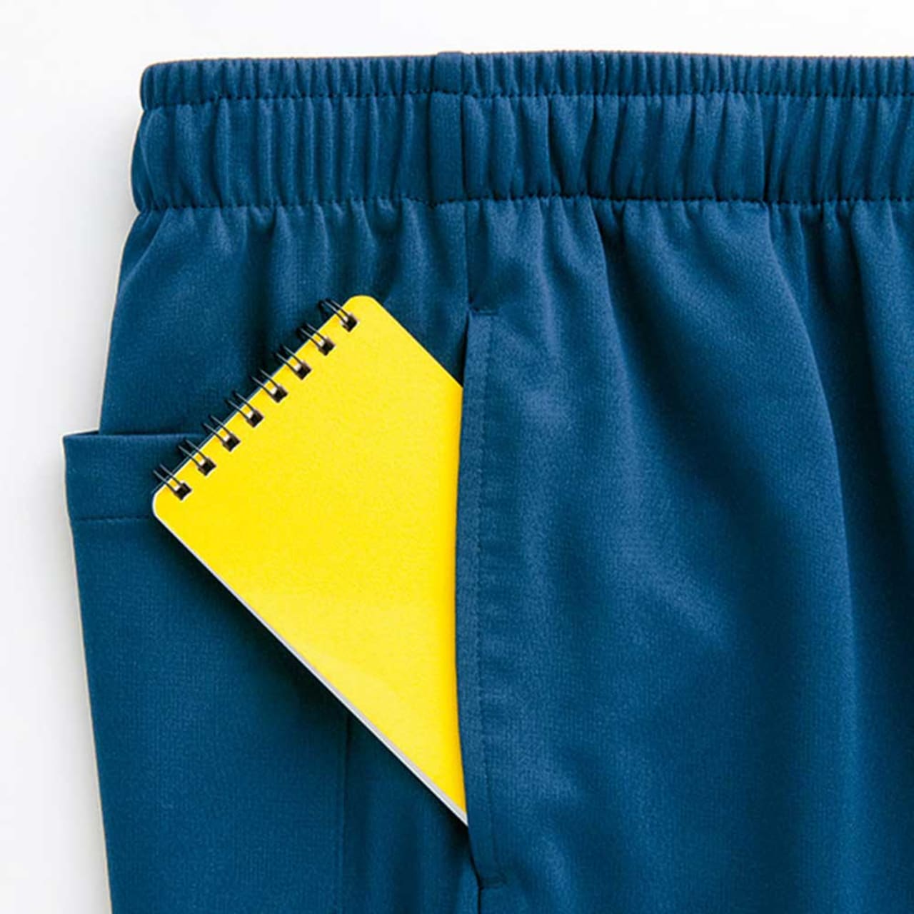 ポリエステル100%素材のため吸汗速乾性があり、ストレッチもきいているので、医療系のお仕事の方から人気のスクラブパンツです。 またウエストは動きやすく圧迫感がないゴム仕様、調節ひも付きのため微調整も可能、ずり落ちる心配もありません。