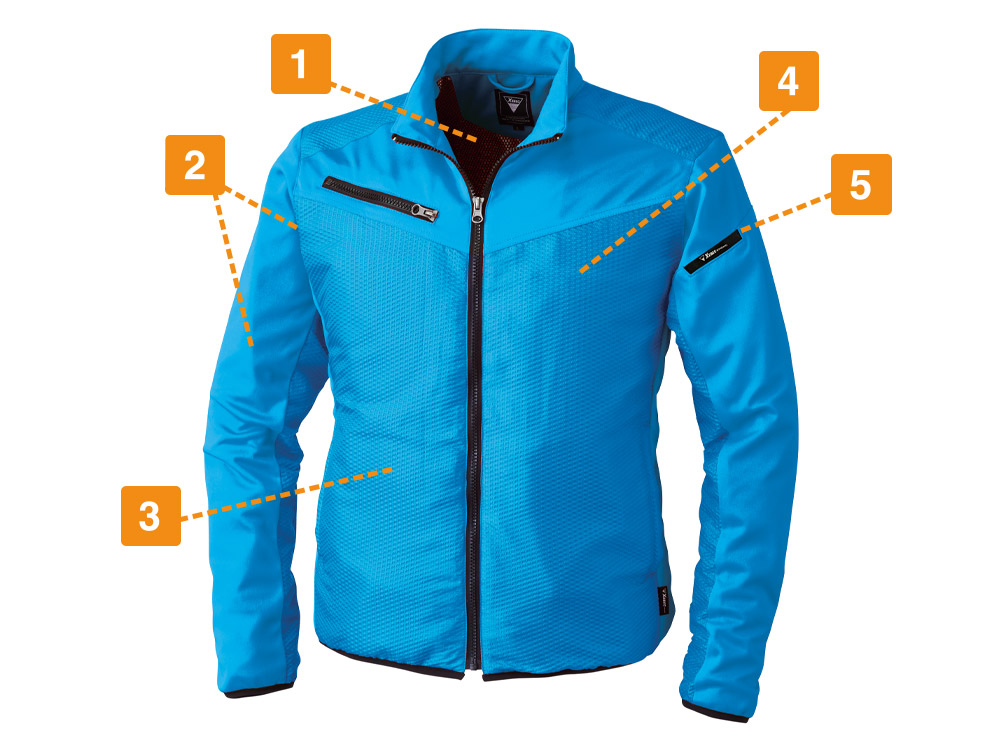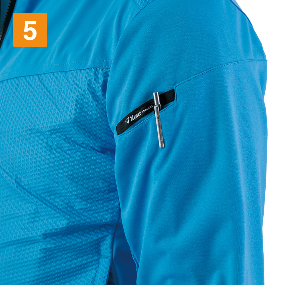 防風・防寒性のあるウェアには珍しく、ストレッチ性能を備えたブルゾンです。暖かさと動きやすさを両立し、寒い時期のアクティブな作業を支えます。軽量なのでずっしりせず、肩の凝りやすい冬場もストレスを感じない軽やかな着用感が魅力です。気温の変化に合わせてサッと気軽に羽織れるので、さまざまなシーンで着用できます。また、コンパクトながら収納力にも優れており、胸・脇ポケットに加えて内ポケットや袖のペン差しも完備。現場作業でも抜群の作業性を叶えます。