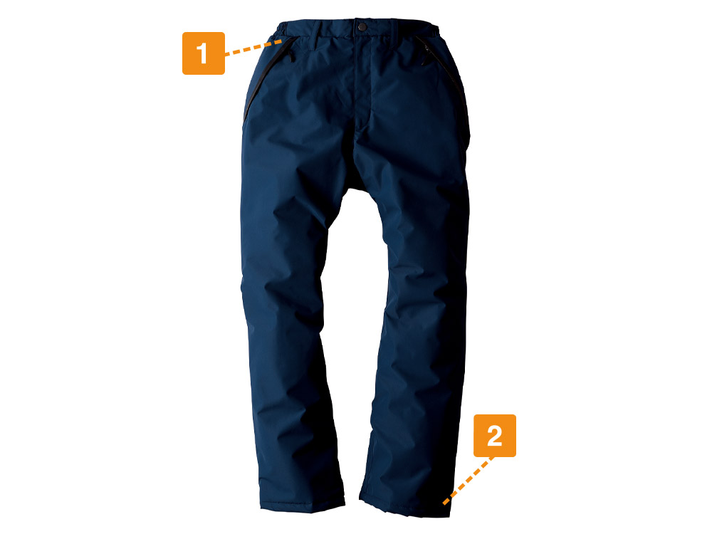 冬場、屋外での作業にこそ履いていただきたいパンツです。生地は耐水圧10000mm・透湿性5000gの高い防水性能を誇り、雨などによる水の侵入をカットしながら、汗による湿気を常時外に排出。汗によって脚が冷えることを防ぎ、一日中快適な着用感が続きます。また裾には面ファスナーによるアジャスター機能が施されており、フィット感を調整可能。ブーツインなどもスムーズに行えるので便利です。中綿付きで脚はいつも暖かく、寒い環境から体を守る一着です。