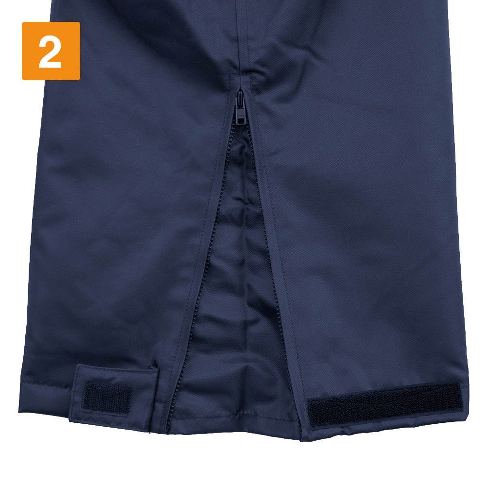 今回はスタッフが実際に着用してみました。暖かく快適な着用感で、ずっと履いていたい心地よさを備えたパンツです。さらに、生地以外にも細かな工夫がより寒さ・水への抵抗力を高めています。ポケットは開口部の全てにフラップまたはファスナーを使用。中に入れた物を水からしっかりガードします。ふくらはぎから裾にかけては、ファスナーでお好みの開き具合に調整可能です。さらに裾には面ファスナーが配置されており、裾の絞りを変えることで冷気の侵入を抑えることもできます。