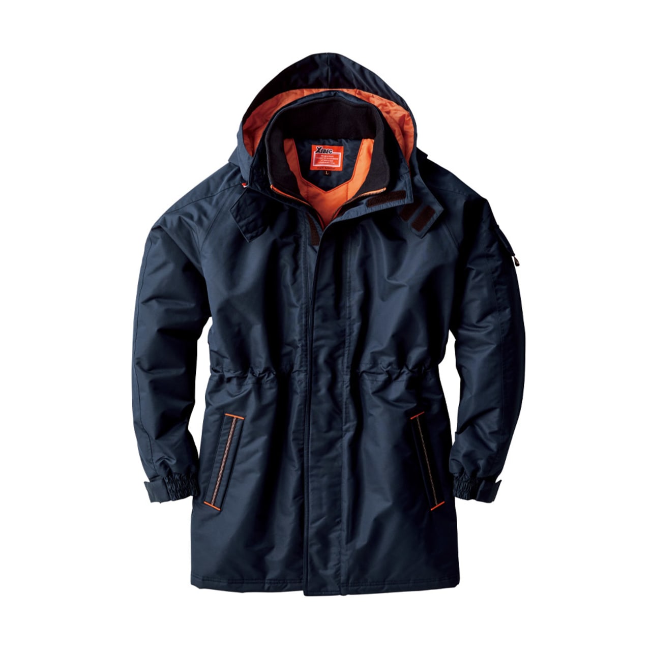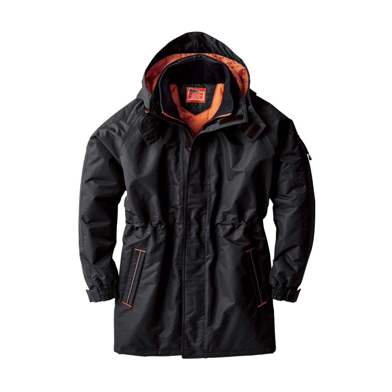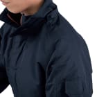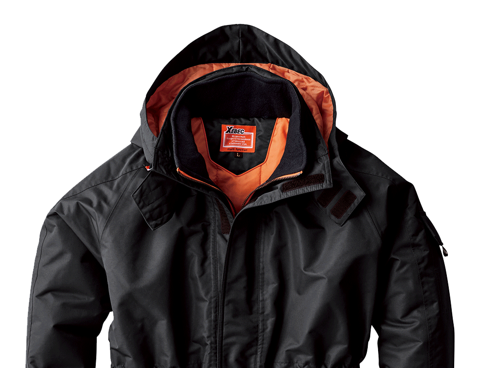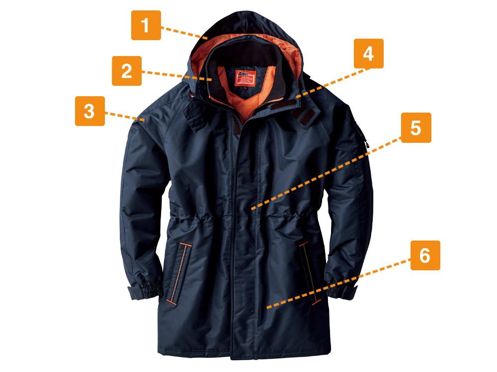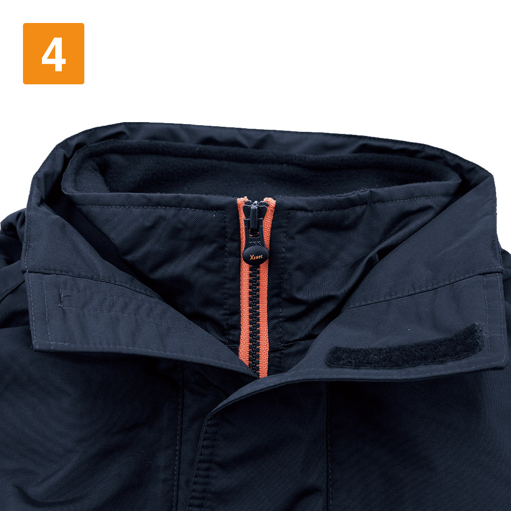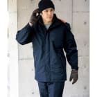 コート表面に使用されているタッサー生地。耐水圧5000mm・透湿性2000gの防水性能と丈夫さを備えたタフな素材を使用しています。加えて、防風性と撥水加工によりどんな環境でも快適な着用感を実現した人気の一着です。さらに襟はダブルフロント仕様になっており雨風を防ぎます。襟にはフリース素材が使用されており、肌触りをやさしくするとともに、ぬくもり感をプラス。生地内部には中綿が配置されているので、保温効果も抜群です。過酷な環境下での着用にフォーカスし設計された一着です。
