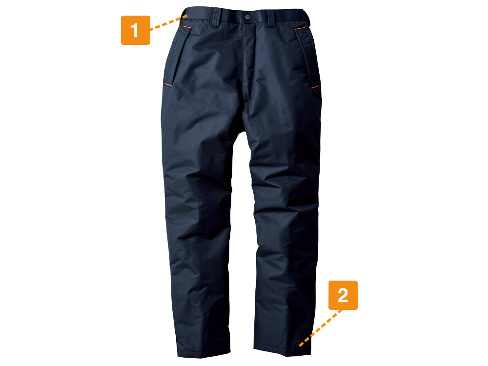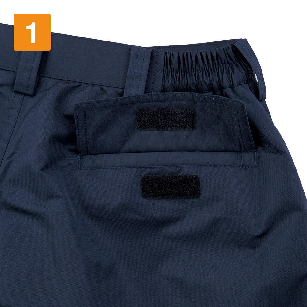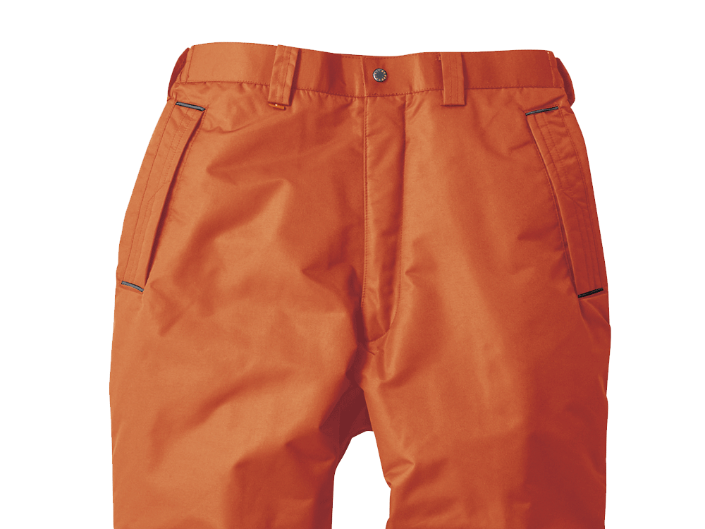 パンツに使用されているのはポリエステル100%のタッサー生地。耐水圧5000mm・透湿性2000gの防水性能に丈夫さ、防風性を備えた超高機能素材です。加えて、撥水加工によりさらに防水性能が高められています。収納面では背面のポケット開口部がフラップ付き、脇ポケットが逆玉仕様の開口部になっており、中の物を水濡れから保護します。また全面に中綿が配置されているので、保温効果も抜群です。過酷な環境下でこそ履いていただきたい、優秀パンツに仕上がっています。