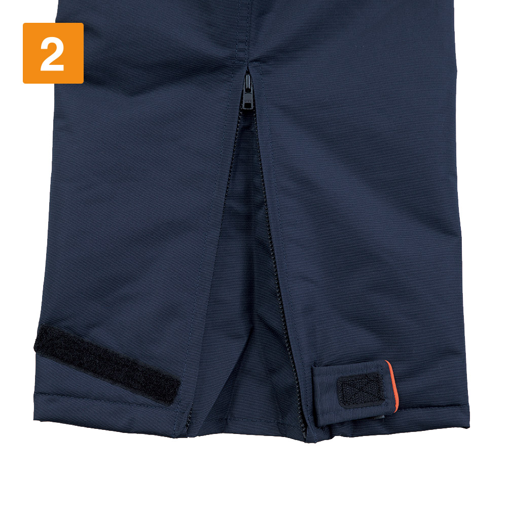 防寒・防水性能の高さをアシストする設計が、より快適な着心地と見た目を作ります。パンツの裾には開き具合を調整するための面ファスナーが配置され、お好みに合わせて裾からの冷気の侵入を抑えることができます。ブーツインもしやすく、雪の中でも便利に履けるディテールです。カラーは洗練された印象のオレンジ・クロ・コンがラインナップ。ポケット端部に効いた別カラーでのステッチが、スタイリッシュに見せてくれるとスタッフ内でも好評でした。