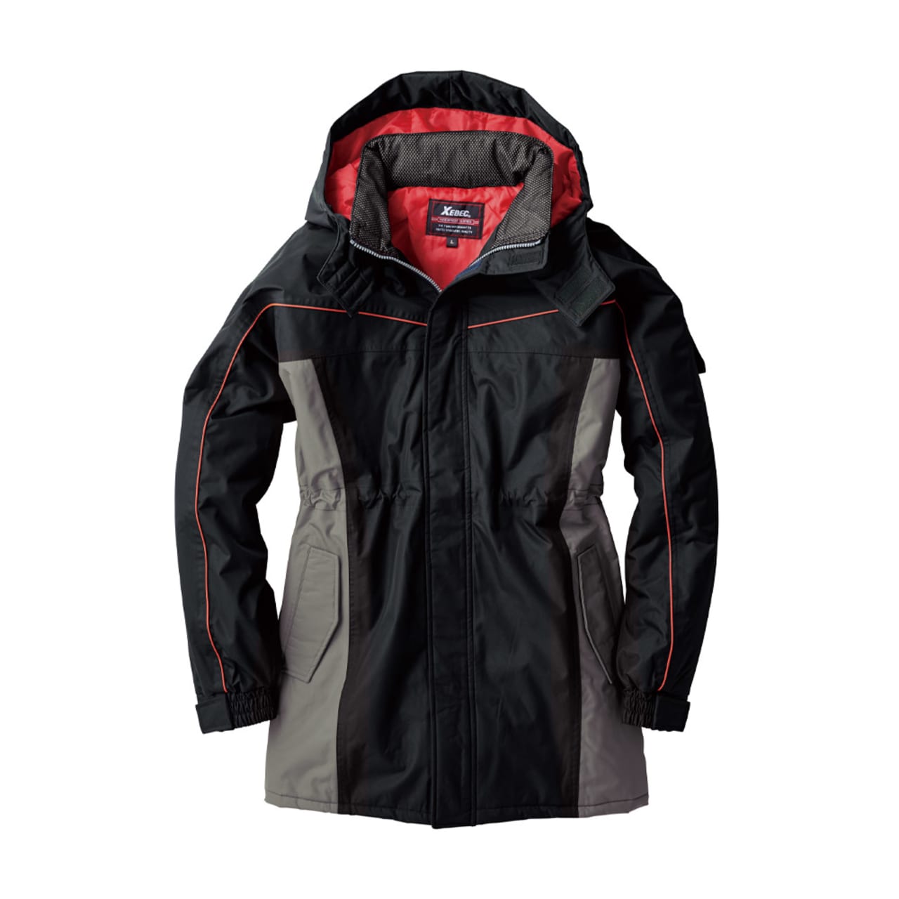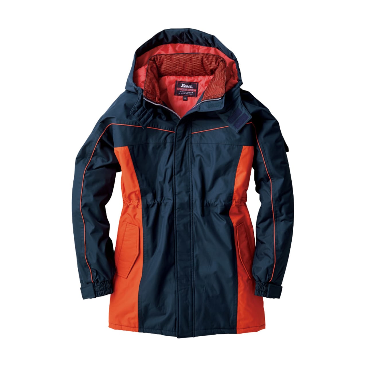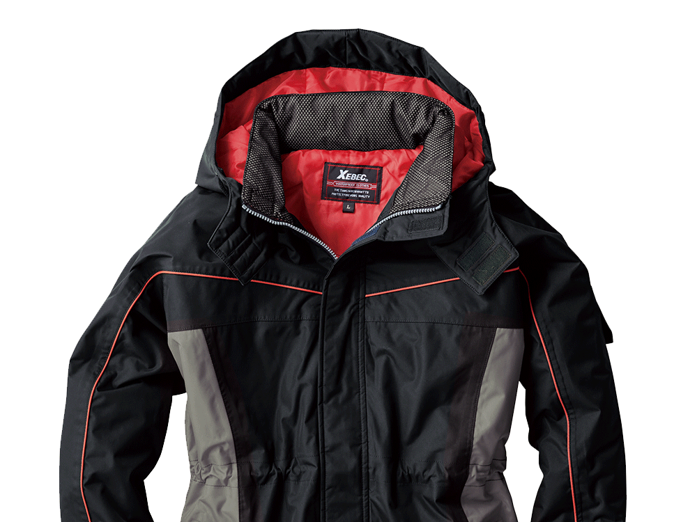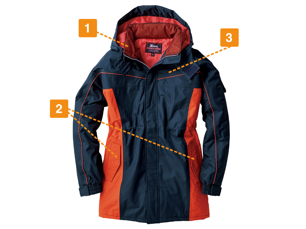 高機能ポリエステルタフタ生地を使用した、冬の作業をアシストしてくれるコートです。生地の持つ防水性能として、8000mmの高い耐水圧を有し、強い雨にもしっかり防ぐ強さを備えています。さらに、レインウェアにも採用される生地のPVCコーティングが耐水性をプラス。ビニール素材でコーティングするので、防風性も備えた一着に仕上がっています。また両脇のポケットは開口部が逆玉仕様になっており、中の物が濡れないのも安心です。