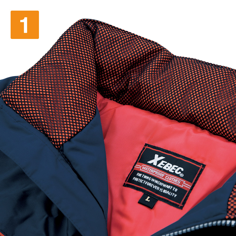 ふかふかの中綿による暖かな着心地で、スタッフおすすめの一着です。外部環境から着る方を守るだけでなく、着る方の体温をしっかり保持してくれるので、寒い中でも一日を通して快適に作業を行うことができます。また袖および裾にシャーリングが施されているので、隙間から冷気が入ったり、暖気が逃げたりということもありません。さらに着心地アップの工夫として、襟の肌に触れる部分にはメッシュ素材を使用。汗で蒸れやすい首まわりもさらりと快適です。