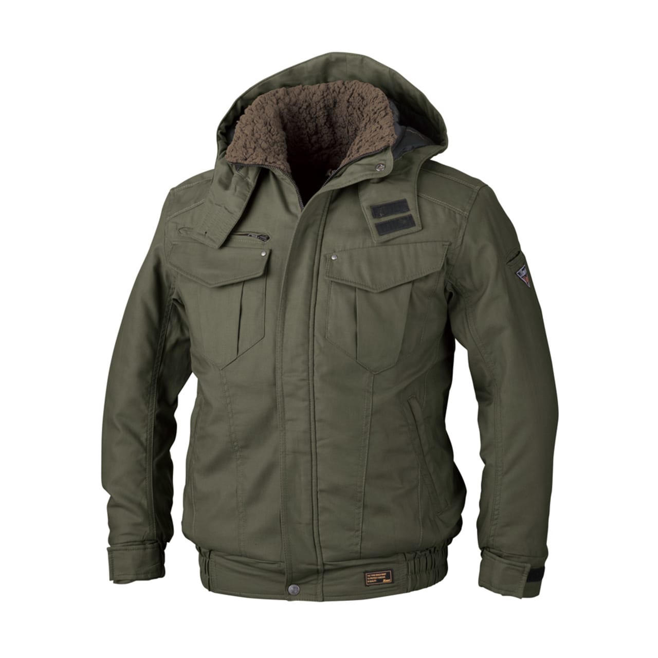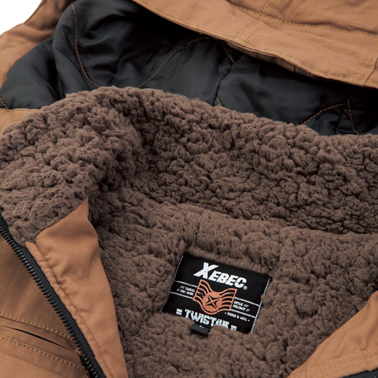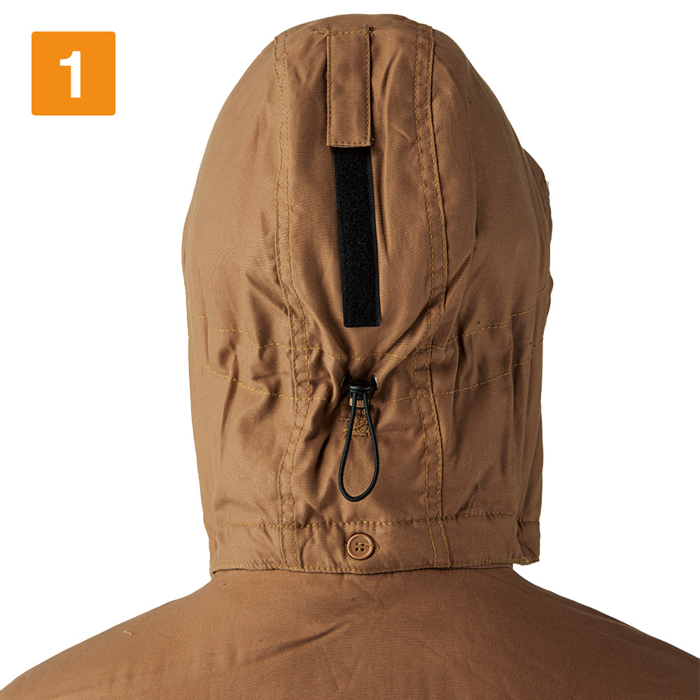 使用されているバックツイル生地は、火や熱に強い綿100%の素材。火気に近い環境でも安全に着用いただけるブルゾンに仕上がっています。さらにファスナーポケットの開口部を玉縁やフラップがカバーするデザインを採用。ポケット内部に火花が入らないので、火花が散る場所でもポケットに入れた物を傷める心配がありません。また生地内部には中綿が全面に配置されており、寒い場所でも暖かな着心地を実現。襟内側にはボアがあしらわれているので、首まわりをあたたかくカバーしてくれます。