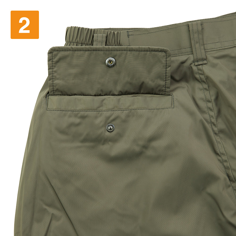 シンプルでスタイリッシュなデザインがスタッフ内で人気のパンツです。同シリーズのウェアはもちろん、いまお持ちのコートやブルゾンともなじむので、抜群の着回し力を発揮します。脇ポケットまわりには、オレンジラインのパイピングが施されており、さりげないアクセントに。カラーはオレンジのアクセントと相性抜群の、アーミーグリーンとクロの2色展開。また裾には面ファスナーのアジャスターが配置されており、裾のつまり感を調整可能です。ブーツインや長靴などとも合わせやすく、多様なシューズと組み合わせ自在です。