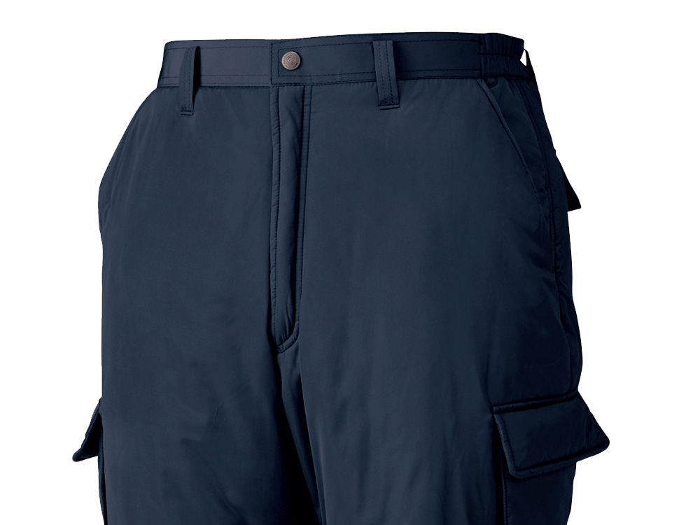 今回スタッフが実際に着用してみました。履いて動いているうちに段々とズボン内部が暖まり、ぽかぽかしたとても心地いい着心地に。秘密は使用されている中綿にあります。一般的なキルティング加工の中綿と比較してかさ高い綿を使用し、グンと高い保温性を実現。重たくなりすぎず段違いの暖かさを体感できます。またウエストにシャーリングが施されているので、しゃがんだりしても体とズボンに隙間ができないのがポイント。冷気の流入を防ぎ、暖かい空気を逃しません。