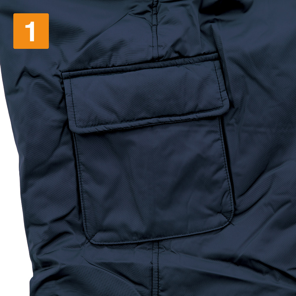 極寒の作業でもタフに着こなせる一本。高密度ポリエステルタフタ生地の持つ数々の機能が、着る方を冬の過酷な環境から守ります。撥水加工が施されているので、突然の荒天にも対応し、不快な水の侵入を防ぎます。高密度に織りあげられた堅牢な生地で、防風性を備えているため冬の冷たい風もしっかりシャットアウトしてくれます。生地内部には肉厚の中綿が全面に配置され体温を逃さず蓄えるので、寒さによる機動力の低下を防いでくれます。