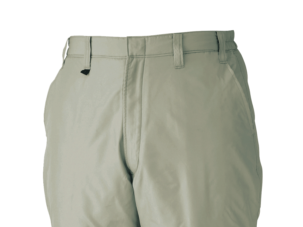 外から見た感じはシンプルな作業用パンツという印象で、使い勝手も良さそうとスタッフの中でも好評でした。つるりとした光沢感が冬用ウェアらしく、見た目にも水に強そうで安心感があります。今回は実際に着用して、しばらく軽作業を行なってみました。中綿が全面に施されているので、体温でたちまちズボン内はぽかぽかに。また中綿でも特に軽量の素材が使用されているので、足さばきがとても軽快です。ずっと履いていてもストレスを感じにくく、年齢を問わずおすすめできるパンツになっています。