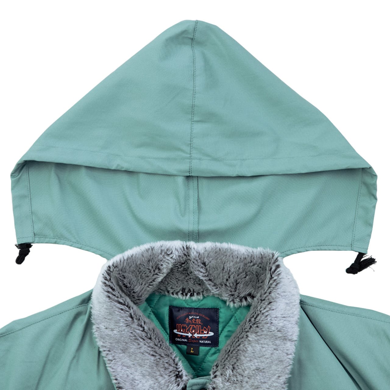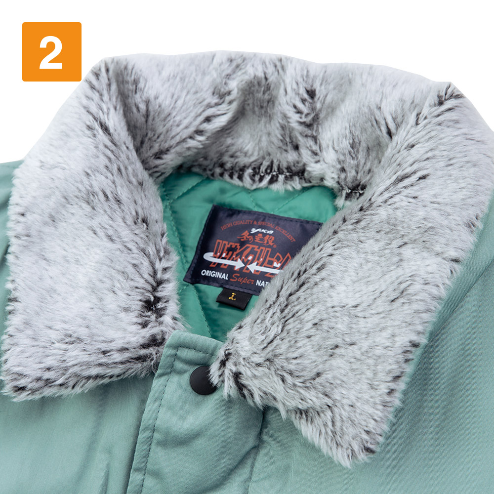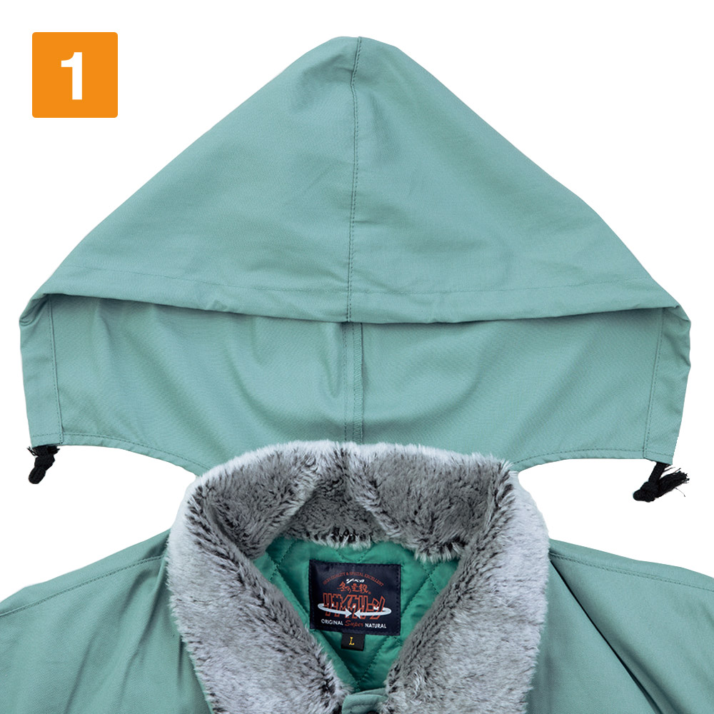 なんといってもポイントは襟のふかふかボア!中綿のあたたかな着心地をアシストします。デザイン面でもアクセントになっているので、見た目にもぬくもりを感じられます。スタンドカラーにして首に密着させればさらに暖かく、逆に暑すぎる場合は取り外すことも可能なので、幅広い気温に対応できる優れものです。また、暖かい空気を逃さない工夫として、裾と袖にリブとシャーリングを設けたデザイン。冷気の侵入も防ぐので、着ている間ずっと快適です。