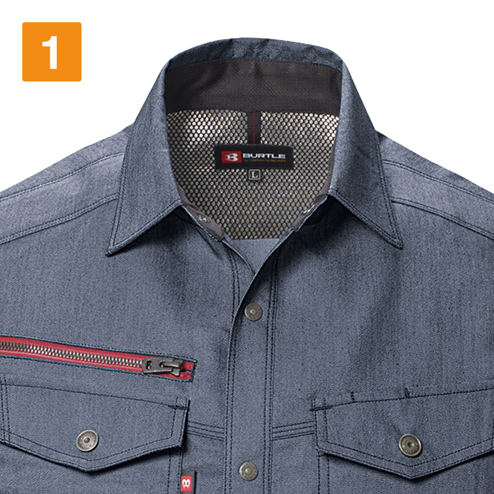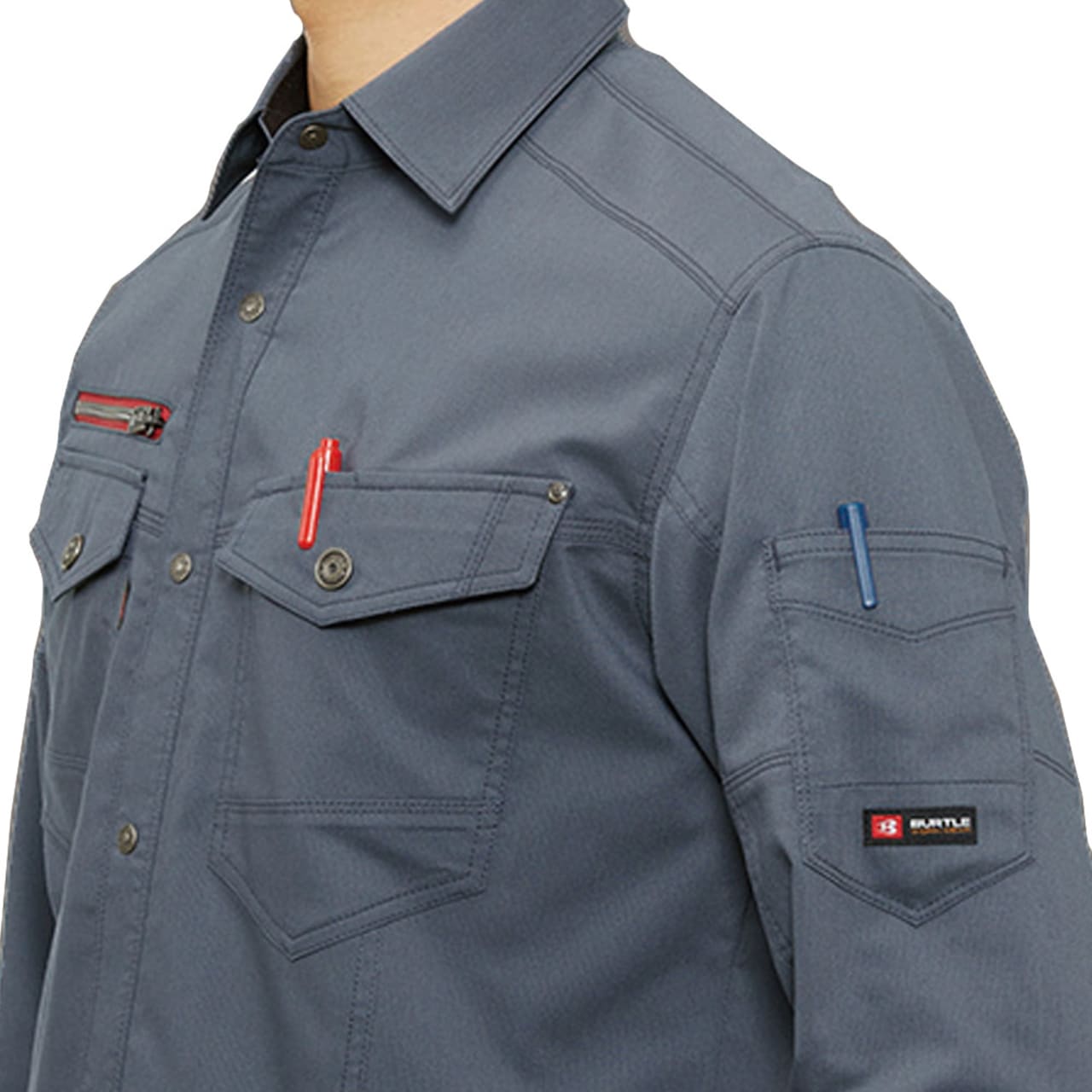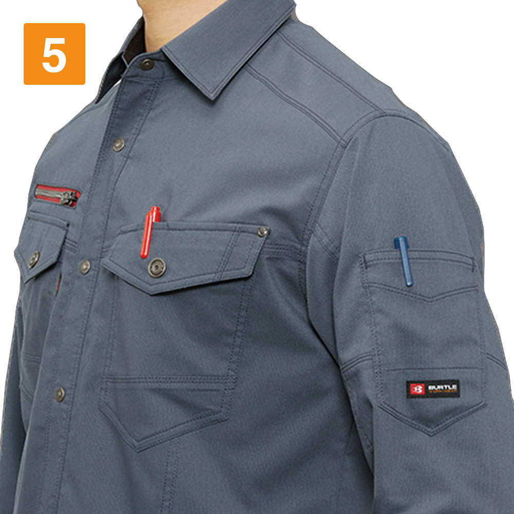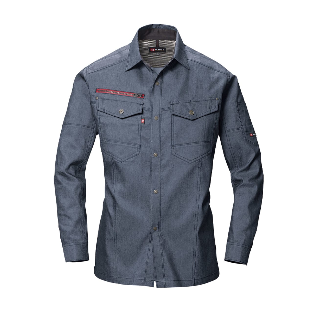 細身でスタイリッシュなデザインが特徴のジャケットです。作業着のダボっとした感じはなく清潔感があり、オシャレに着こなしたい方にオススメです。試着してみたところ、軽さ・動きやすさも申し分なく、長時間着ていても疲れにくいように感じました。深さのある胸ポケットの使い勝手が良く、スマートフォンをスムーズに出し入れできてとても便利です。丈夫な素材で、シワもできにくいため、長くご使用いただけます。 名入れを入れるなら左ソデにオリジナル刺繍がおすすめでございます。