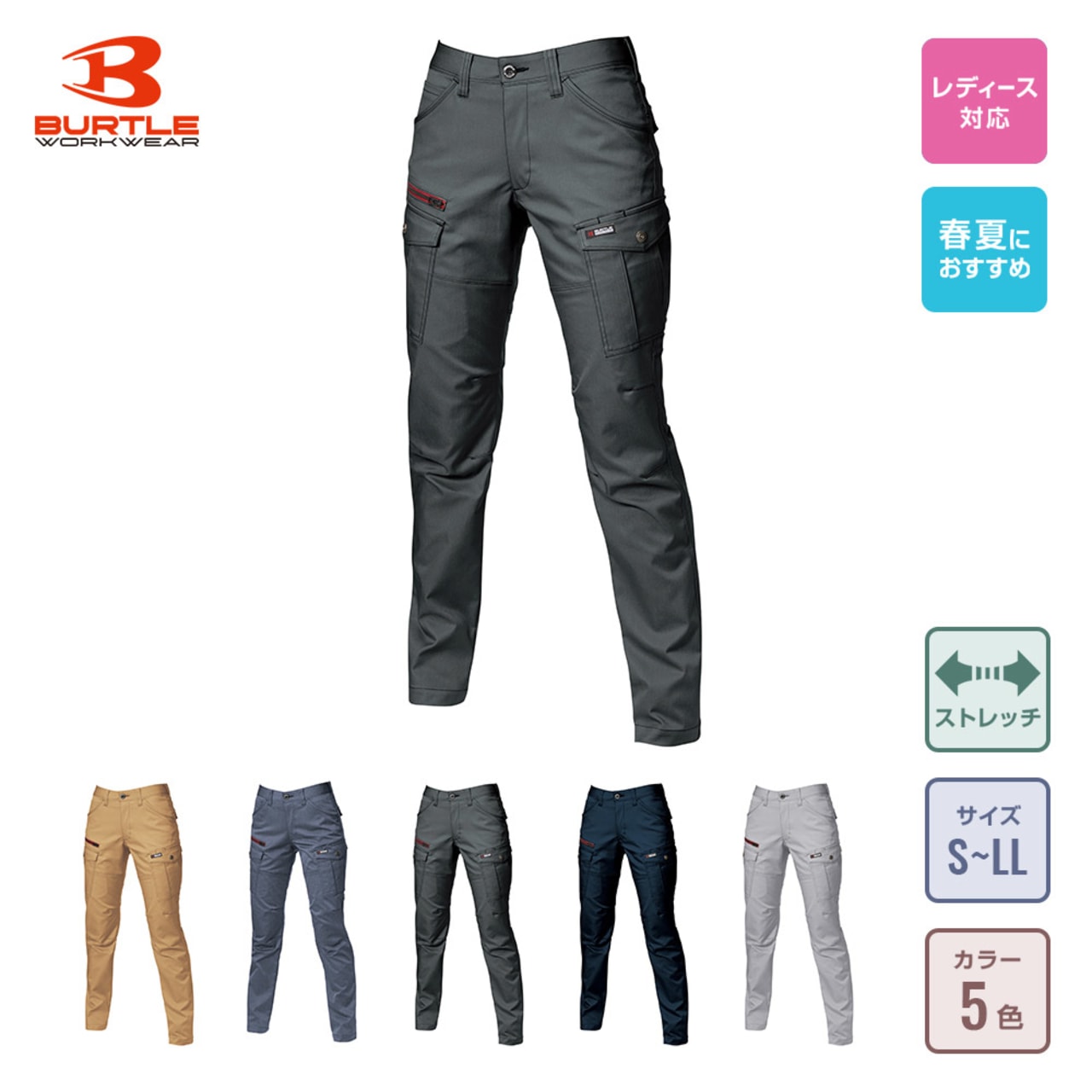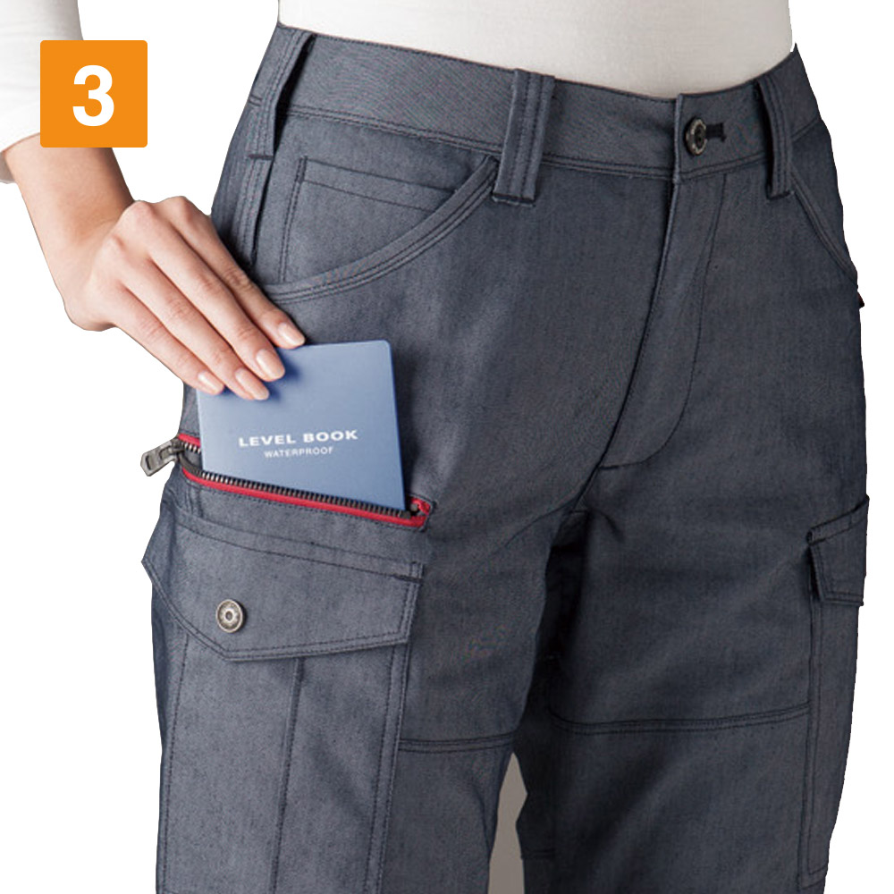 女性用ウェアならではのこだわりとおしゃれなディテールが光るパンツ。薄手の生地でもまわりの目を気にせず履いていただけるように、全カラーに透け防止の裏地付き。インナーのカラーを気にせず履けるので、毎日の煩雑さをとことん低減してくれます。またアクセントとなる切り替えステッチや、バートルおなじみのレッドカラーのファスナーがアクセントとして全体を引き締め。360°美しいシルエットはもちろん、利便性やデザイン性でも優れたパンツです。