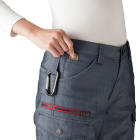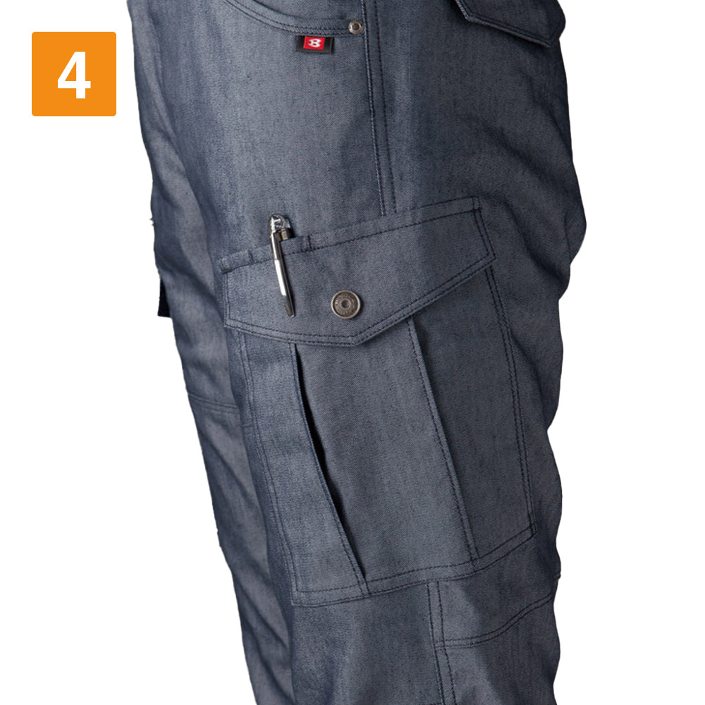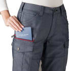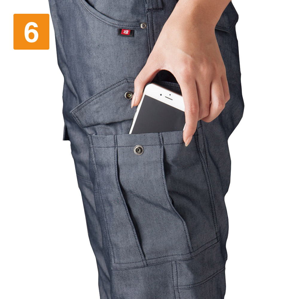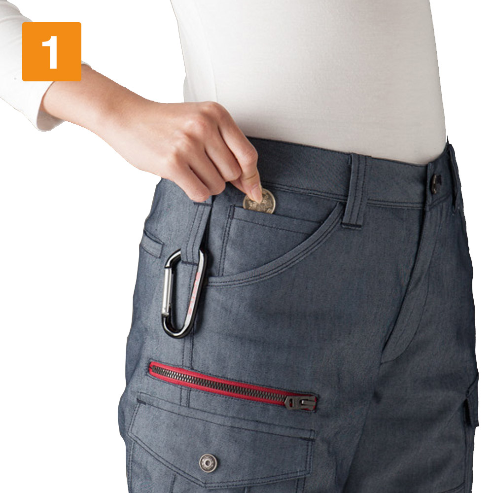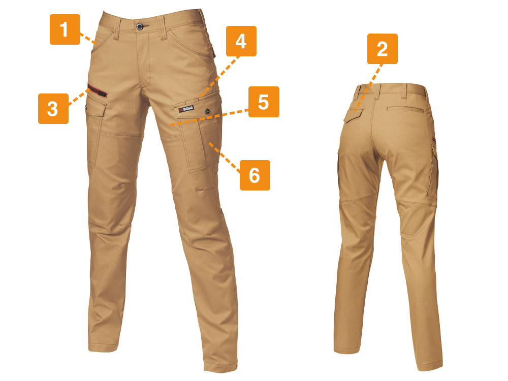 女性の体型に寄り添う美しい設計が人気のカーゴパンツです。余りがちなウエストをフィットさせつつ、太ももまわりにはほどよいゆとりがとられているので、動きやすさも抜群。ストレッチ性能により動作時のストレスをほとんど感じない仕上がりです。また夏らしい生地感も魅力。薄手の生地を使用しているので、カーゴパンツの重たさを感じさせず、軽やかな着心地を実現します。綿を含むことで、着て洗ってを繰り返すごとに生地のこなれた風合いが増していきます。シルエットと生地感の絶妙なバランスがつくる、洗練された作業スタイル。ユニフォームとして導入すればイメージアップ効果大の一本です。