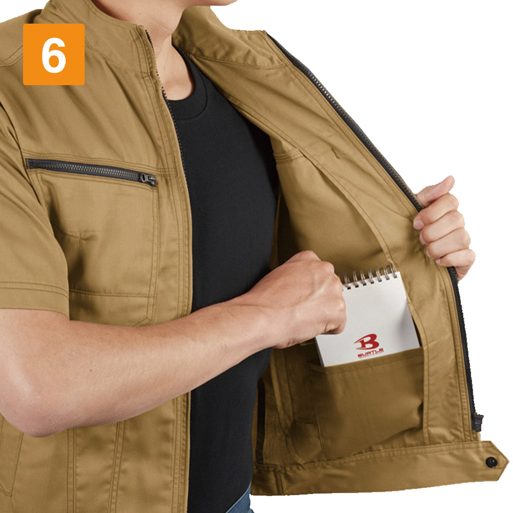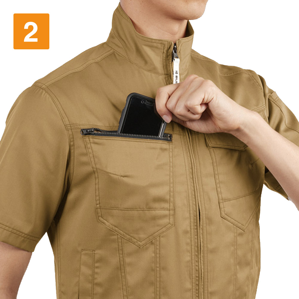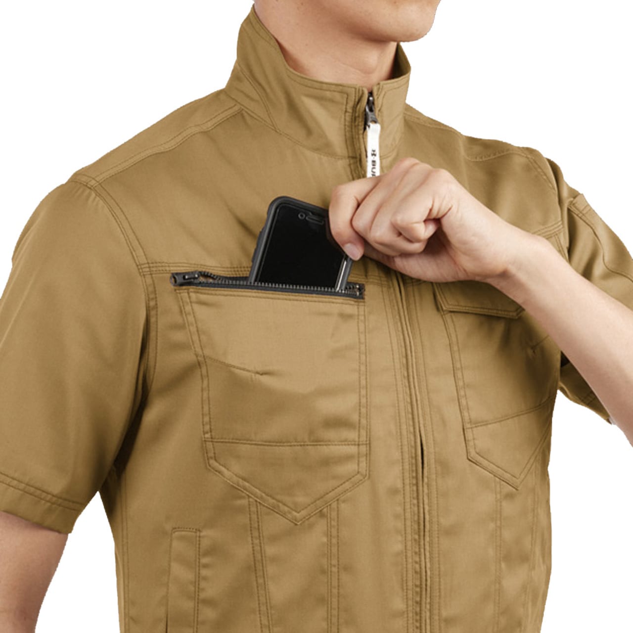 体に沿うタイトシルエットがスタイリッシュなルックスを生む一着。従来の夏用作業着のイメージを覆す、洗練された印象が人気のジャケットです。丈夫さと軽やかさを備えた薄手の日本製T/Cライトチノを使用し、汗をかく季節にもぴったりの爽やかな着心地を実現しています。カラーはモノトーンとアースカラー、さらに高発色のブルーを揃えた今らしいラインナップ。かっこよさだけでなく、機動性や収納力にも妥協のない、考え抜かれたウェアに仕上がっています。