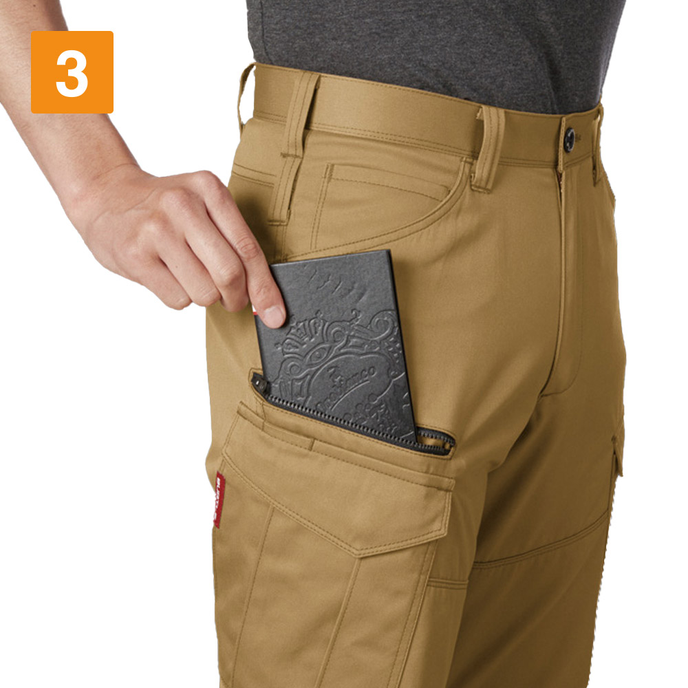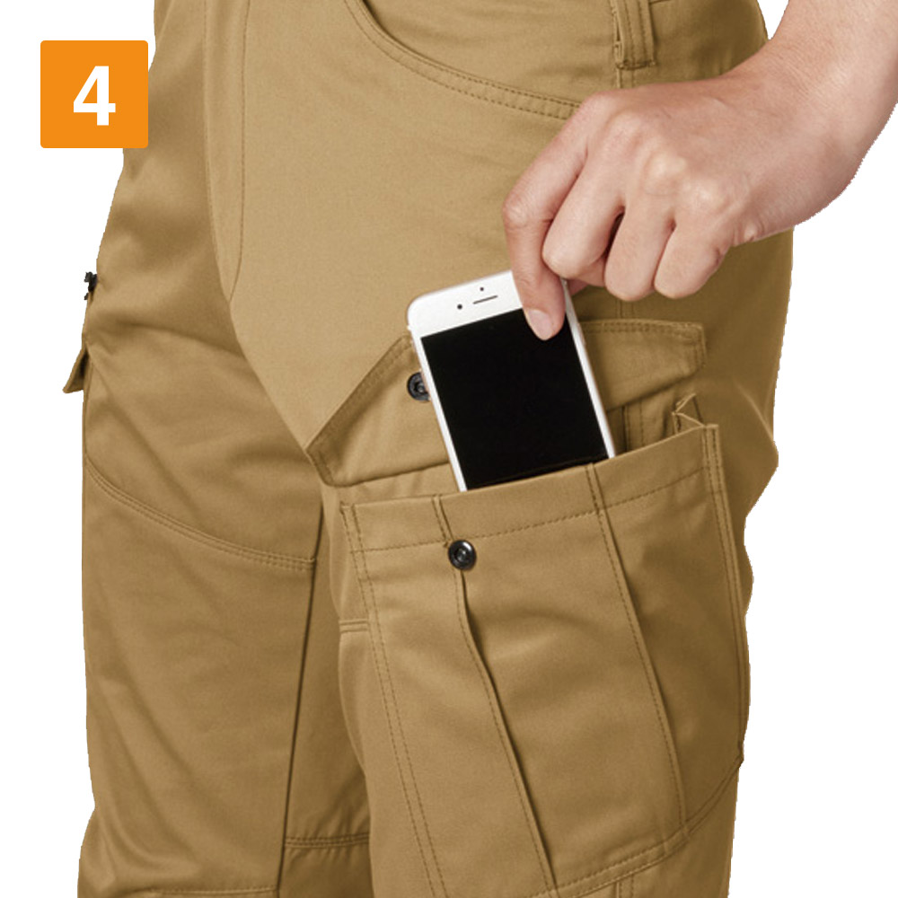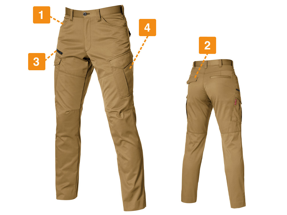 ともするとルーズな印象になりがちなカーゴパンツ。バートルだからこそ実現できたスマートなシルエットが、カーゴパンツの既存イメージを一新します。ポイントは着る方をとことんスタイリッシュにする立体的な生地の組み立て。さらに洗練されたカラーラインナップも魅力的です。ベーシックなモノトーンにアースカラー、はっとするサーフブルーと、ユニフォームとして導入すればイメージアップも図れる、クールな色が揃います。かっこよさはもちろん、過酷な現場作業にもフィットする機能面でもずば抜けたパンツです