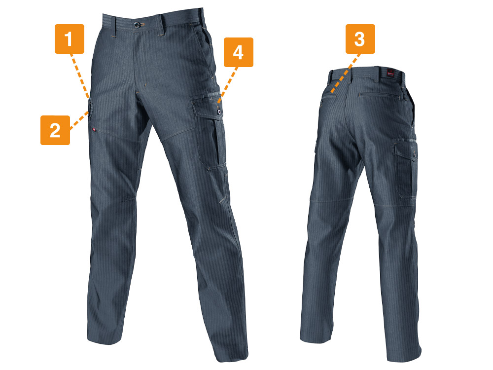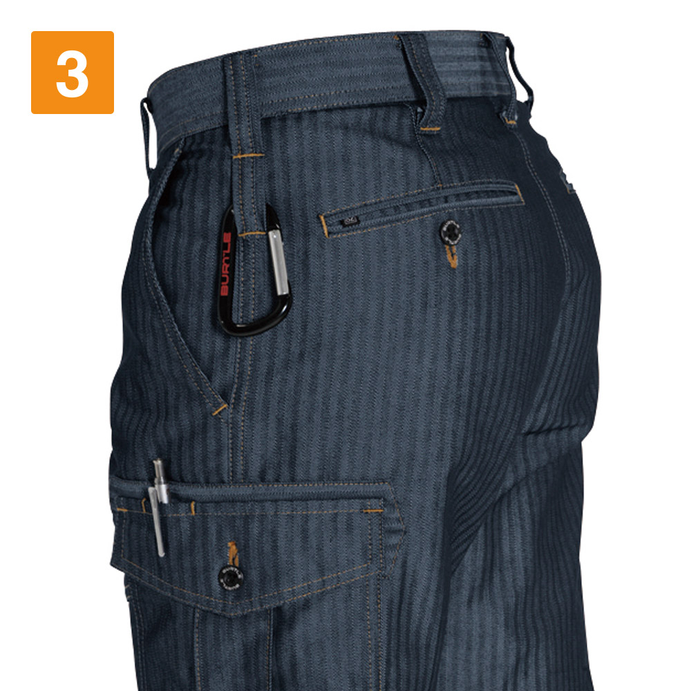 絶妙なゆとりを持たせたシルエットと、動きやすさを両立したパンツです。脚の形を立体的にとらえた生地の組み立てで、ほどよいフィット感とスタイリッシュさの絶妙なバランスが実現されています。実際に履いて屈伸などの動きを行ってみましたが、つっぱりなどを感じることなく、ストレスのない着心地が好印象でした。またデザインディテールでは、膝上ともも上に走る生地切り替えラインやそのステッチ、さりげなくアピールするオリジナルボタンなどもかっこいい!とスタッフ内で話題でした。