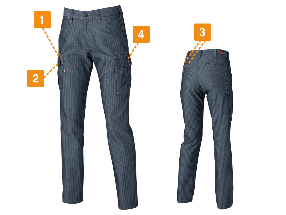 生地はこなれた雰囲気のへリンボーンと質実剛健なT/Cソフトツイルをご用意。どちらもワークウェアらしいかっこよさを演出してくれます。かつてないスマートかつスタイリッシュなシルエット。女性のスタイルに真摯に向き合いデザインされたパンツです。ウエストは優しくフィットしながらも太もとふくらはぎに適度なゆとりをもたせた専用設計。男女兼用ウェアではなしえなかった、360°洗練されたスタイルを実現します。体にフィットしていることは作業効率をグンと上げる大切な要素。その抜群の着心地をぜひご体感ください。