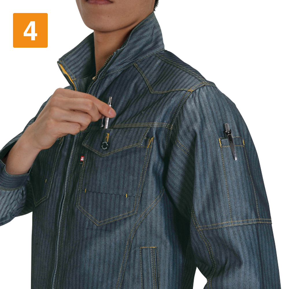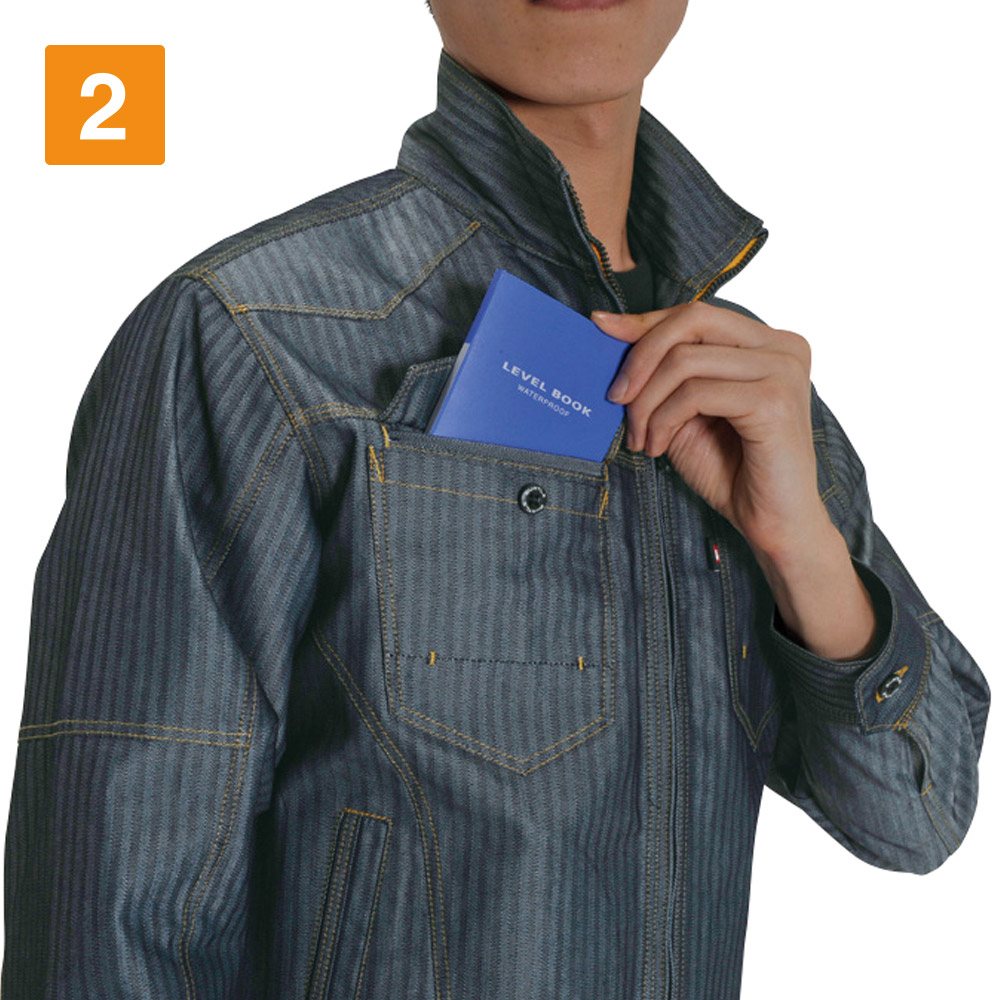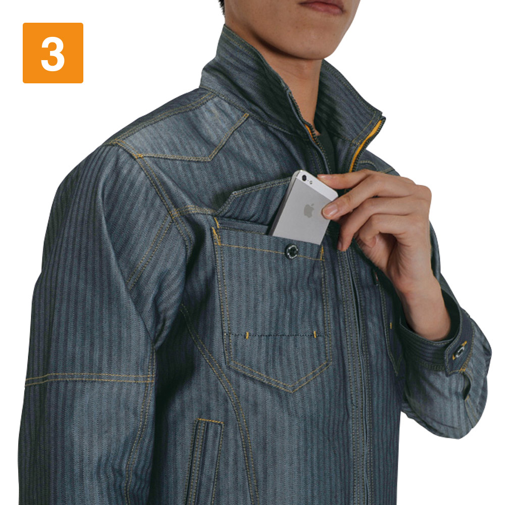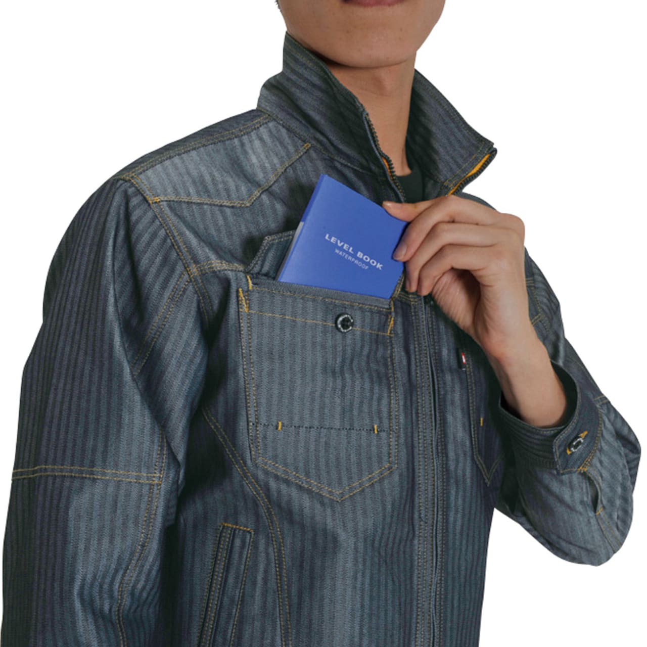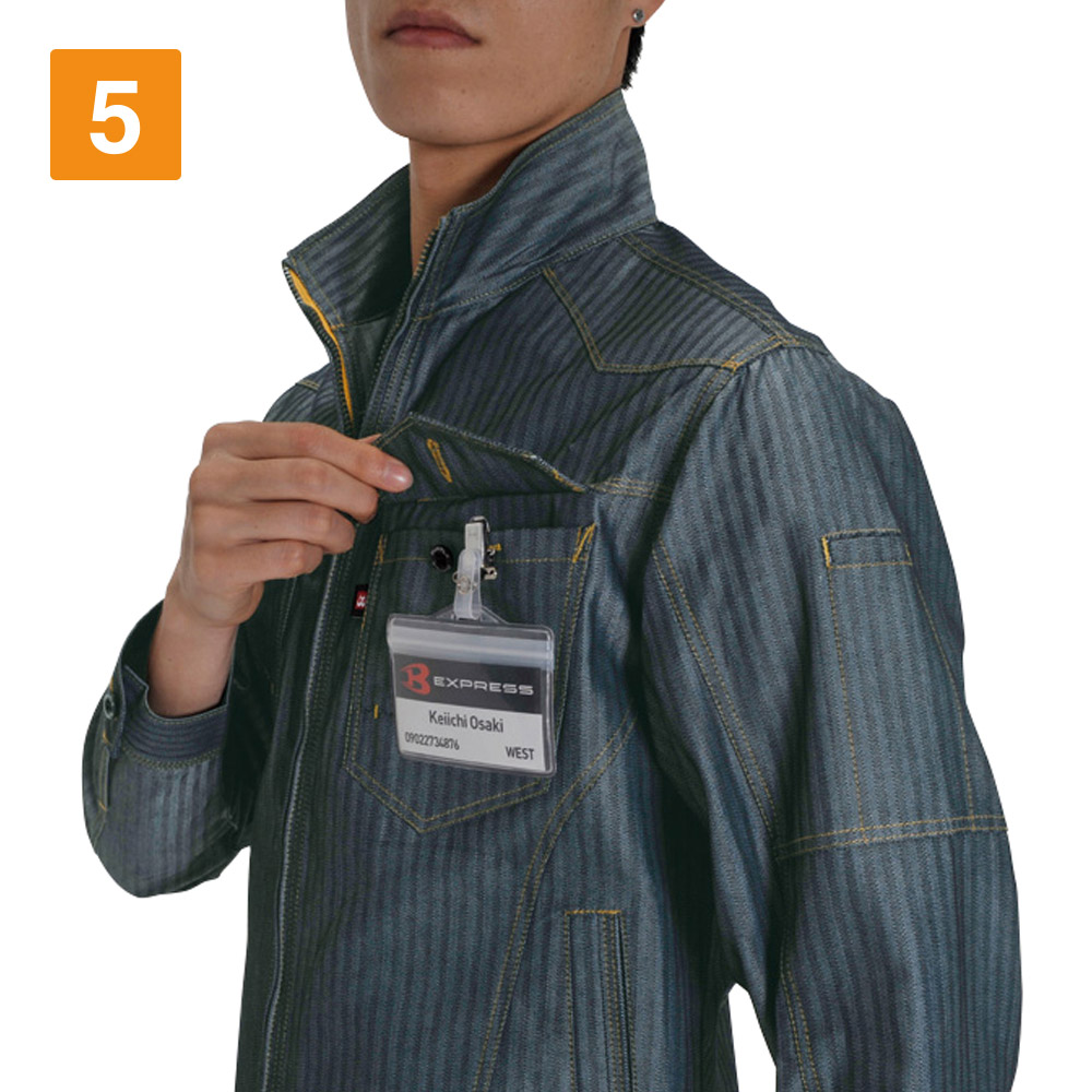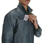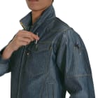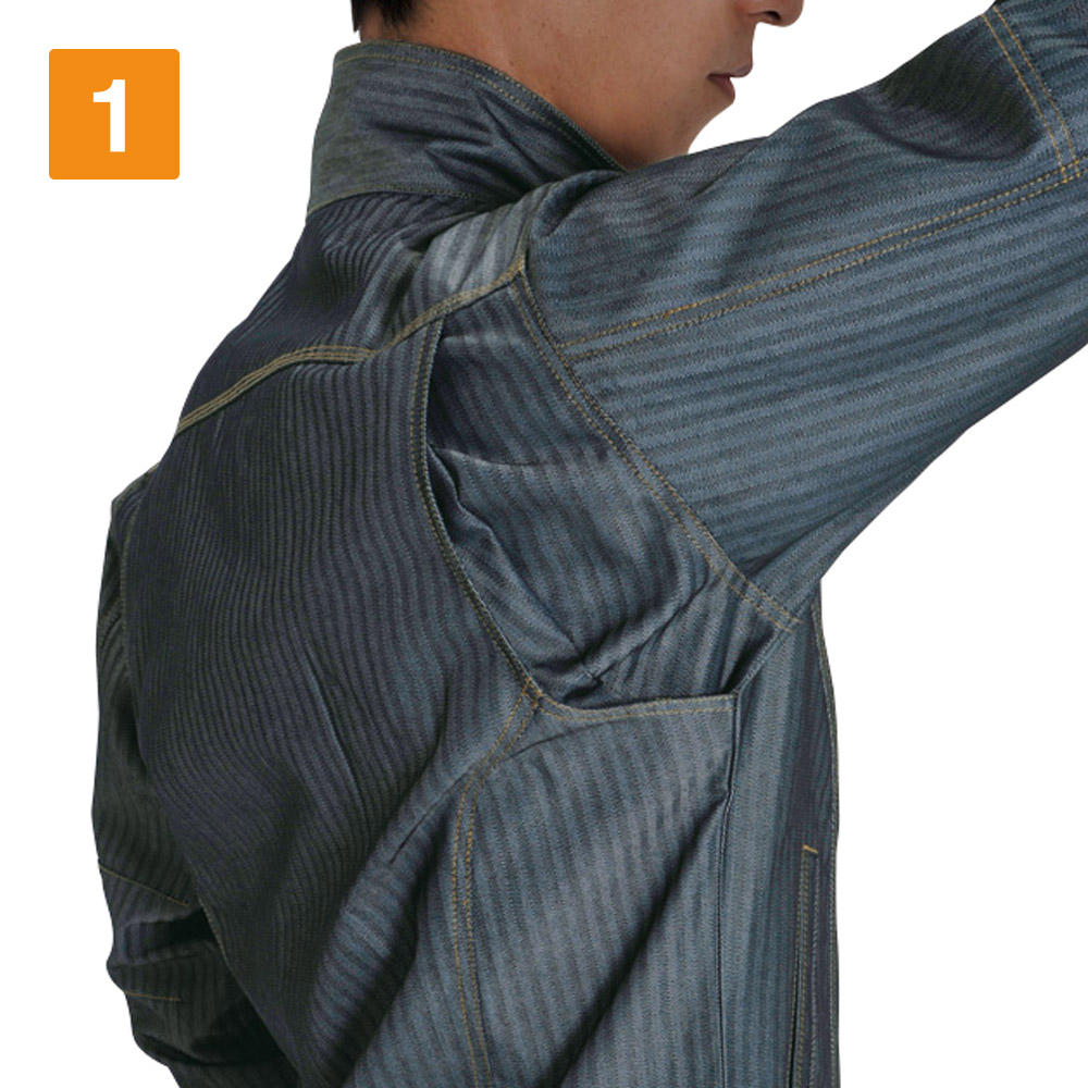 スタイリッシュなシルエットがスタッフ内でも大好評のジャケットです。実際に羽織ってみると、その涼やかな着用感に驚き!脇部分にメッシュ素材が施されているので、通気性抜群。更に動きやすさを支える背中のアームノーフォークも、一部にメッシュが使用されており、ダブルで蒸れた空気を外に逃がしてくれます。また、ウエストはシャーリングではなくボタンでフィット感を調整するスタイル。体に服が密着しないなど、暑い時期の快適性を支える工夫にあふれています。