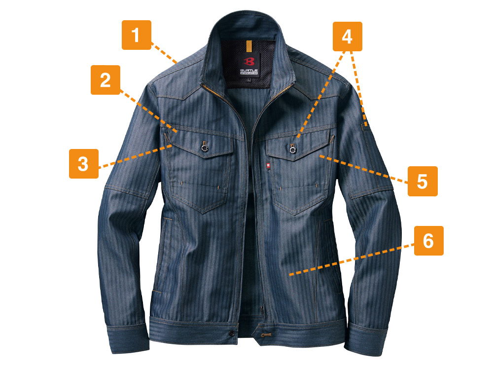 一日中着ていても心地良いジャケット。その秘密は使用されている生地にあります。薄手で丈夫なT/Cライトチノと無骨でカッコいいアメリカンヘリンボーンの2種類をラインナップ。どちらも綿を混紡した軽やかでカジュアルな質感が楽しめます。肌触りも優しく、こなれたスタイルを演出します。また全体に統一感を持たせた、哲学を感じるデザインも魅力で、フィット感を調整するオリジナルボタンや、全体に巡る生地切り替えステッチなど、存在感抜群のジャケットに仕上がっています。