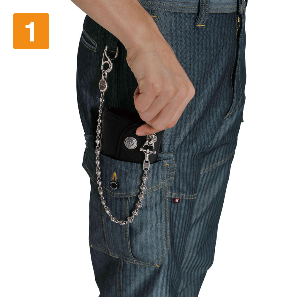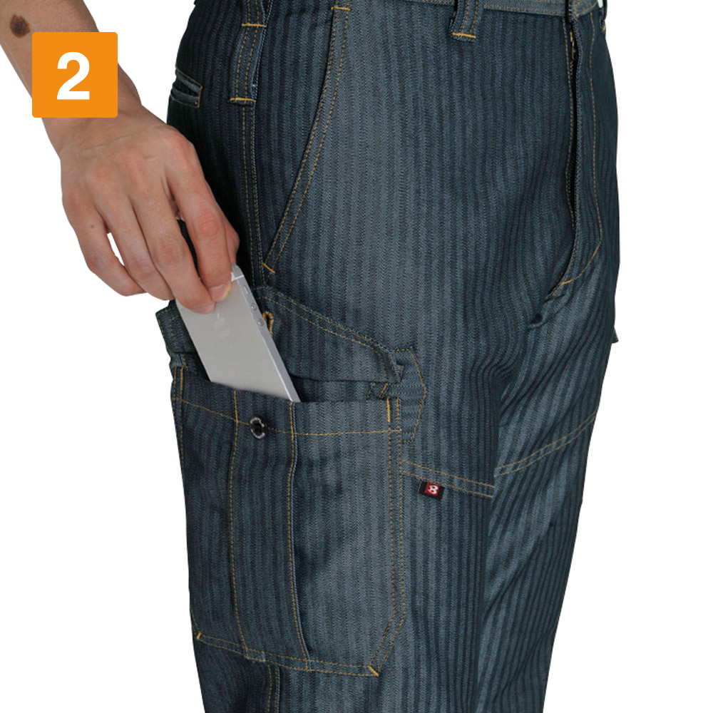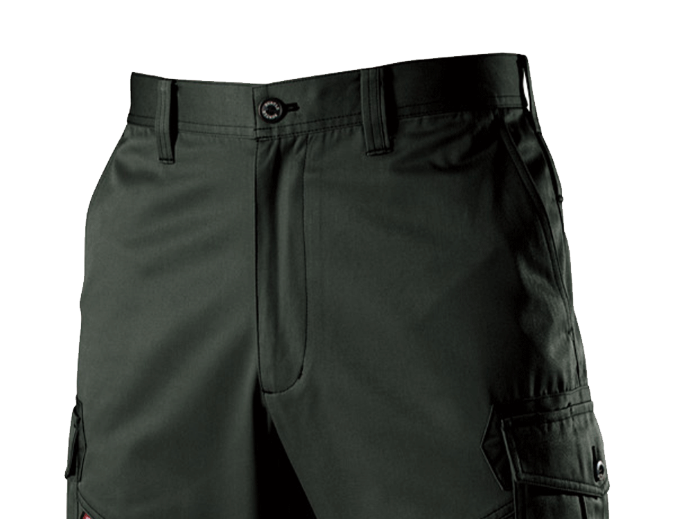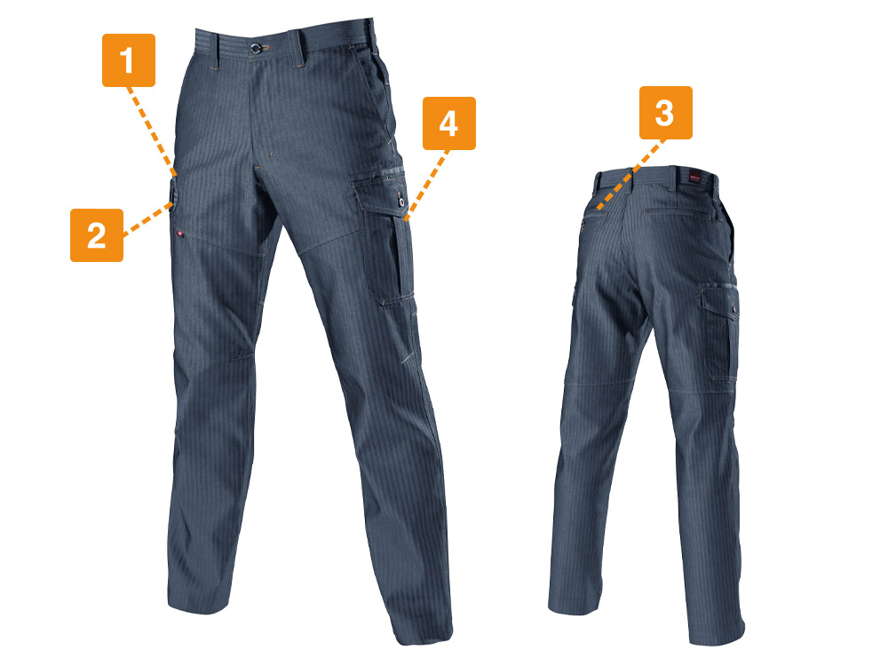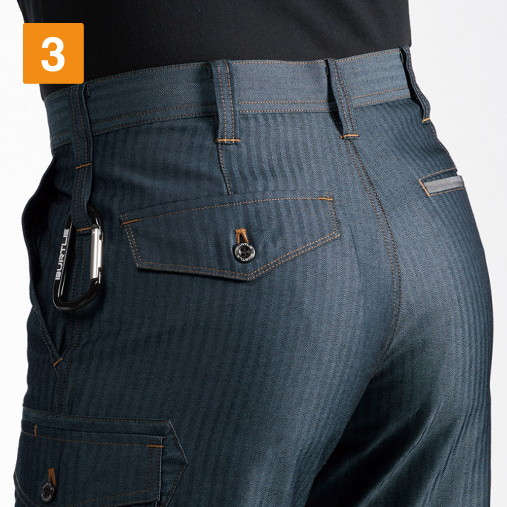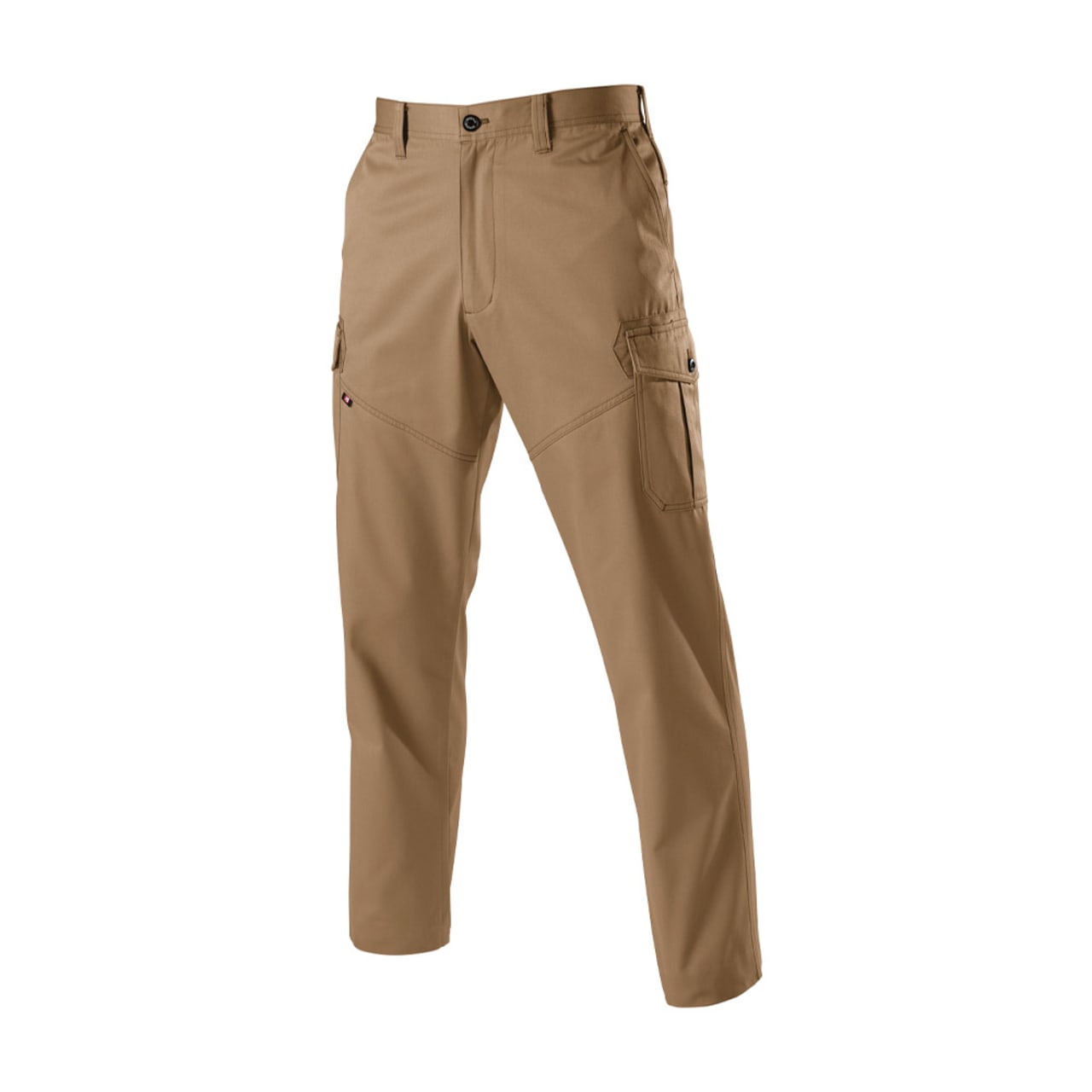 タックなしでも動きやすいよう、巧みに生地を切り替え、スマートなシルエットと抜群の機動力を両立したパンツです。実際に履いてみると、大きな動作もとても快適!布が余らないことで、動作の際にひっかかりなどの抵抗が無いのがポイントです。また、スタッフ内ではそのディテールのおしゃれさがとても好評でした。生地のカジュアル感をアップするステッチラインや、オリジナルボタンによるさりげない主張など、ただのカーゴパンツで終わらない、圧倒的な存在感が魅力です。