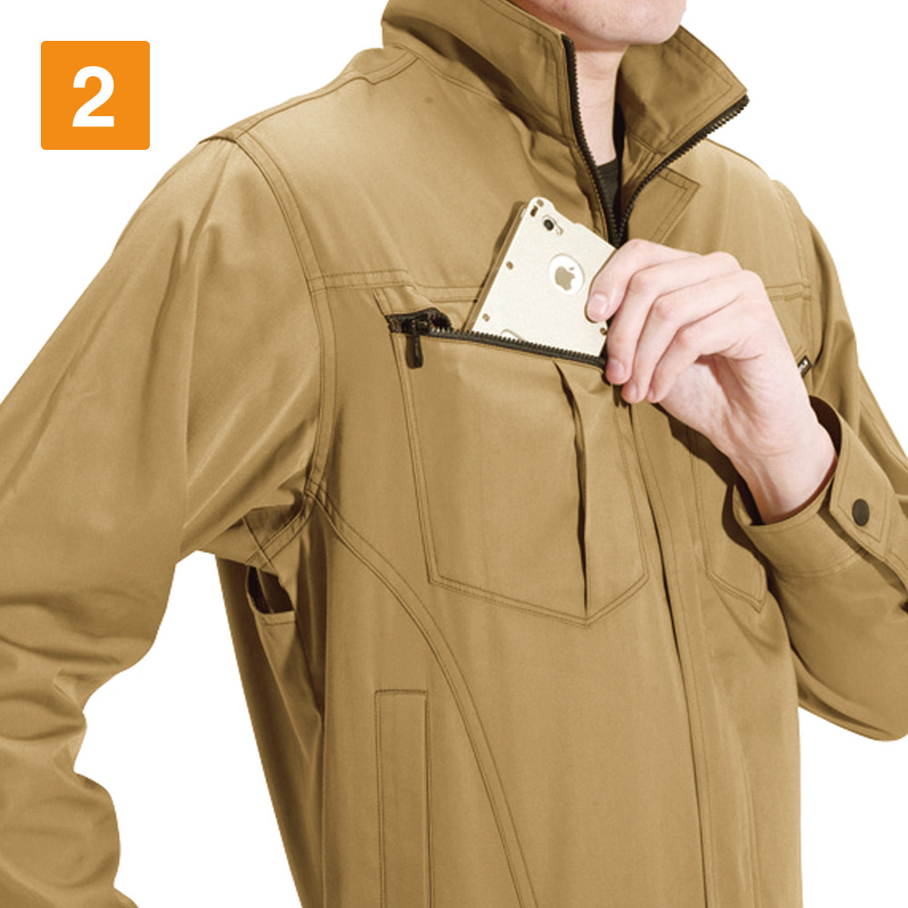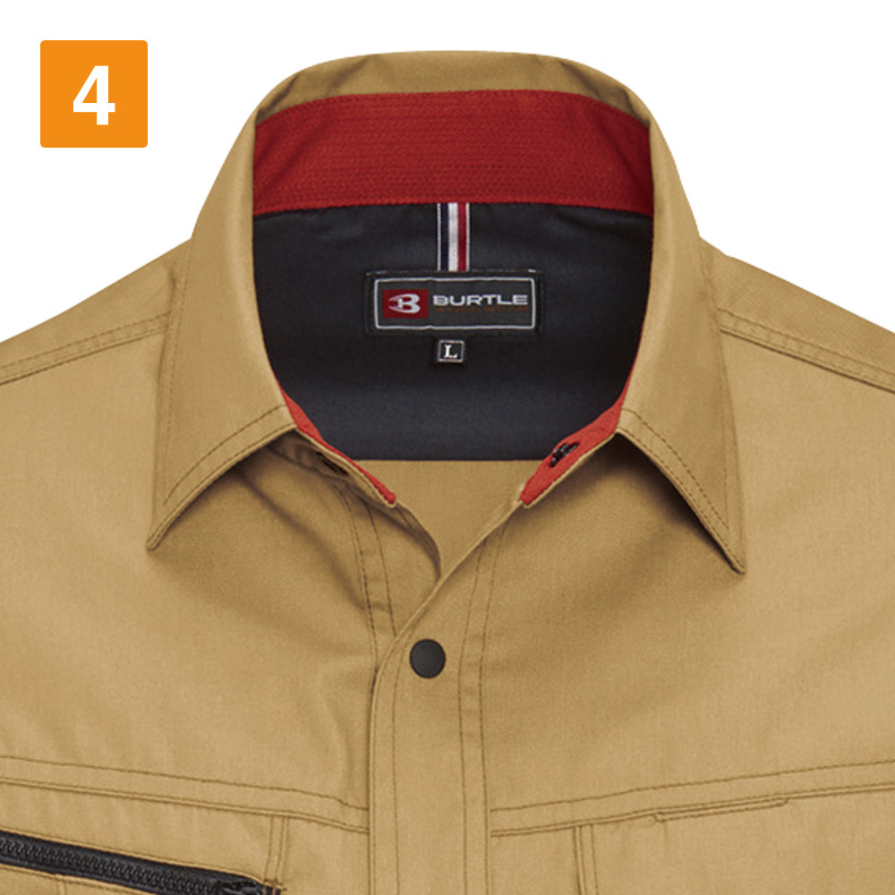 既存のワークウェアのルーズな印象を一掃する、新たなスタンダードスタイル。細身のシルエットが生む、スタイリッシュな作業姿が多くの企業で人気のモデルです。また、使いやすく誠実な印象を与えてくれるカラー展開も魅力。襟裏の吸汗ニット部分とファスナーテープにアクセントカラーを使用するなど、普遍的なデザインの中にスパイスを加えたバートルらしさが光ります。体にフィットしたシルエットをつくるステッチラインなども、全体の印象を単調にさせないポイントです。