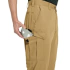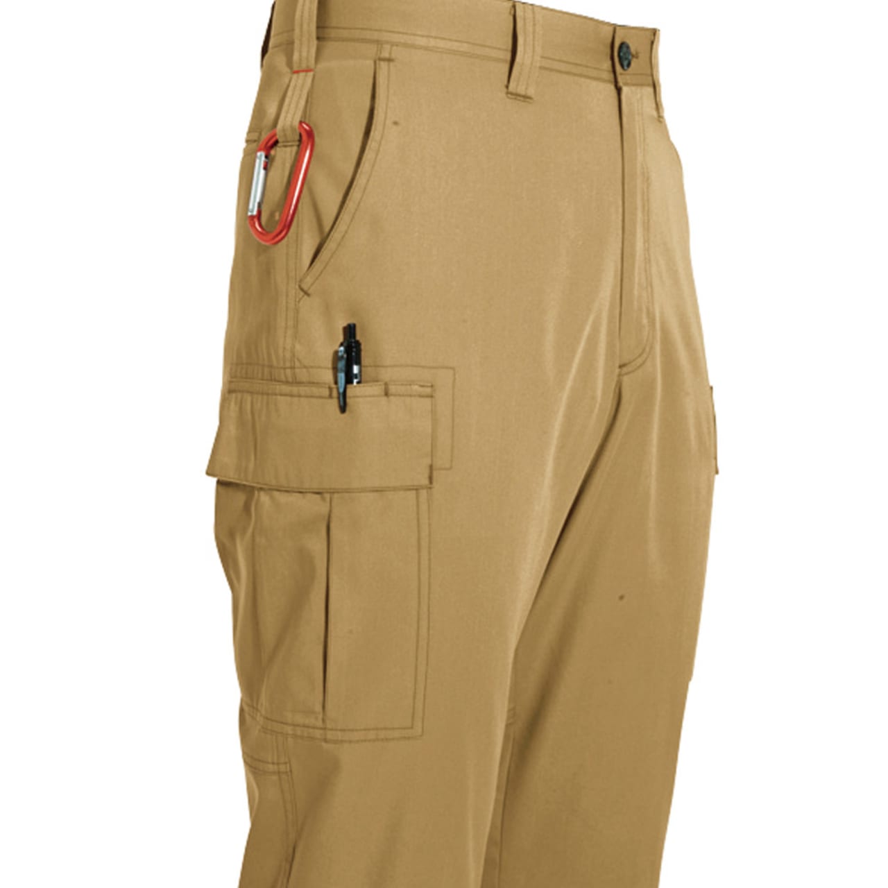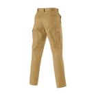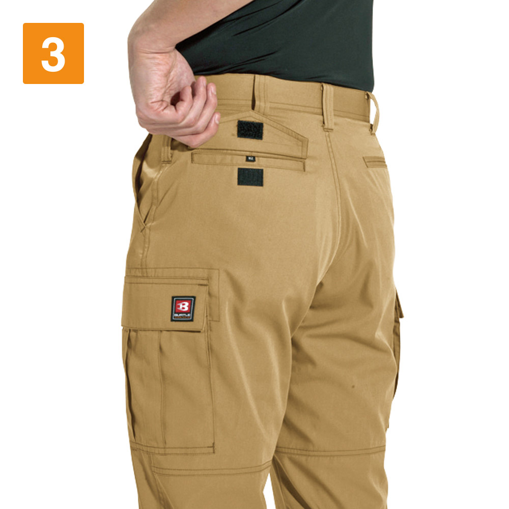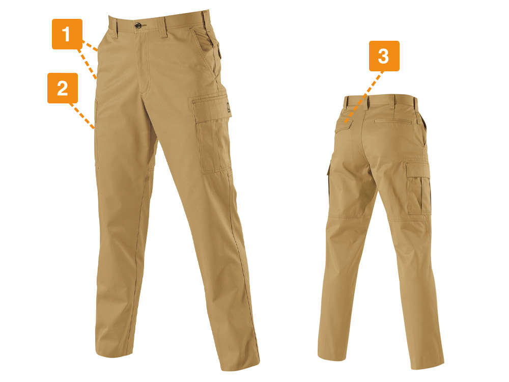 奇をてらわないデザインで、どなたにも着ていただきやすいカーゴパンツ。極限まで無駄を削ぎ落としたシンプルな設計には、哲学すら感じさせる美しさがあります。また生地は丈夫な日本製T/Cソフトツイル素材を使用。安定感のあるずしっとした雰囲気と、綿を含んだなめらかな肌ざわりが魅力の上質な素材感。まさに秋冬用ワークウェアの最適解ともいえる生地です。シンプルだから合わせるトップスを選ばず、一本で幅広いワークスタイルに対応してくれます。