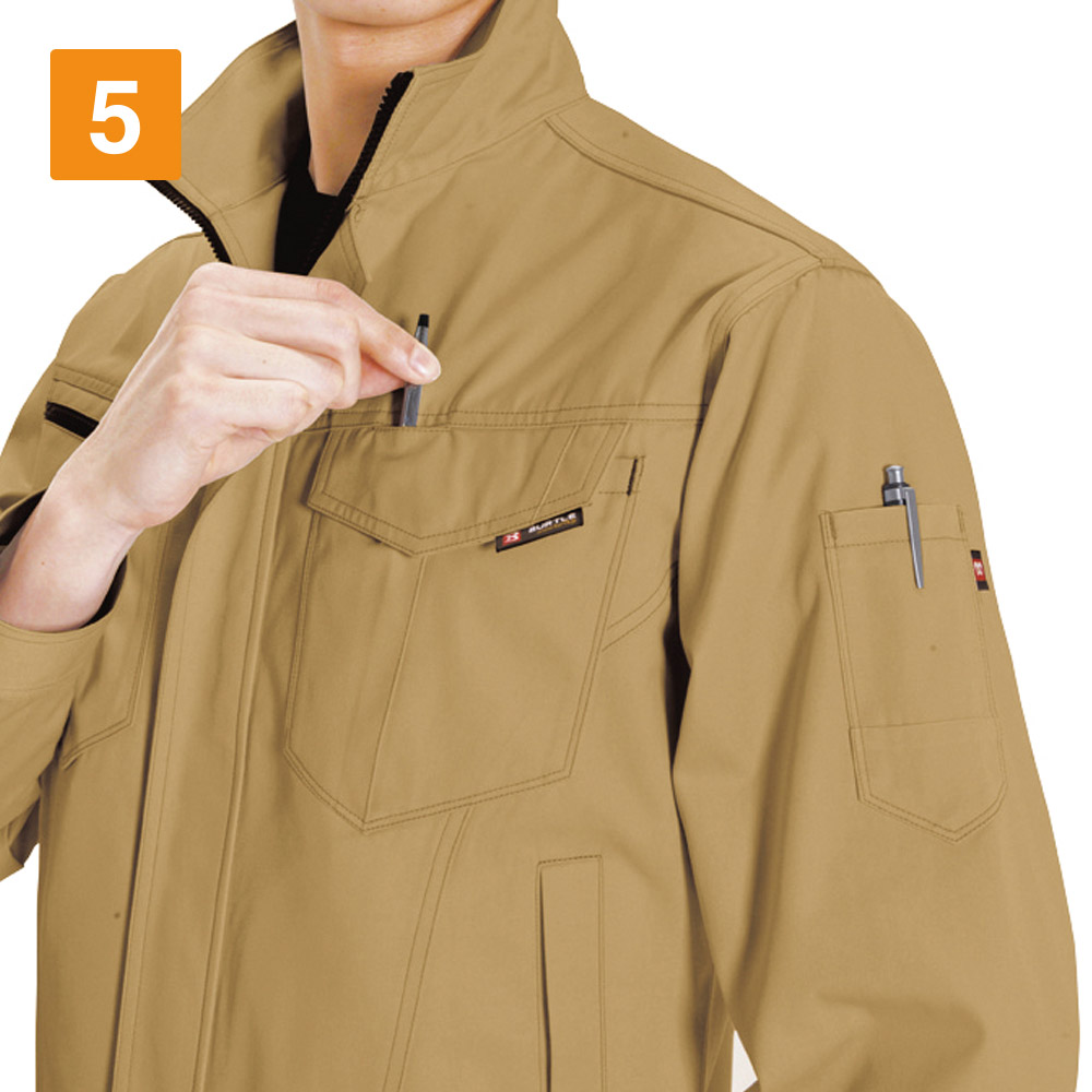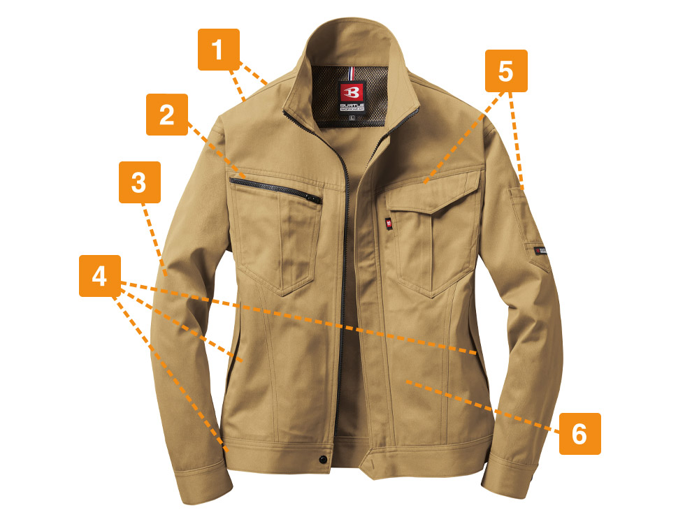 ベーシックなデザインの中に遊び心の光るジャケットです。どなたにも着ていただきやすいシンプルなスタイル。スマートなシルエットに、野暮ったさをとことん省いた美しい設計はまさにバートルならではです。そこにファスナーテープやロゴタグ、ポケットなど細やかなアクセントによる、粋な味付けをプラス。唯一無二の存在感を放つスタイリッシュジャケットが完成しています。またライトチノのしなやかで肌触りのいい生地感が、快適な着心地を実現。作業姿をとことんカッコよく。既存のイメージをアップデートする一着です。
