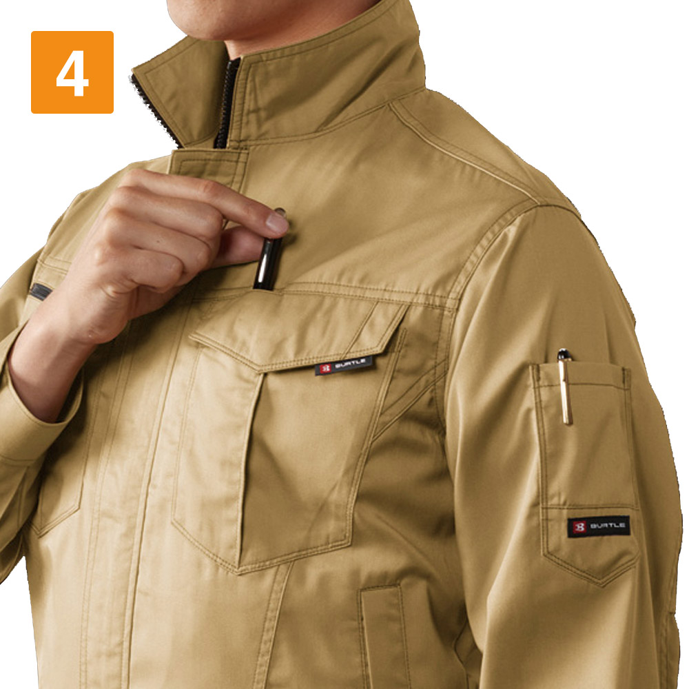 作業姿を爽やかにアップデートする一着。T/Cライトチノの軽やかな生地感とさらりとした肌触りが夏らしい印象のジャケット。体に沿うシルエットがキリッとした涼やかな印象を与えます。またカラー展開も豊富で、ベーシックなモノトーンとアースカラーにプラスして、鮮やかなロイヤルブルーとオレンジをラインナップ。どの色も洗練されたニュアンスカラーで、企業イメージの演出にも最適です。また、SSとSサイズには女性にも着ていただきやすいユニセックスシルエットを採用し、多くの方にぴったりフィットするウェアに仕上がっています。