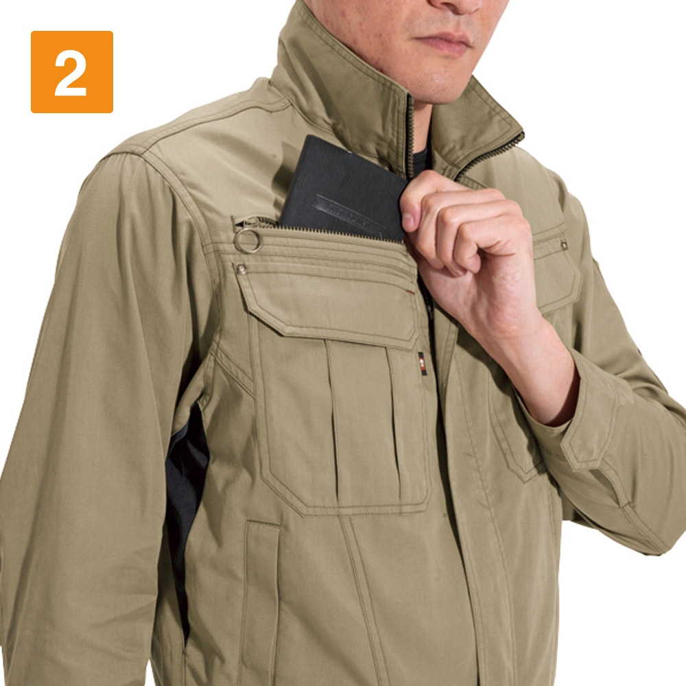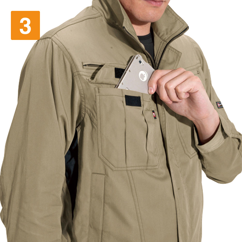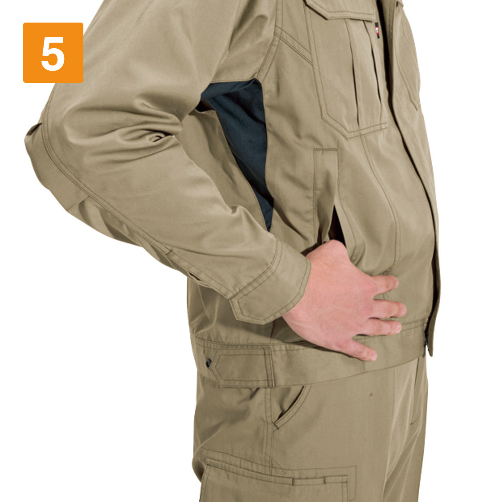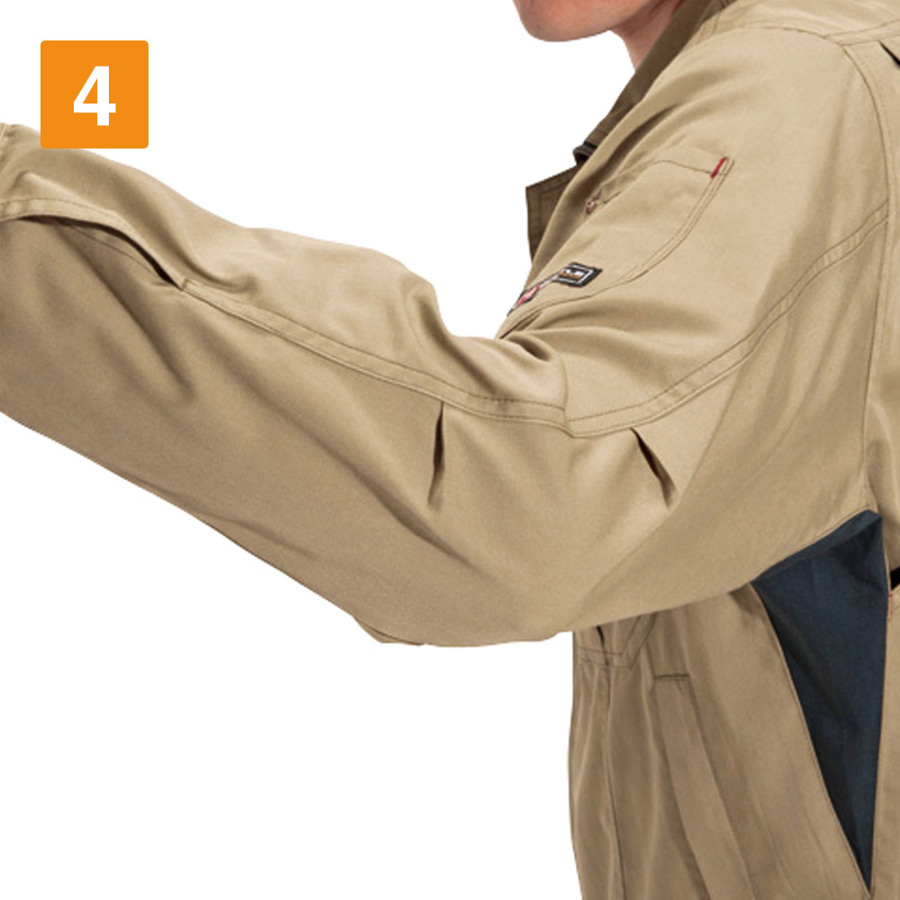 ワークウェアに必要なアクティブな動きをアシストする一着です。袖の上げ下げをスムーズにする45ダイヤカットをはじめとした、抜群の機動力が特長のジャケット。さらに腕の曲げ伸ばしをしやすくするアームタックや、背中のアームノーフォークなど、上半身の動きを支える設計がふんだんに盛り込まれています。さらにおしゃれなカラーラインナップが洗練された印象に。幅広いシーンで活躍できるタフさを備えた、高機能かつシンプルなジャケットです。