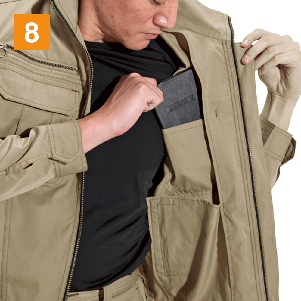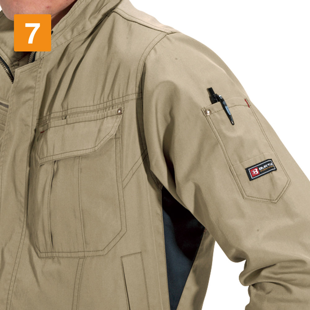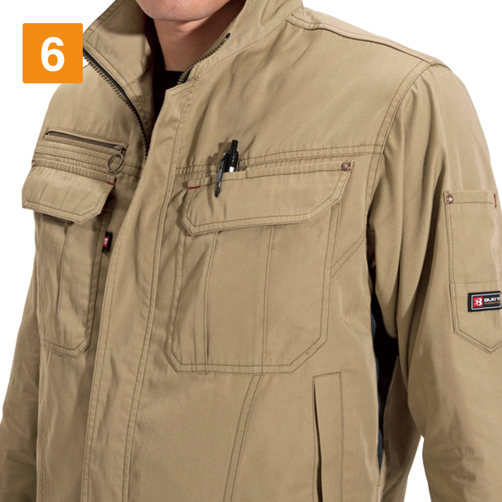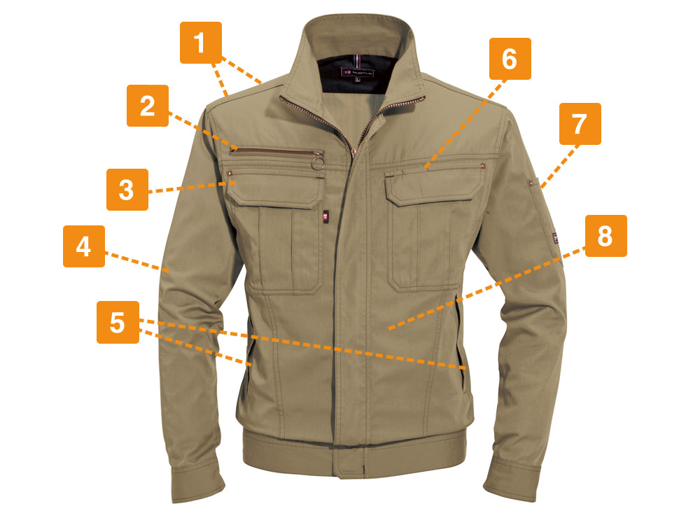 ワークウェアに必要なアクティブな動きをアシストする一着です。袖の上げ下げをスムーズにする45ダイヤカットをはじめとした、抜群の機動力が特長のジャケット。さらに腕の曲げ伸ばしをしやすくするアームタックや、背中のアームノーフォークなど、上半身の動きを支える設計がふんだんに盛り込まれています。さらにおしゃれなカラーラインナップが洗練された印象に。幅広いシーンで活躍できるタフさを備えた、高機能かつシンプルなジャケットです。