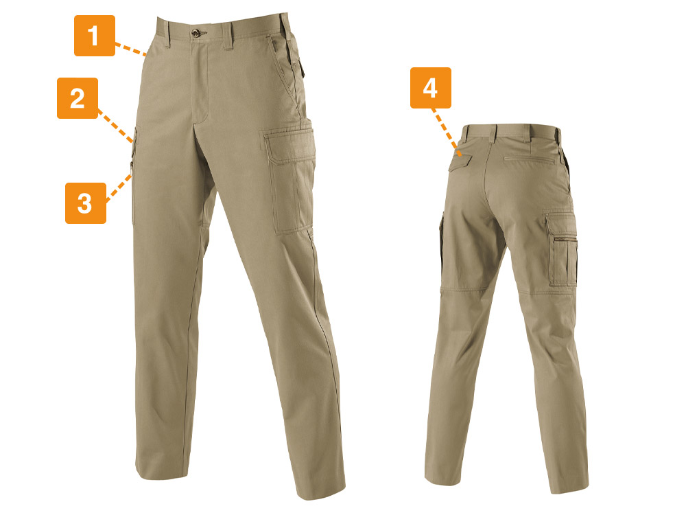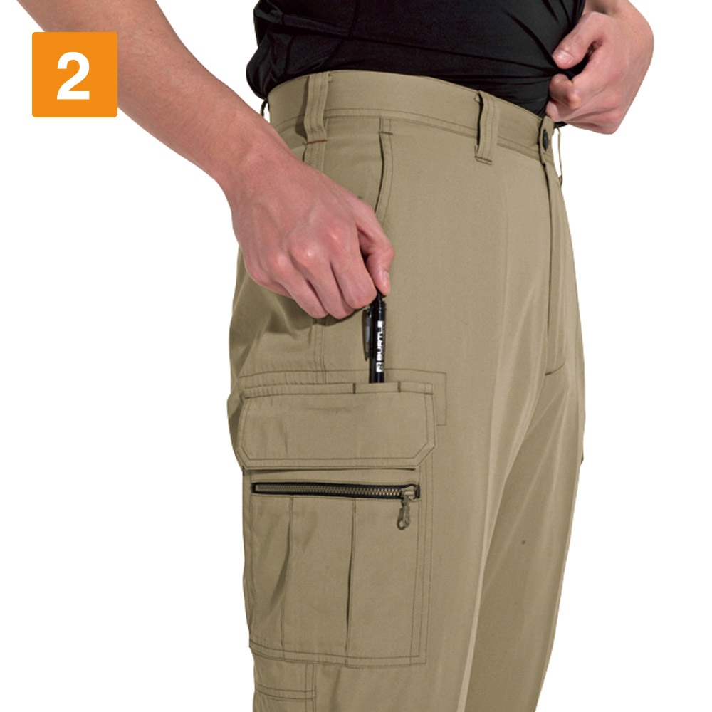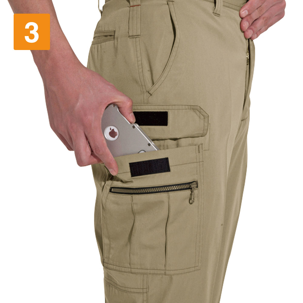 ワークウェアの良さを残しつつも、既存のカーゴパンツを都会的にアップデートしたスタイリッシュパンツです。カーゴパンツにありがちなルーズな印象を排した、かっちりとしたデザインが、環境を問わず着る人をスタイリッシュに演出します。またサイズはとても幅広く用意されているので、一人ひとりの体型にぴったりのサイズが見つかります。シンプルで合わせやすく、同じシリーズのジャケットやシャツはもちろん、ワイシャツなどとも馴染む万能アイテムです。