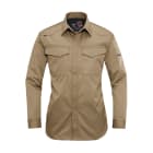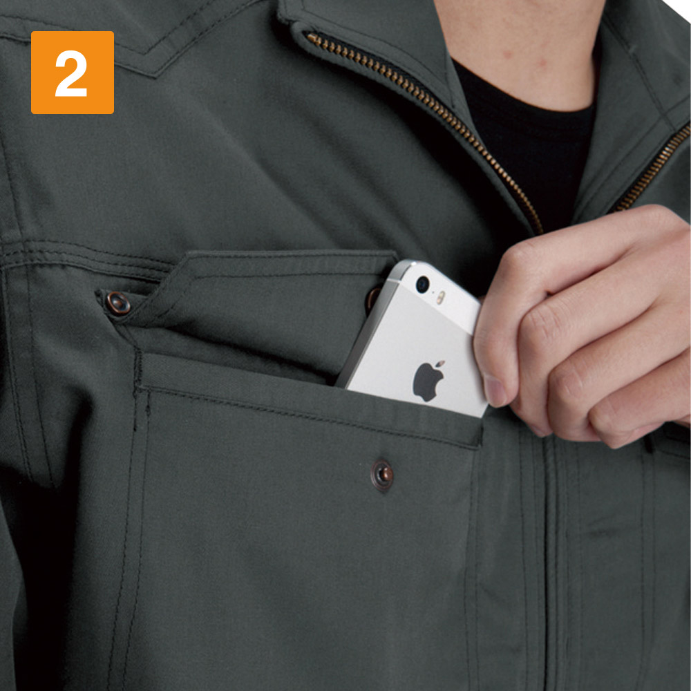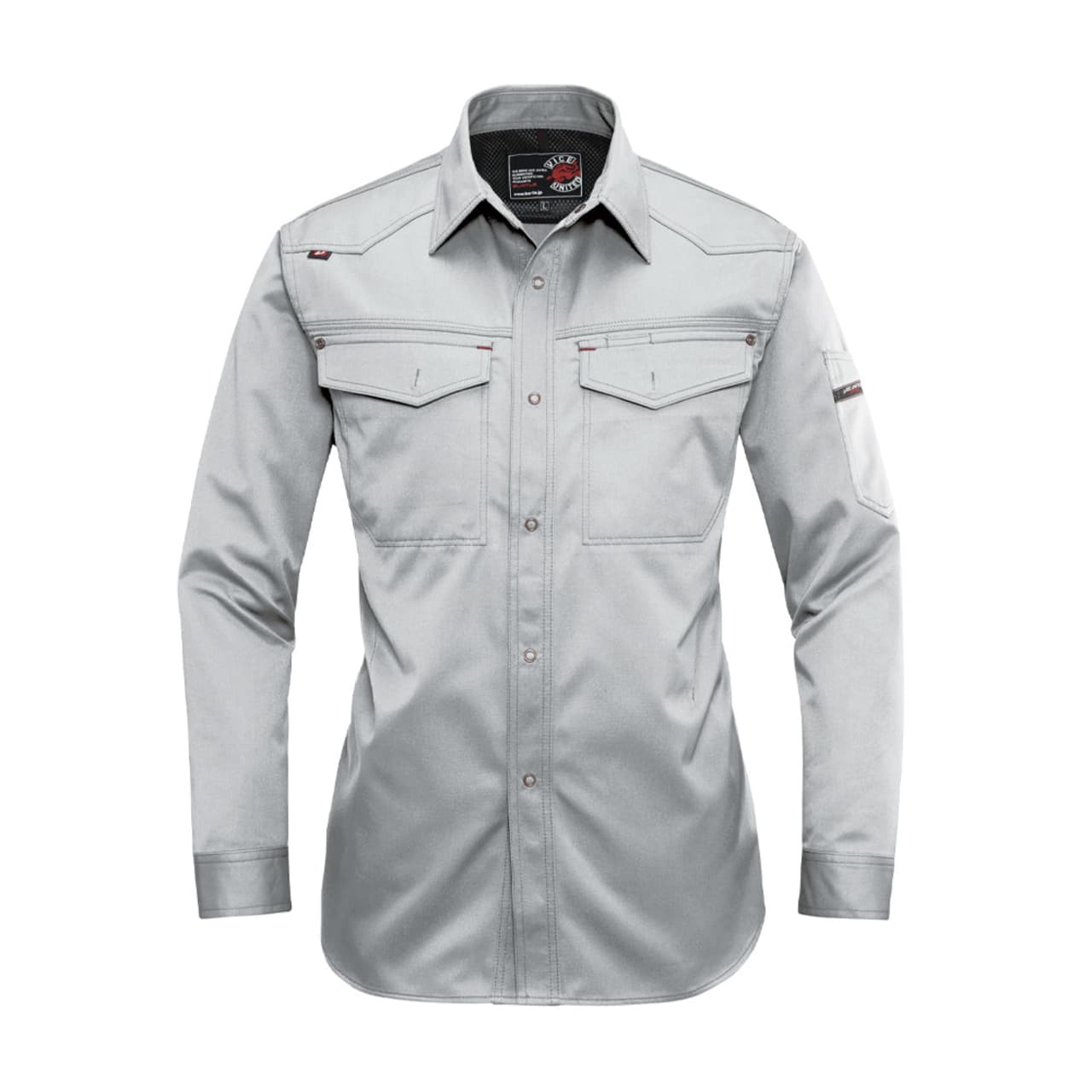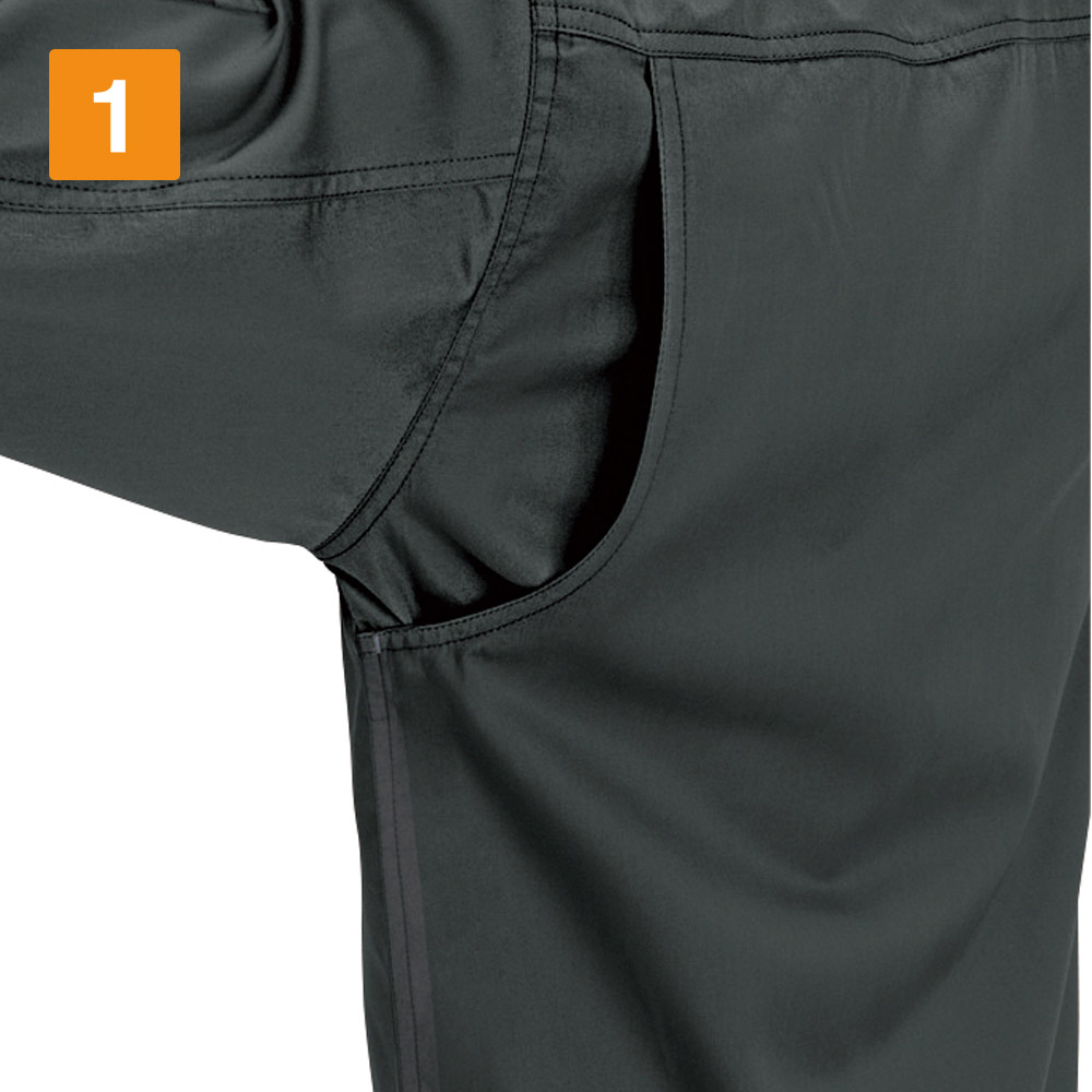 シーンを問わず、着る方をかっこよく演出してくれる一着。都会的なタイトめのシルエットが、作業姿を粋に見せてくれます。特長は動きやすさを格段に向上させる背中のアームノーフォークと袖のアームタック。腕の上げ下げや前屈、腕の曲げ伸ばしといった大きな動作も、全くストレスを感じさせない加工が施されています。かっこよさはもちろんのこと、シャツのもつ堅牢性と機動性が、安全かつ快適な作業をしっかりとアシストしてくれます。