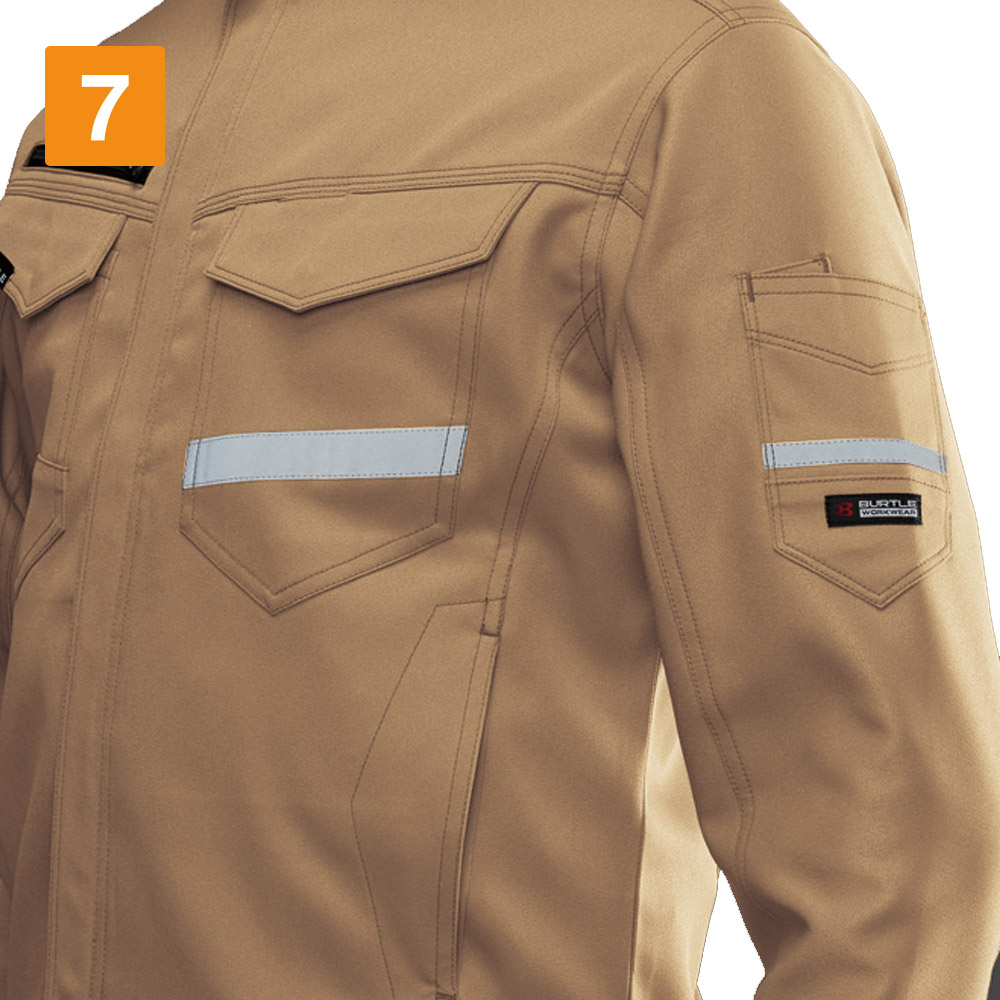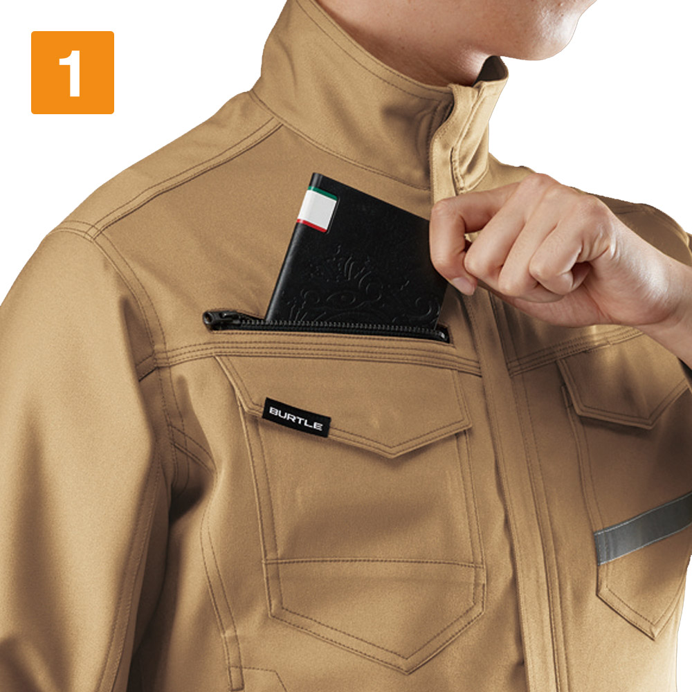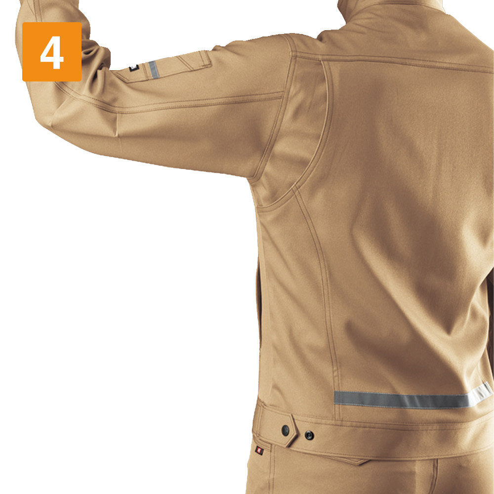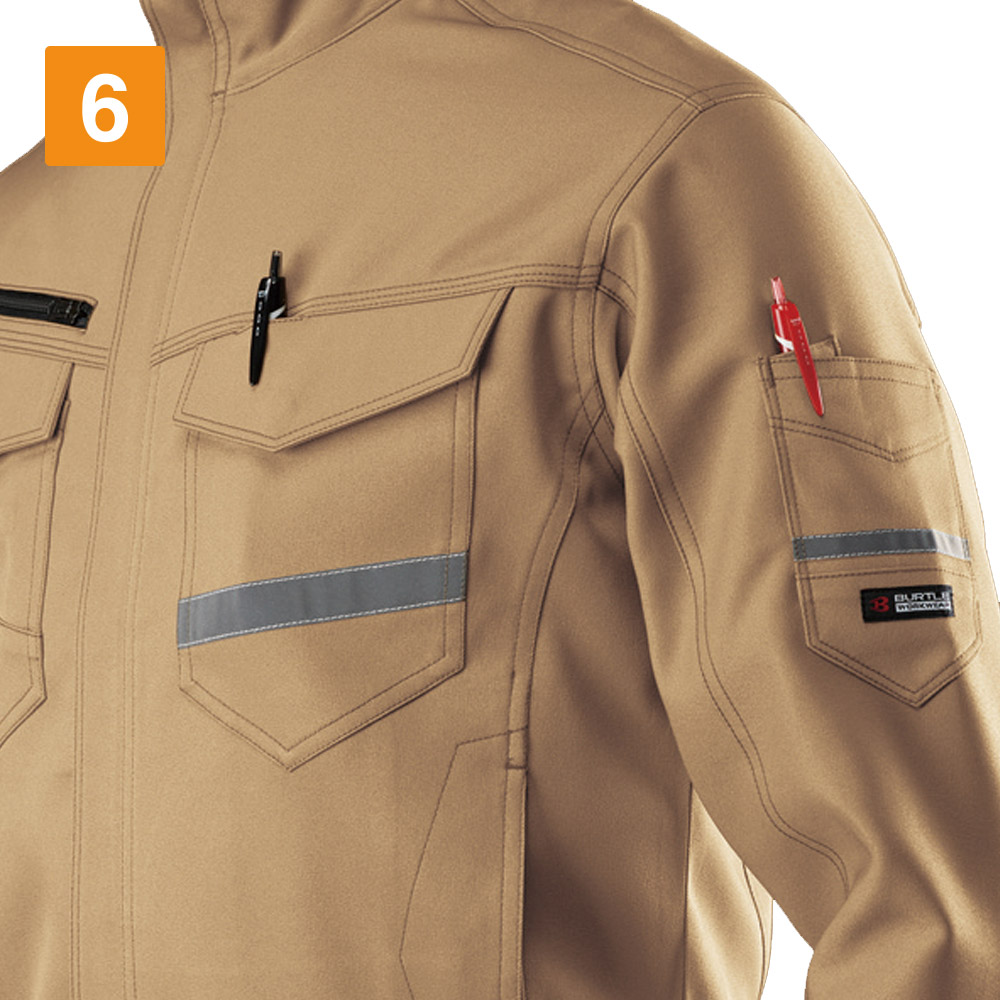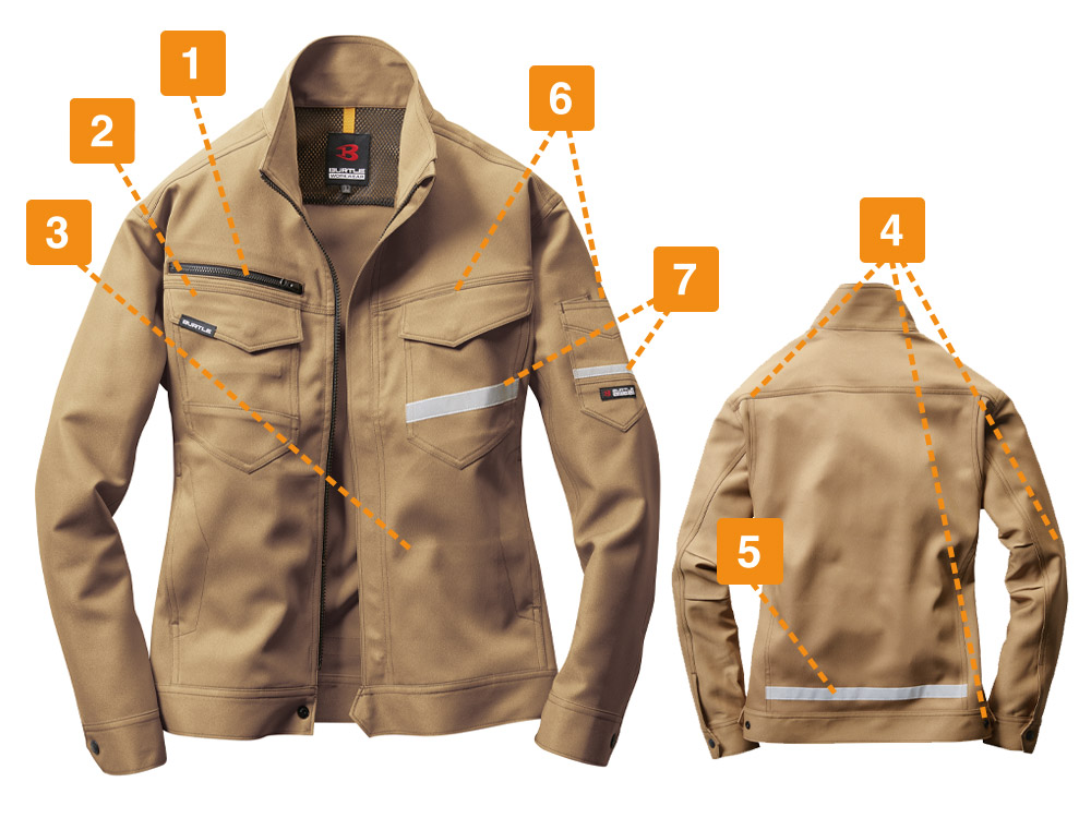 ストレッチの効いた細身シルエットで、着用時のスタイルを最大限にかっこよく魅せてくれるデザイン。ユニフォームから洗練された企業イメージを表現できます。計算しつくされた反射材とポケットの配置で、さらにオシャレ度UP。内・外に配置されたポケットは用途に合わせた収納力が秀逸。タックやアジャスターなど、とことん動きやすくする工夫も盛りだくさんで、ストレスのない作業性を実現しています。また今回は女性の体型を美しく見せてくれる、SS・Sサイズの女性専用サイズをご用意。男性・女性ともにかっこよく美しく見せてくれるので、どんな職場にも映えるユニフォームです。