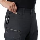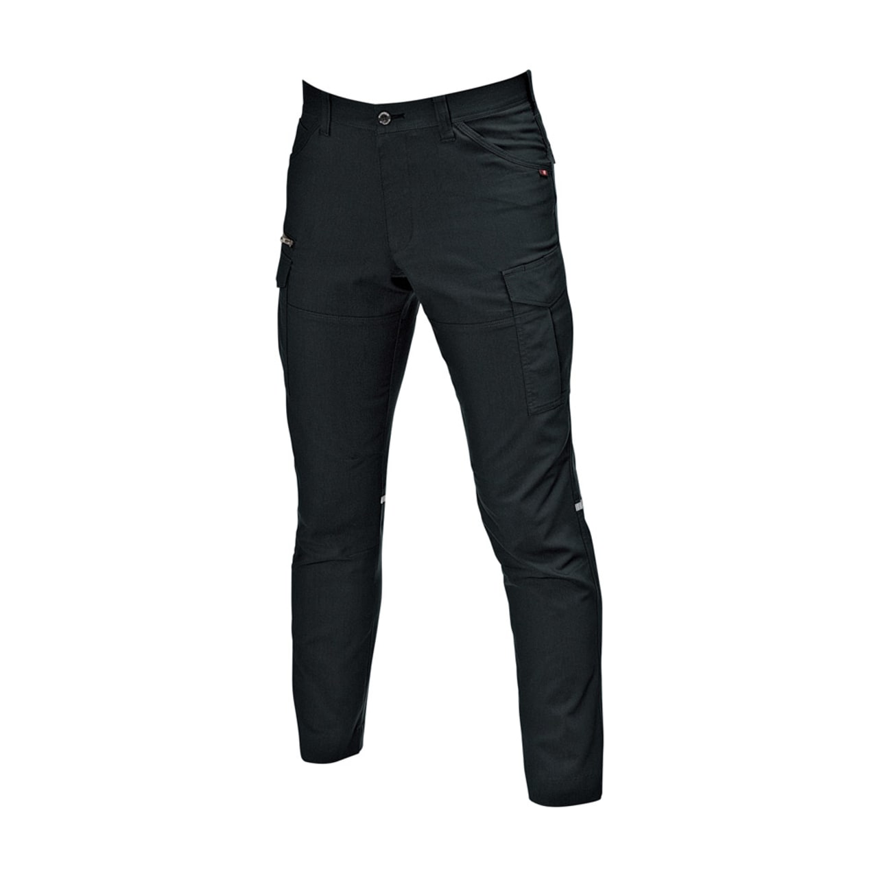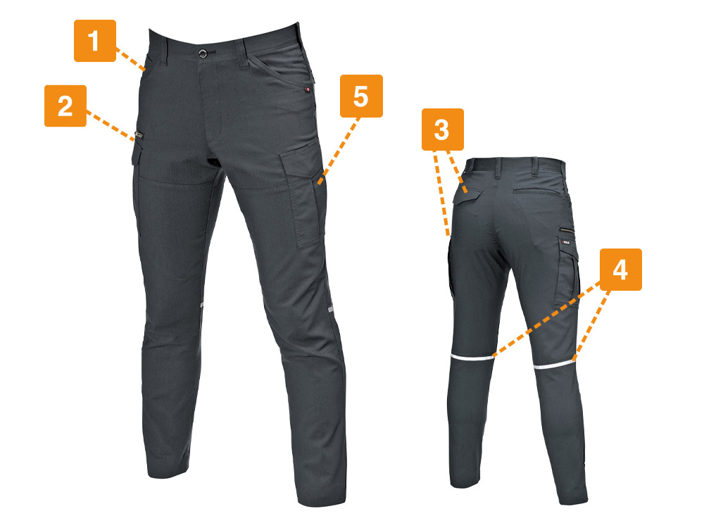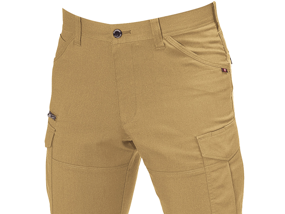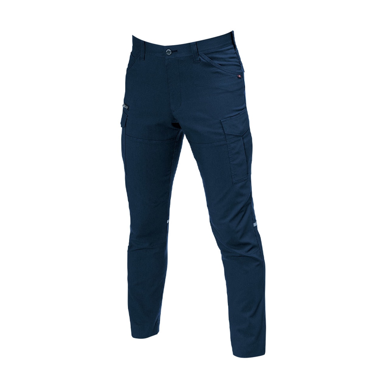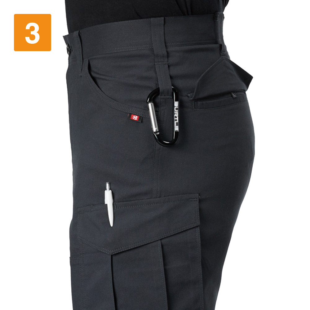 スムーズな動作を行うには、素材の伸長率が重要。こちらのカーゴパンツは、ストレッチドビークロスを使用することで、よく伸びて膝の曲げ伸ばしもしやすいです。見た目にもやや細身のデザインを採用しているため、作業着ながらも引き締まった印象に。スタイリッシュなユニフォームなので、若い人の多い職場にもおすすめです。リフレクターを膝の裏に付けることで、後方からの視認性も強化。機能的な収納ポケットを左右に搭載し、デザイン性のみならず使いやすさにも工夫の光るワークパンツです。