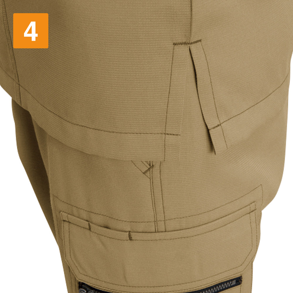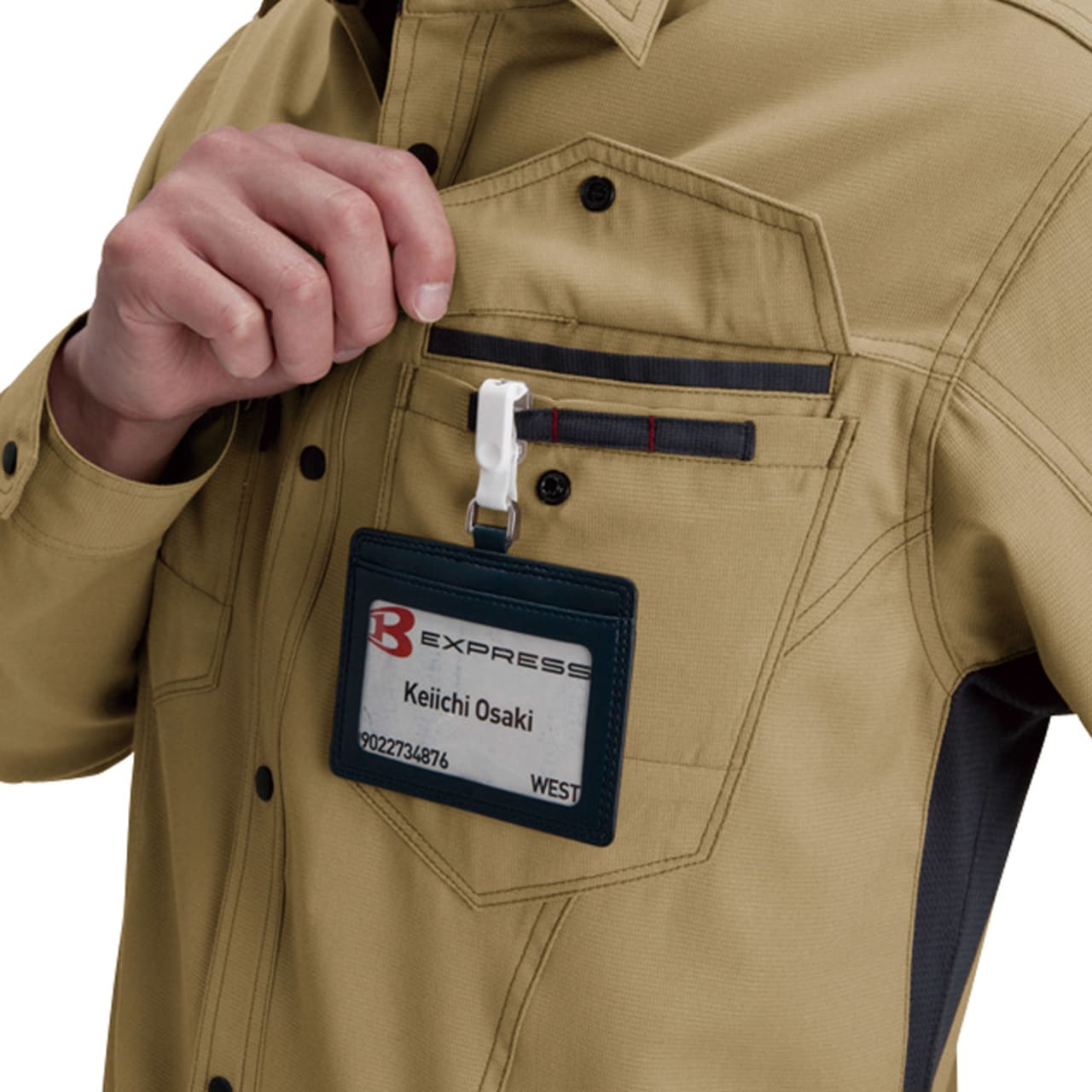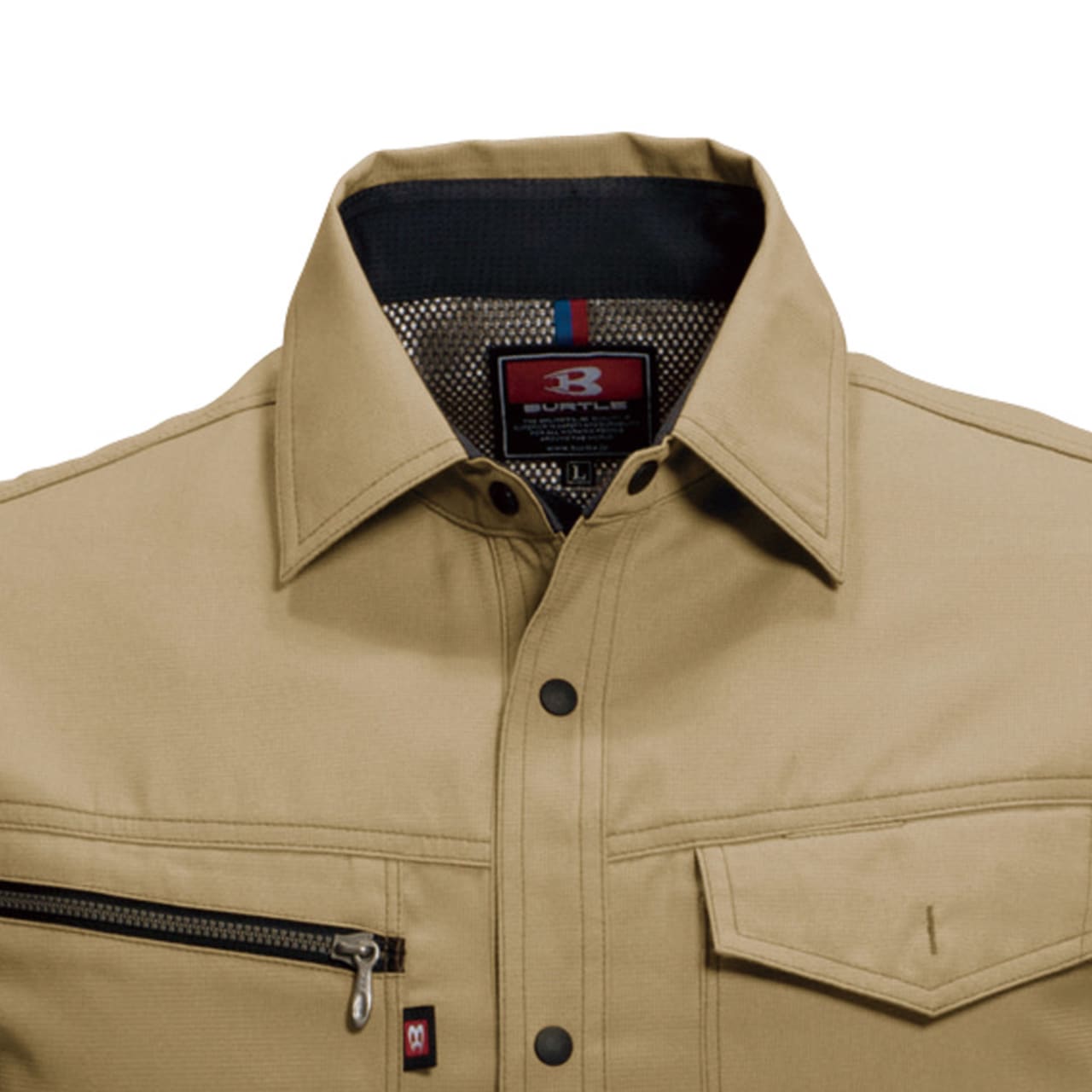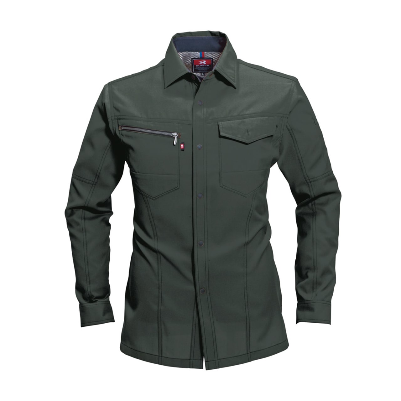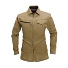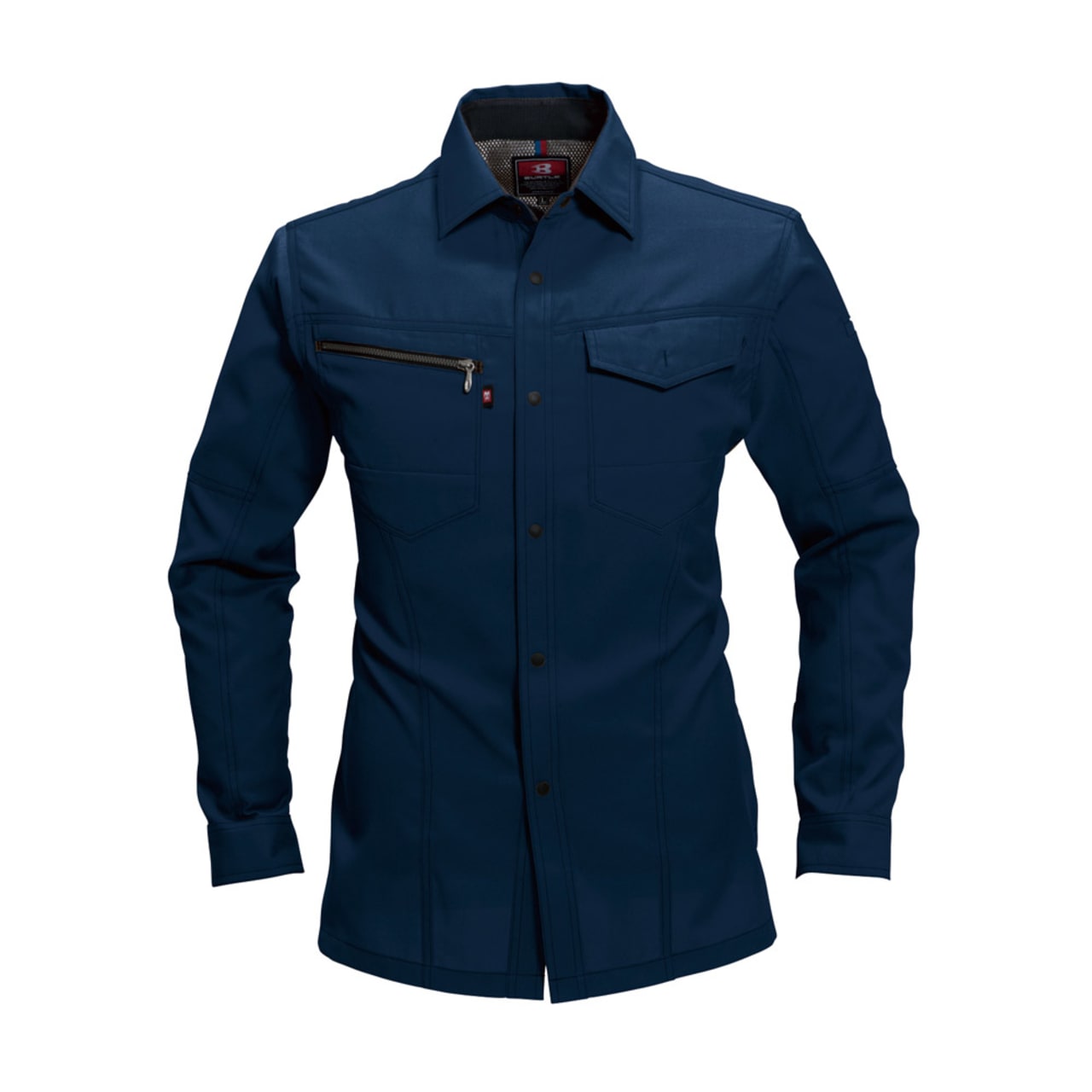 シャツを着る際、肩の張り感や腕の可動域がどれだけ自由にできるかはとても大切。実際のワークシーンでは、物を持ち上げたり、機械操作などで腕を上下させたりと、身動きがスムーズにできることが作業効率に直結します。こちらのシャツは脇を45ダイヤカットにすることで、腕を上げたり下げたりする動作をよりスムーズに助けます。背の部分もノーフォークだから肩周りの可動も円滑に。使い勝手の良い収納ポケットが左右の胸についており、レベルブックやメモ帳を入れておくのにもぴったりです。
