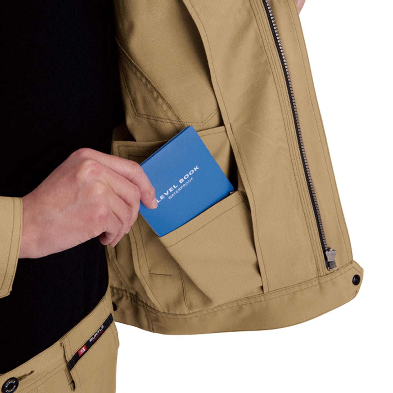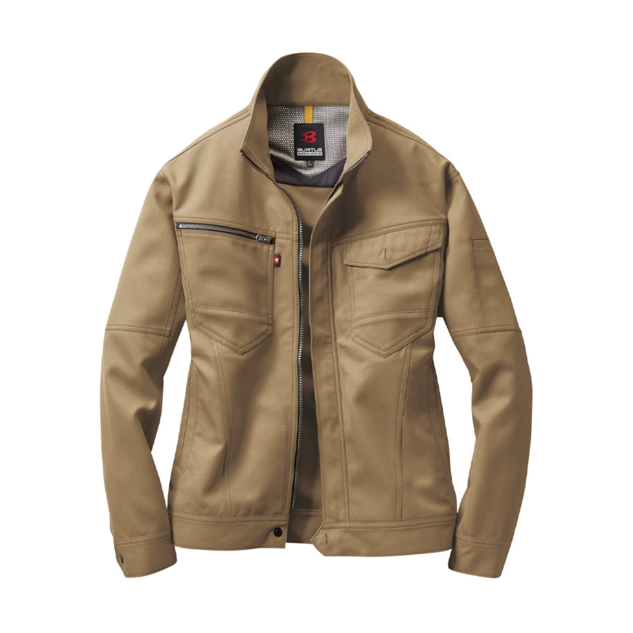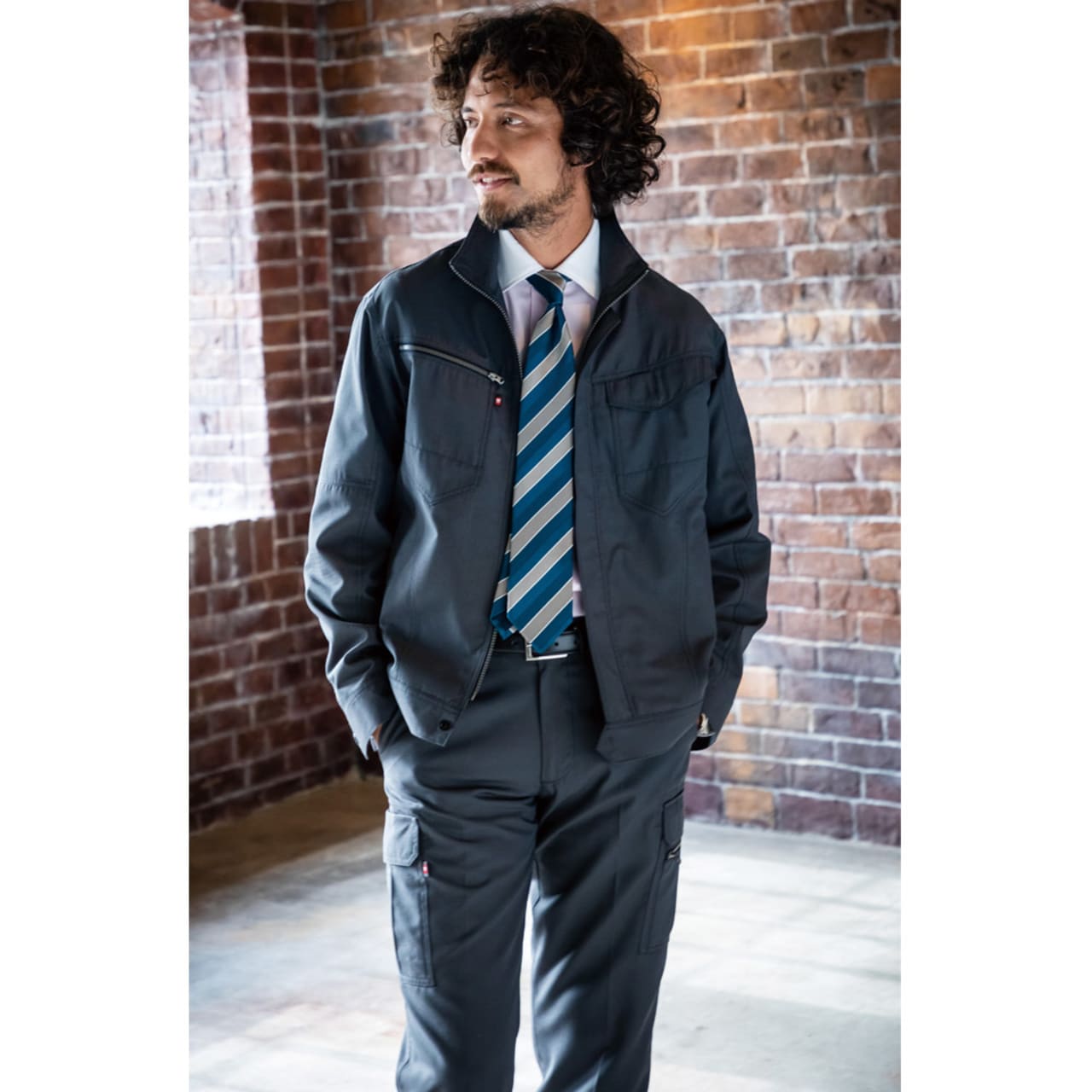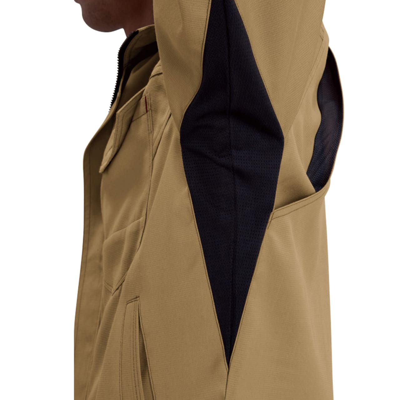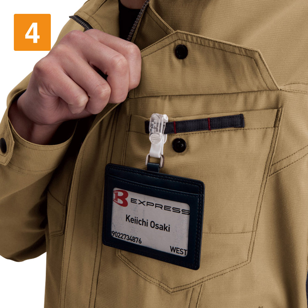屋内・屋外ともに使えるオールラウンドなジャケット。しっかり首元までジップアップでき、脱ぎ着もしやすいため、屋内の空調や屋外での外気の温度からも適度に体温調節をしながら、作業に集中できます。動きやすさにも工夫をこらし、特に脇下には吸水ニットを使用した独自のダイヤカットを採用。腕の上げ下げの多い機械操作や運搬作業をする現場にも重宝します。多数のポケットを搭載し、胸ポケットや内ポケットなどから使いやすいポジションを選んで使うことが可能です。