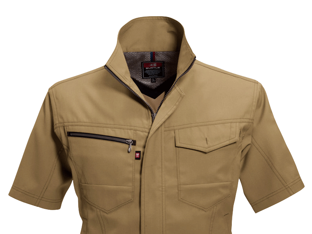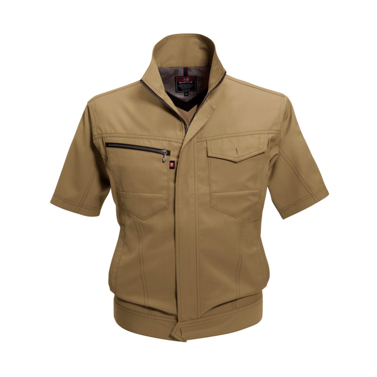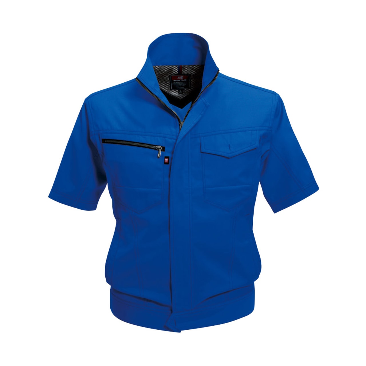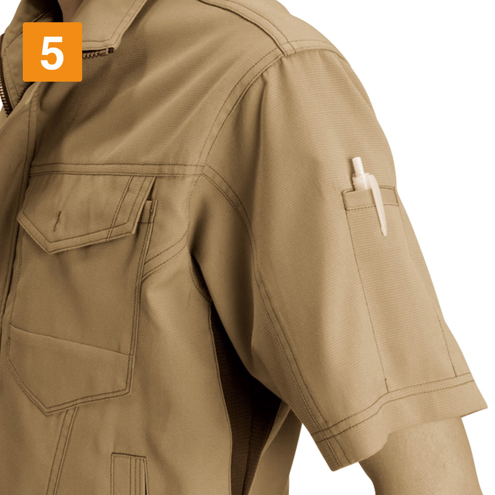 春夏に使える半袖ジャケット。ウエストがドットアジャスターになっているため、腰周りに適度にフィットして、上半身が動かしやすいです。袖口も広がりを抑えているのが特徴。SSとSサイズはユニセックス対応のシルエットになっており、女性にも着やすい設計に。点接触清涼素材を使用し、程よく体温をクールダウンして、春夏の温暖な季節の作業をサポート。また、制電ケアを施し、静電気の発生を防いで安全面にも配慮しています。