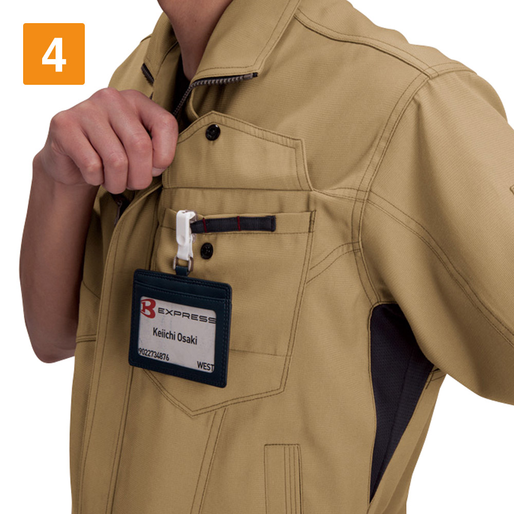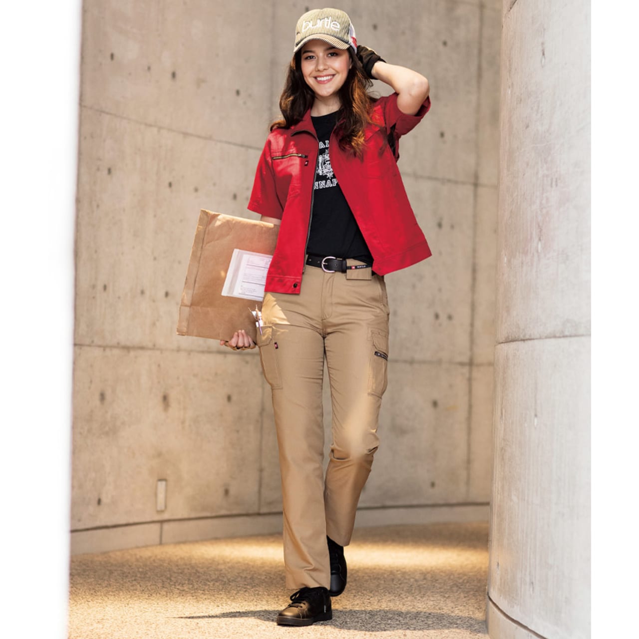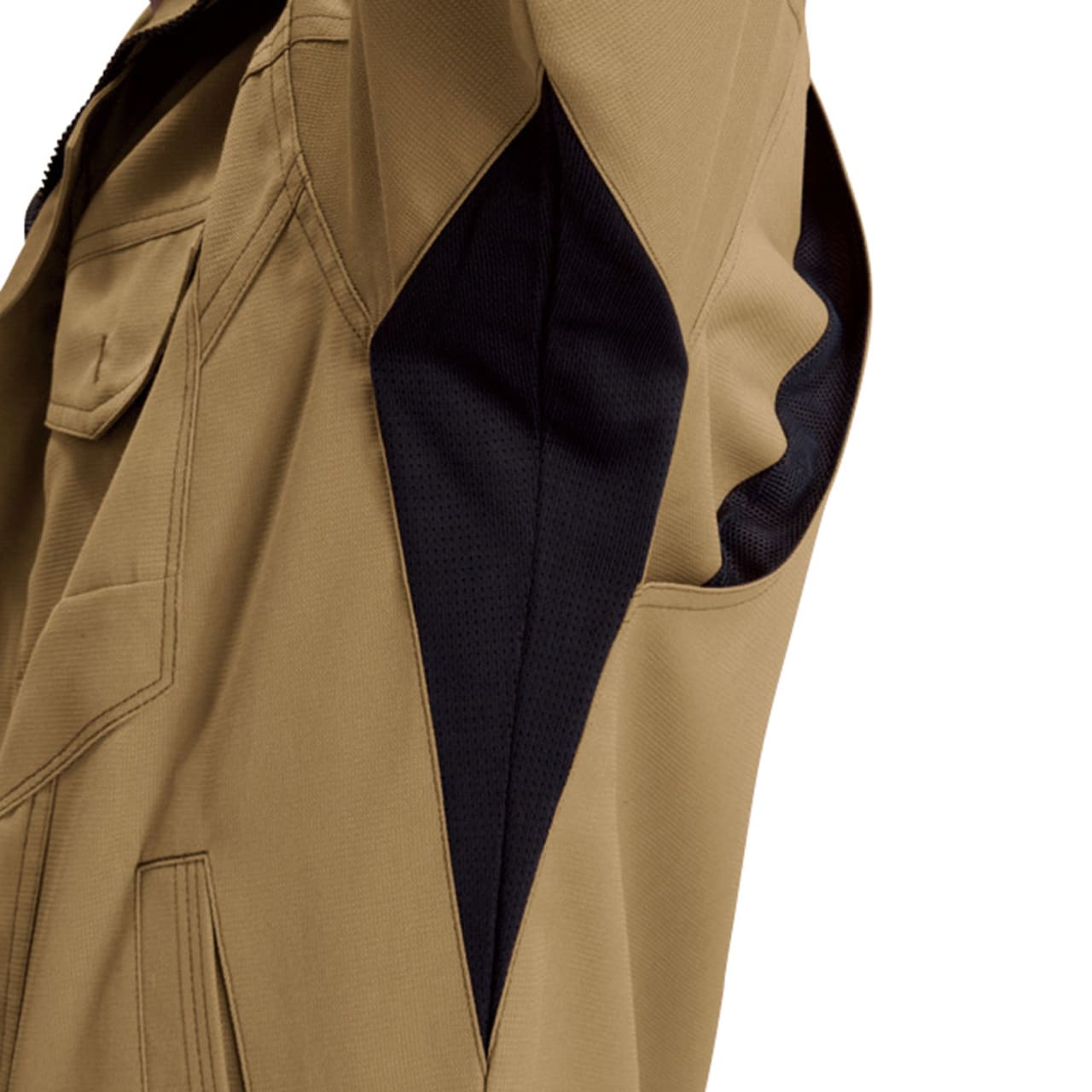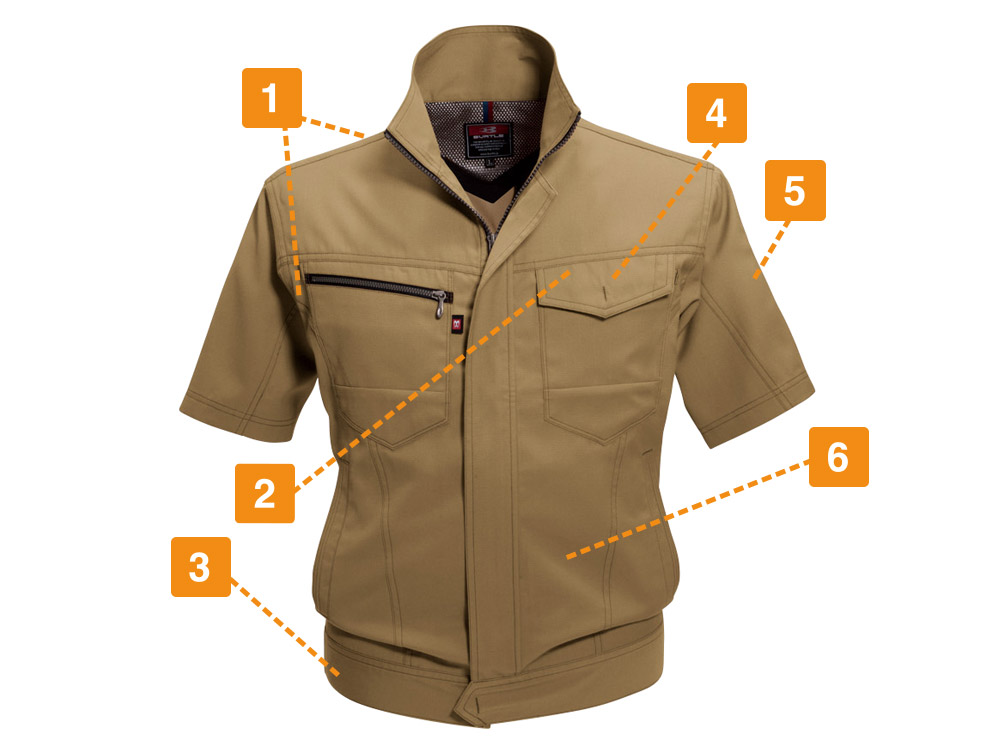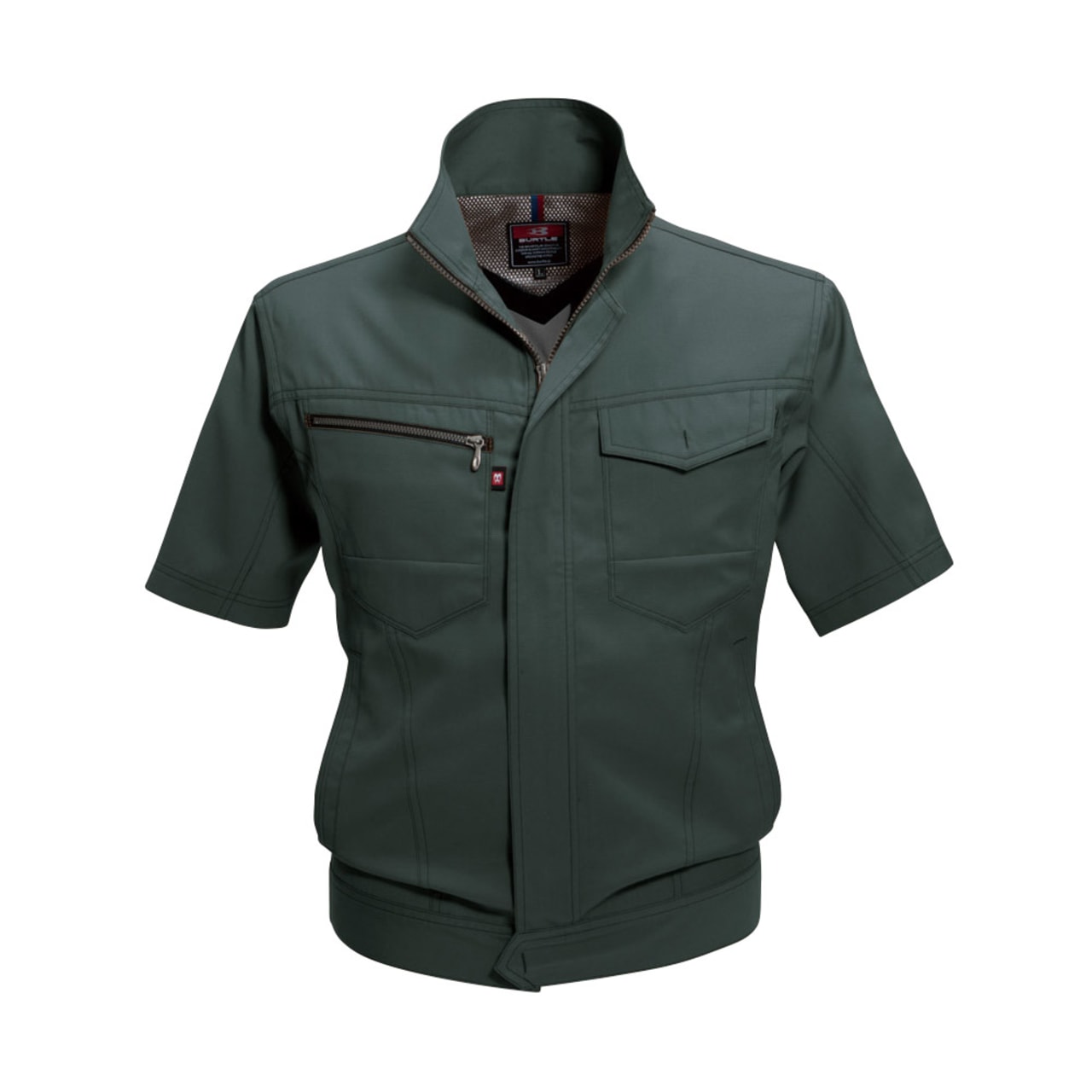 春夏に使える半袖ジャケット。ウエストがドットアジャスターになっているため、腰周りに適度にフィットして、上半身が動かしやすいです。袖口も広がりを抑えているのが特徴。SSとSサイズはユニセックス対応のシルエットになっており、女性にも着やすい設計に。点接触清涼素材を使用し、程よく体温をクールダウンして、春夏の温暖な季節の作業をサポート。また、制電ケアを施し、静電気の発生を防いで安全面にも配慮しています。