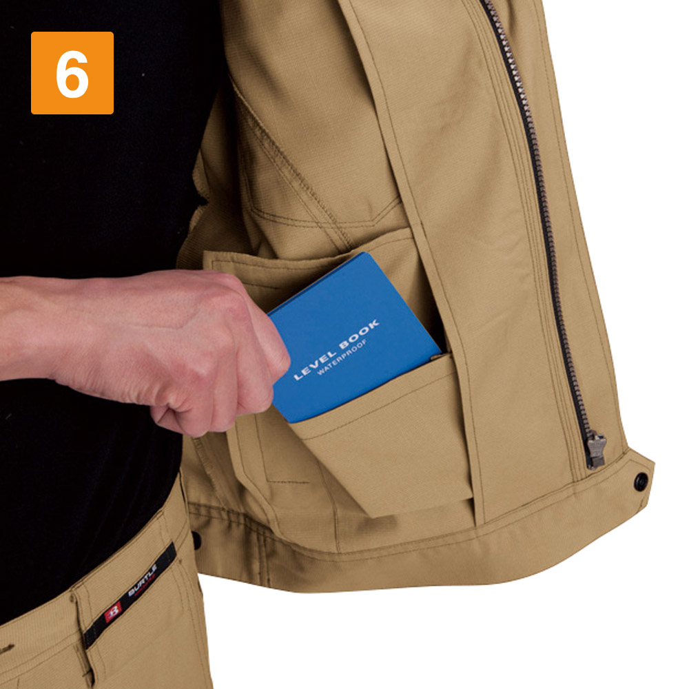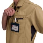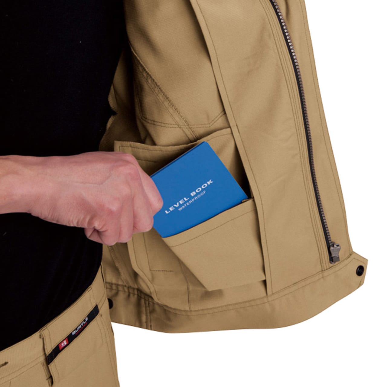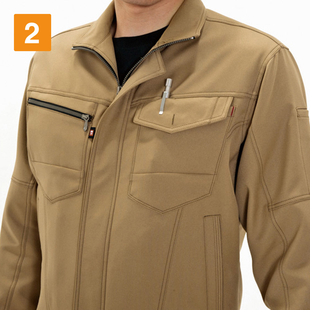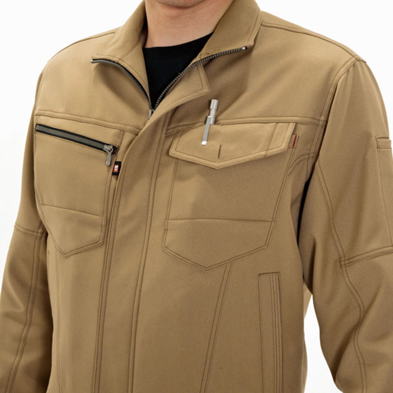 春夏に使える半袖ジャケット。ウエストがドットアジャスターになっているため、腰周りに適度にフィットして、上半身が動かしやすいです。袖口も広がりを抑えているのが特徴。SSとSサイズはユニセックス対応のシルエットになっており、女性にも着やすい設計に。点接触清涼素材を使用し、程よく体温をクールダウンして、春夏の温暖な季節の作業をサポート。また、制電ケアを施し、静電気の発生を防いで安全面にも配慮しています。