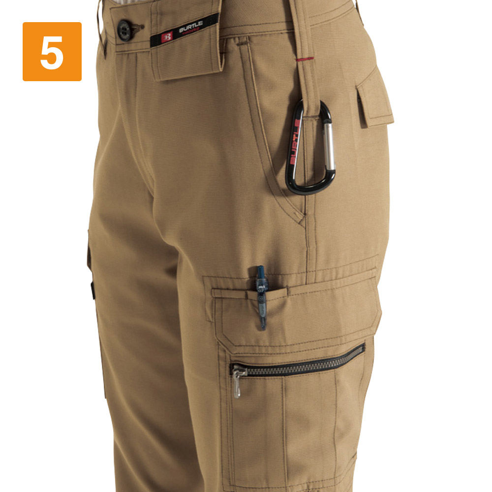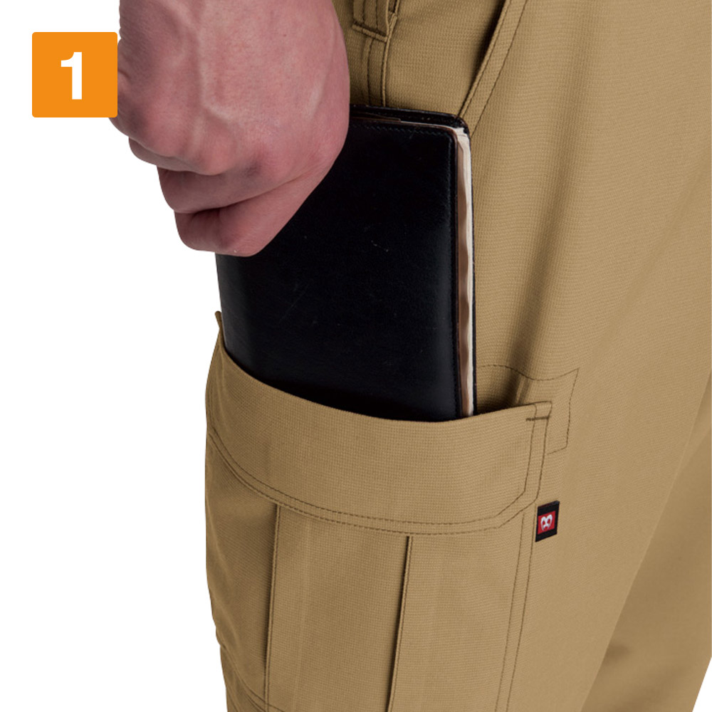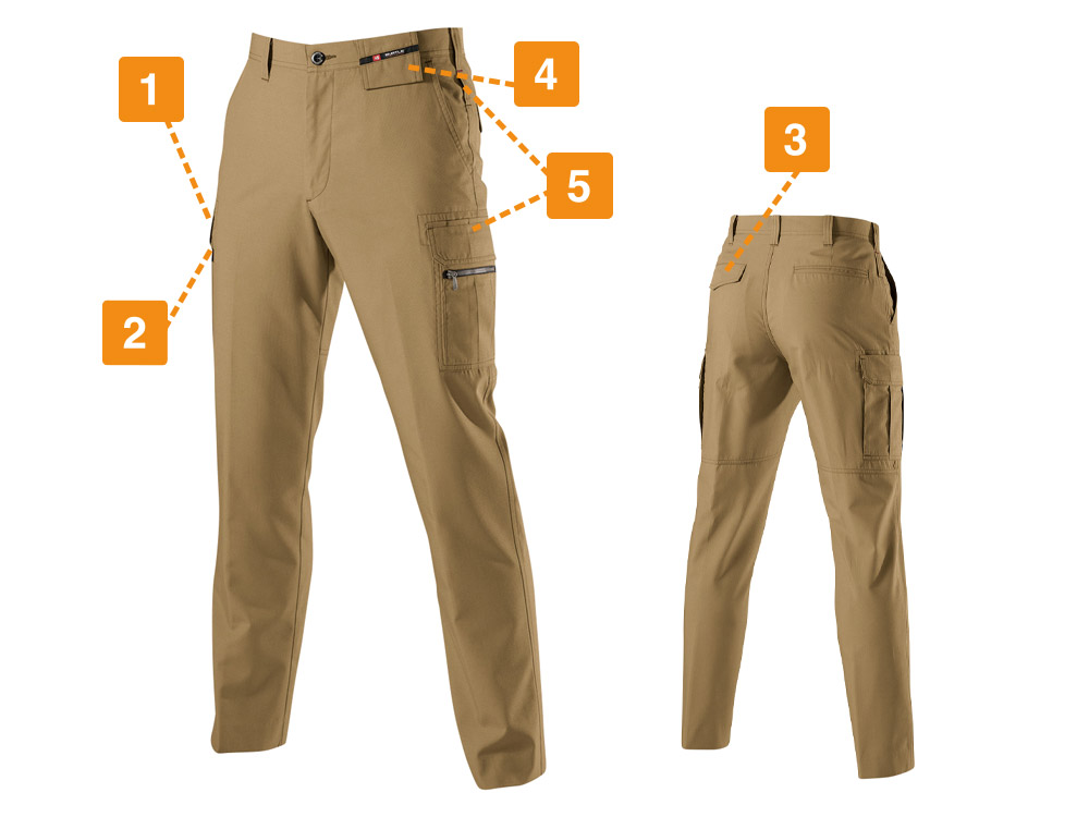 服装に厳しい現場でも問題なく着用できる、シンプルテイストなカーゴパンツです。ほかのワークウェアとも組み合わせられ、作業着選びに頭を悩ませることもありません。また点接触清涼素材を使用し、快適な履き心地を実現しているのも特徴です。ポリエステル素材は吸汗性や速乾性にも優れており、通気性もよいため、汗を書きやすい夏場や屋内作業でも快適に着用できます。制電性能も備わっているため、静電気が苦手なワーカーや、火気、薬品を扱う現場にもおすすめです。
