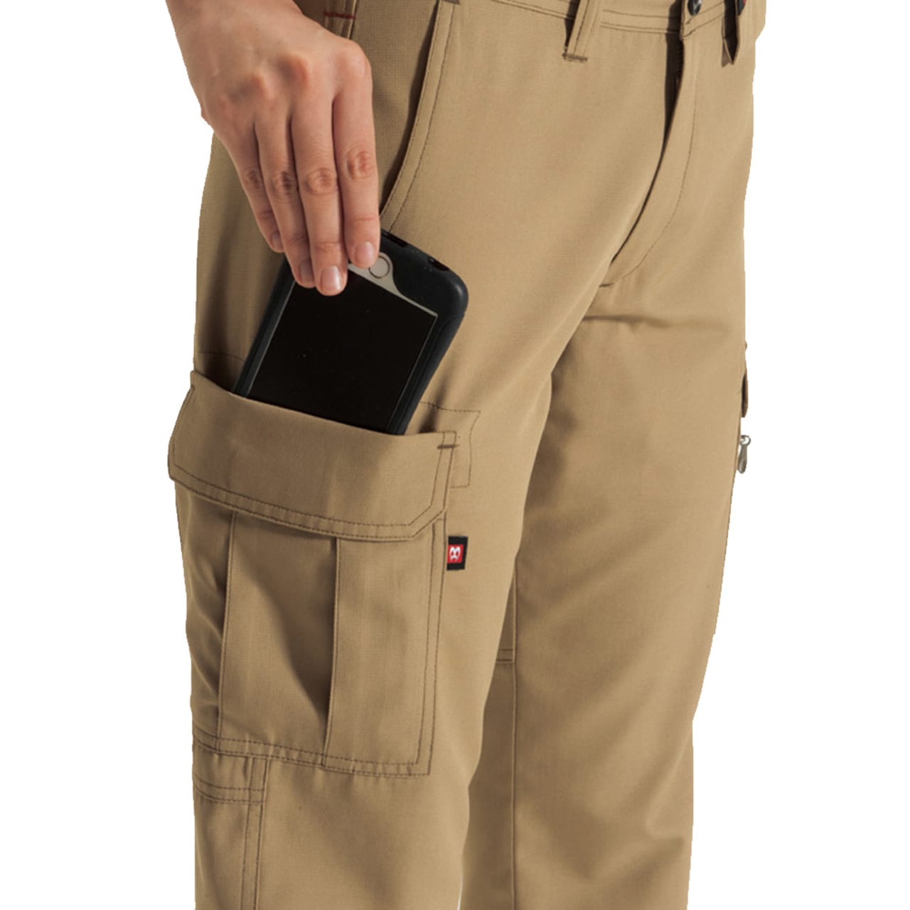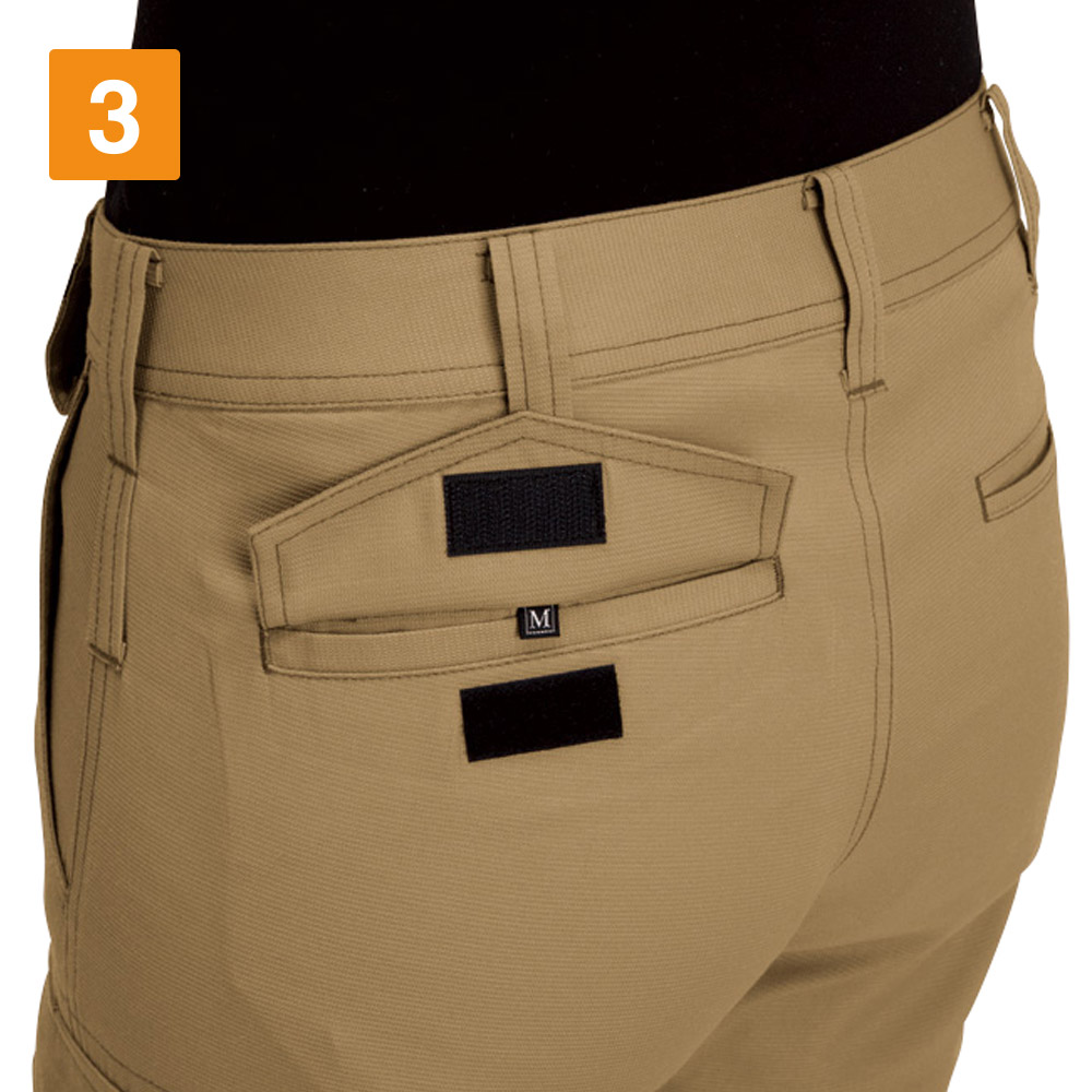 スリムにスッキリと着用できるワークパンツのため、ワーカーの動きを邪魔しないことが特徴です。物流や運送、建設など、あらゆるアクティブワーカーにおすすめのアイテムです。女性用のワークパンツであるため、インナーの透けを防止する機能も採用。腰から太ももにかけての裏地には、透けガードを実装しインナーの透けを回避します。アクティブなアクションを求められるシーンにおいても、女性ワーカーのプライバシーを保護します。