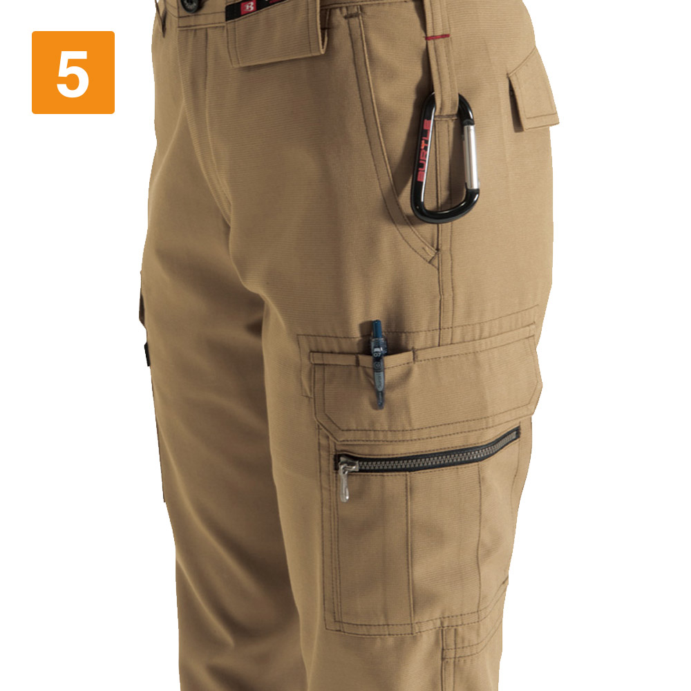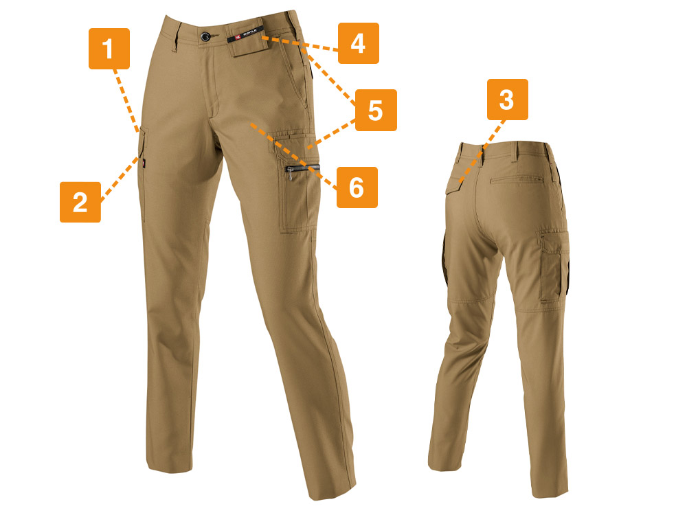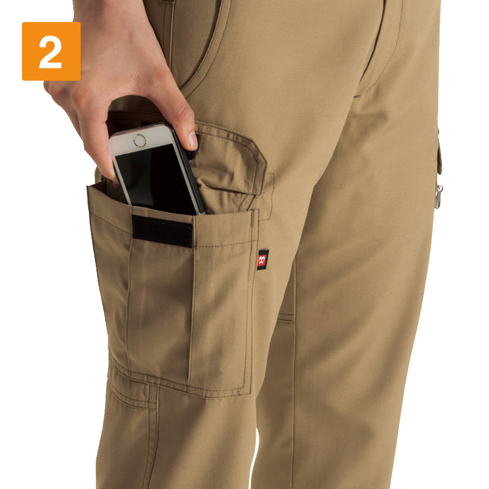アクティブなアクションが求められる作業環境下においては、汗によるべたつきが気になるものです。特に夏場の現場で作業に従事するワーカーにとって、汗や暑さ対策は必須です。その際におすすめしたいのが、こちらのレシピカーゴパンツです。清涼感のある素材を使用しているため、夏場でも快適に着用できます。メインで使用しているポリエステル素材は、吸汗性や速乾性にも優れています。大量の汗を素早く吸収、スピーディに乾かしてくれるため、不快さも権限可能です。まさに、アクティブワーカーに最適なアイテムといえるでしょう。