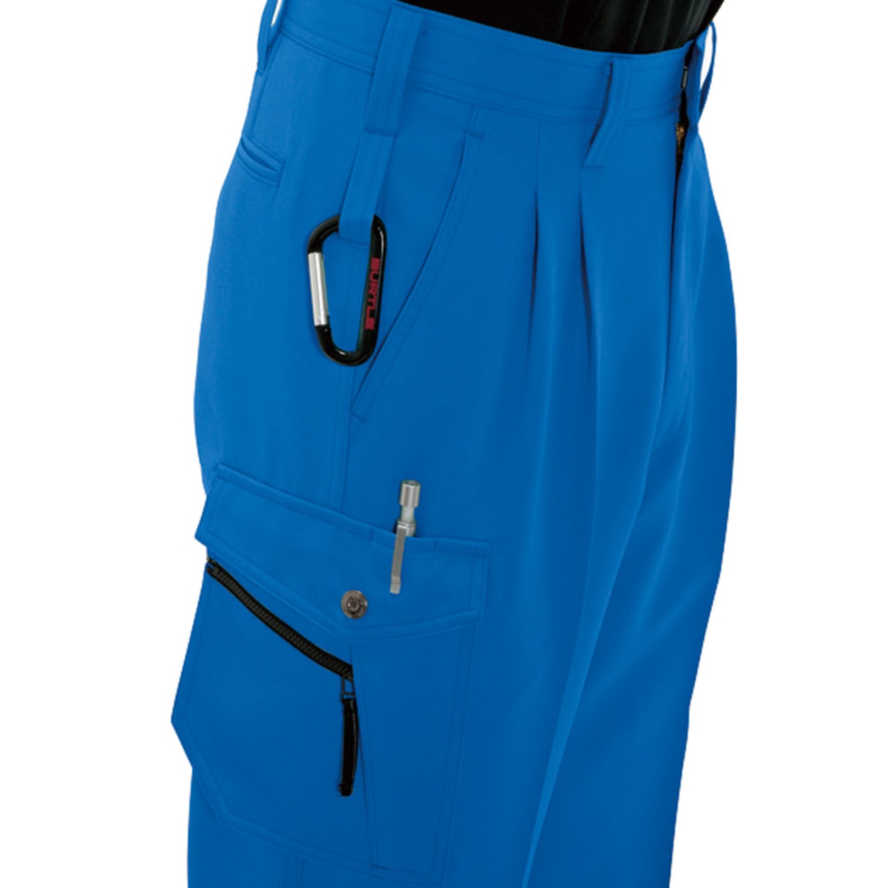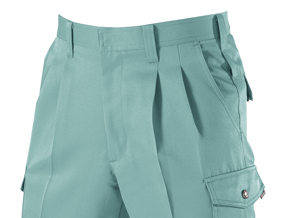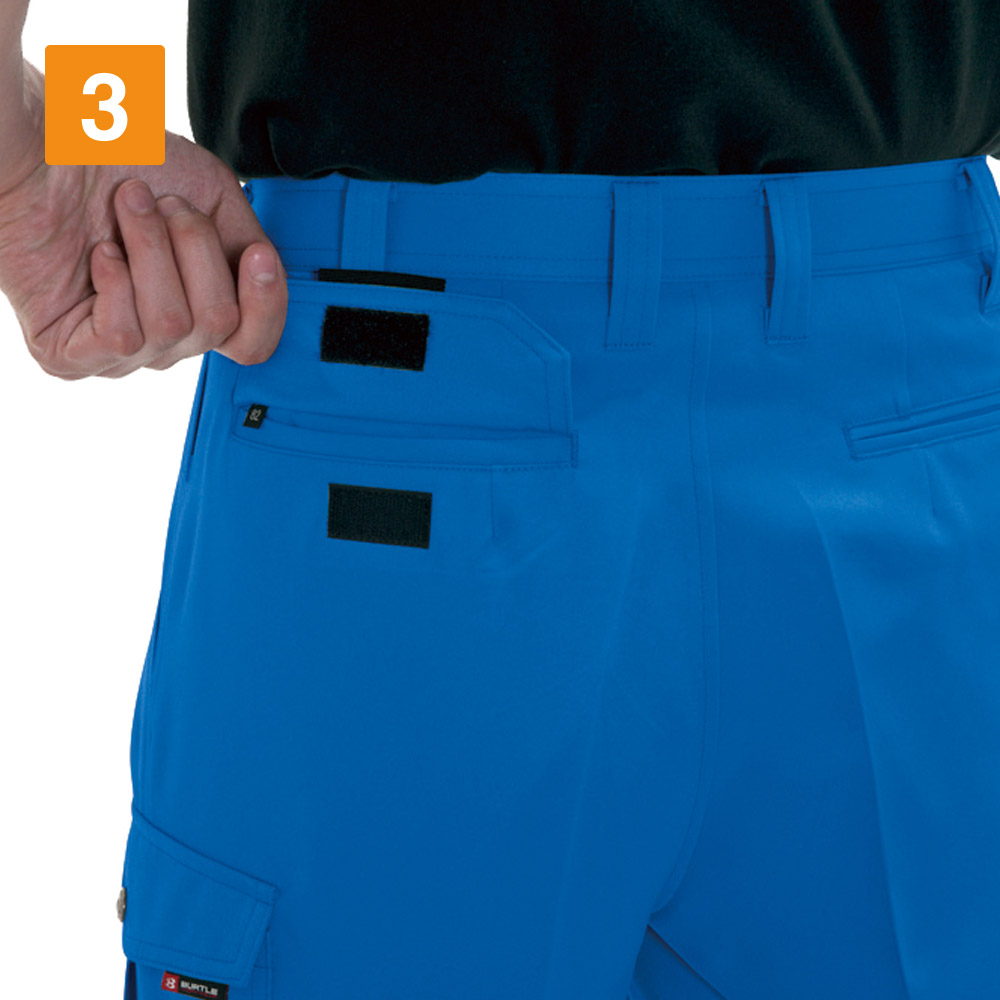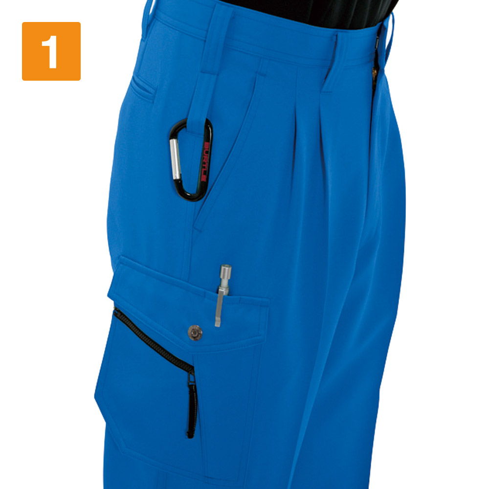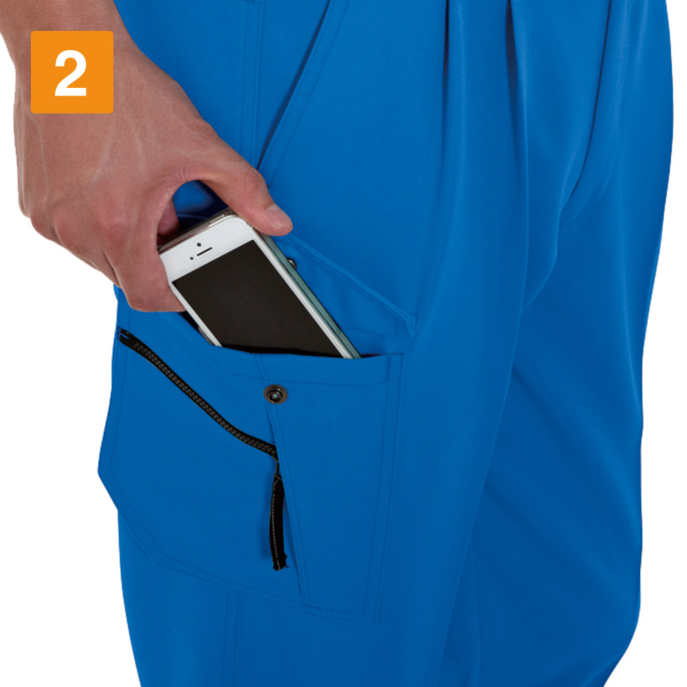 ポリエステルを丁寧にツイル織りした素材を採用し、耐久性に優れる仕上がりを実現したカーゴパンツです。ポリエステル素材は丈夫で耐久性が高いため、ハードなアクションが求められる現場にも最適です。また、洗濯を繰り返すことによる生地の傷みや縮みなども起きにくく、日ごろのメンテナンスも簡単です。防汚性にも優れるため、水や油などを扱う現場にもおすすめです。生地の表面には撥水加工を施してあるので、水分や油を弾いてくれます。長時間着用していても汚れにくいため、作業服として最適な一着です。