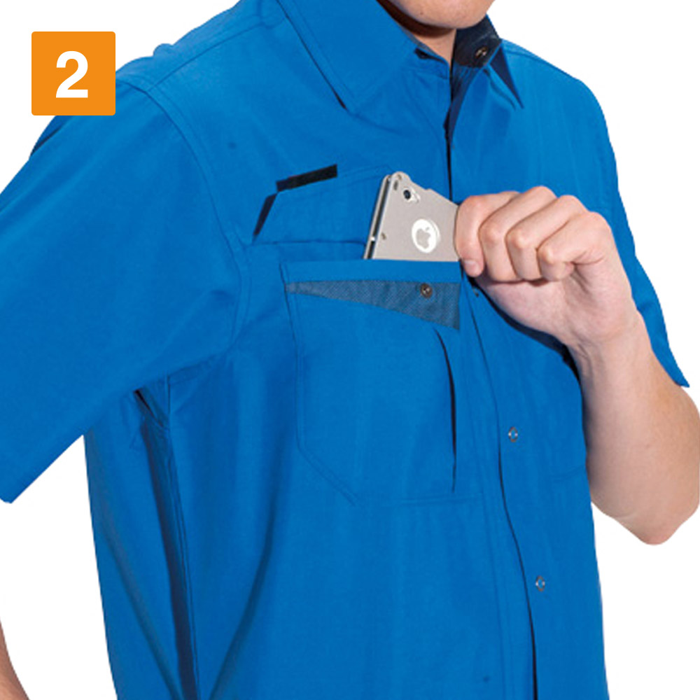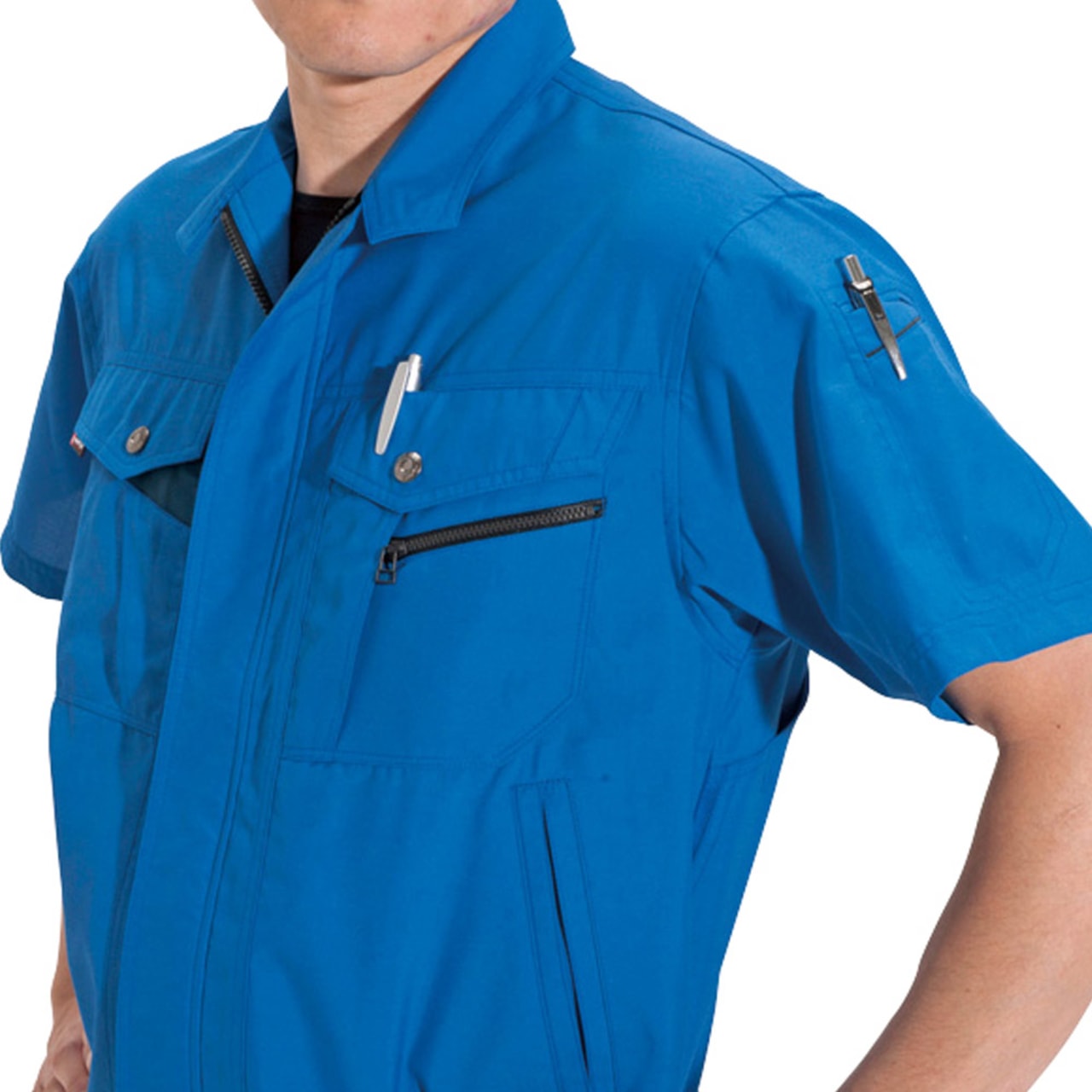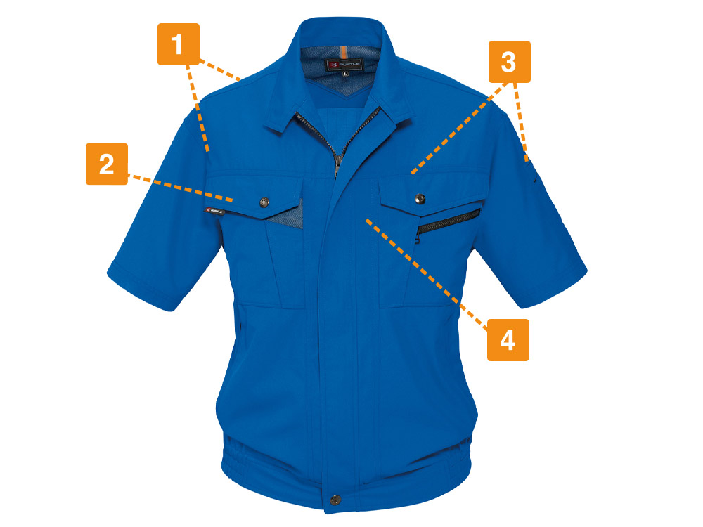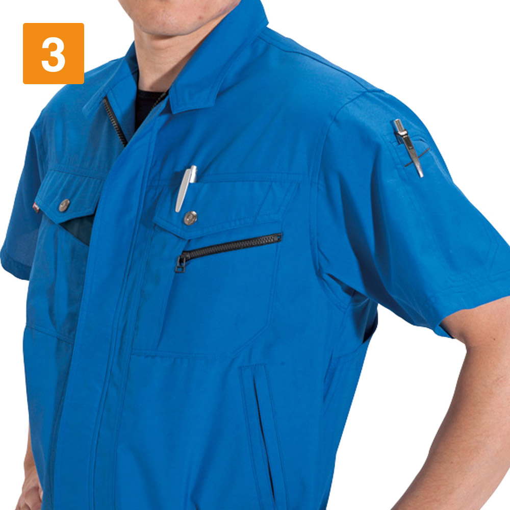 春夏シーズンに、アクティブワーカーを悩ませるのが、汗によるべたつきや暑さです。ワークウェアの生地によっては熱が内部にこもりやすく、体力の消耗も招いてしまいます。こちらの半袖ブルゾンでは、汗をかいても素早く吸収、速乾させるため、不快な感じが残りません。また、生地には防汚加工も施してあるため、泥水や油などが作業着に跳ねてもシミになりにくく、お手入れも簡単です。作業着としても十分な耐久性を備えていることから、幅広い方におすすめしたい一着です。